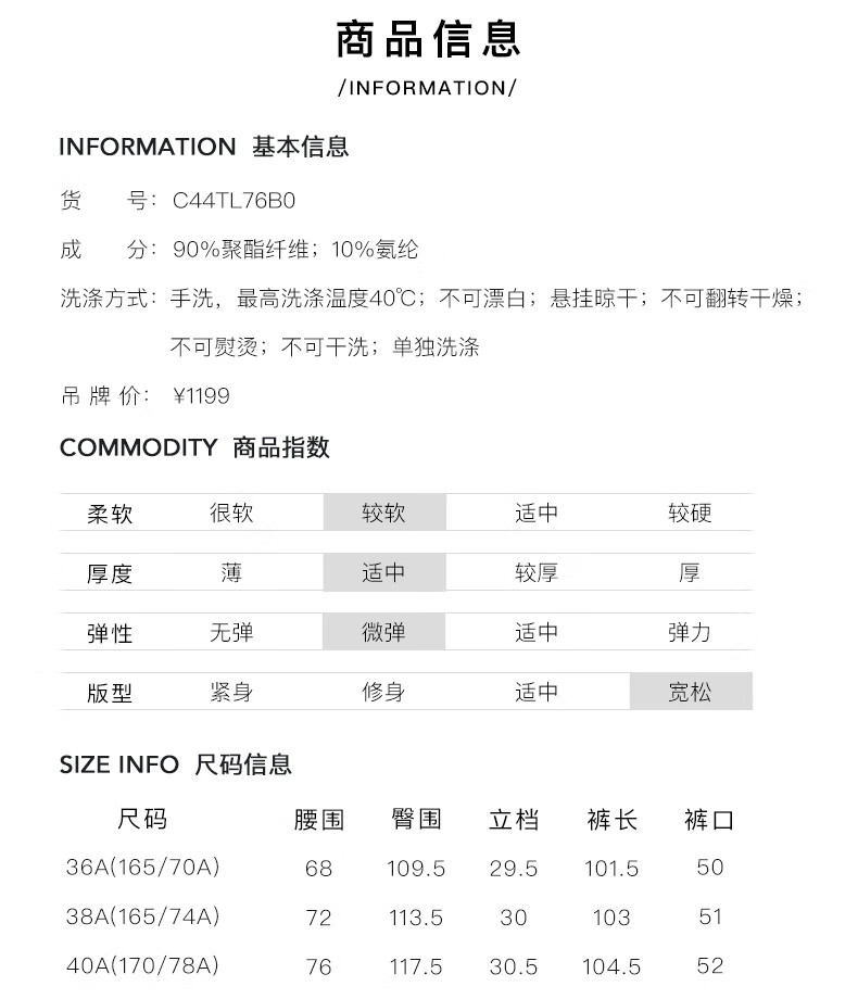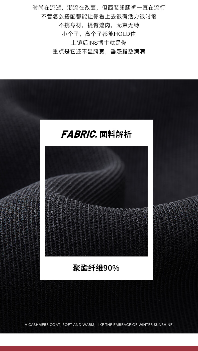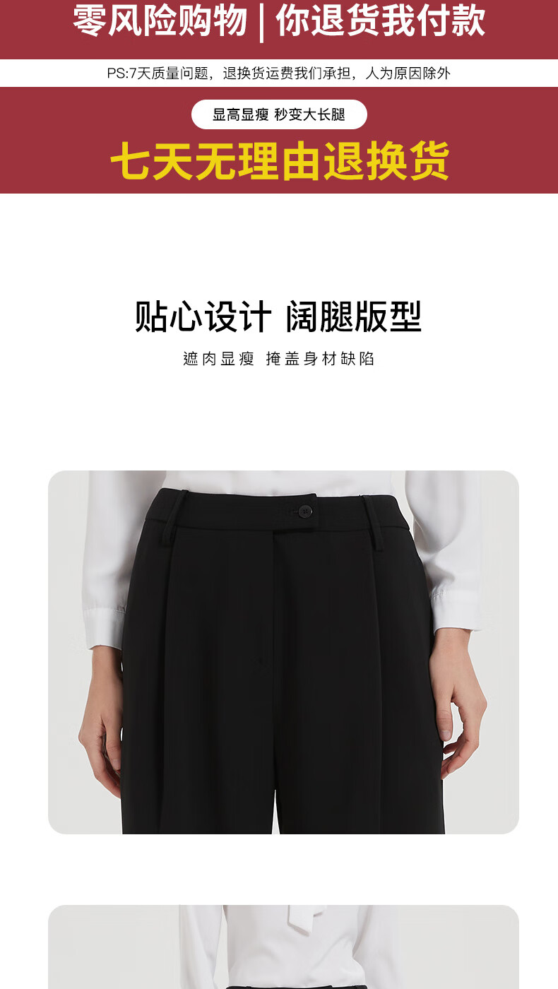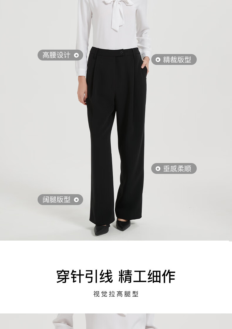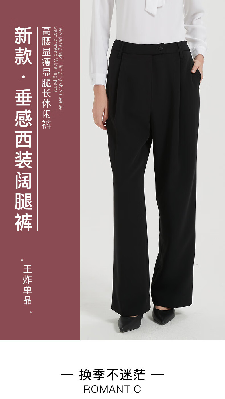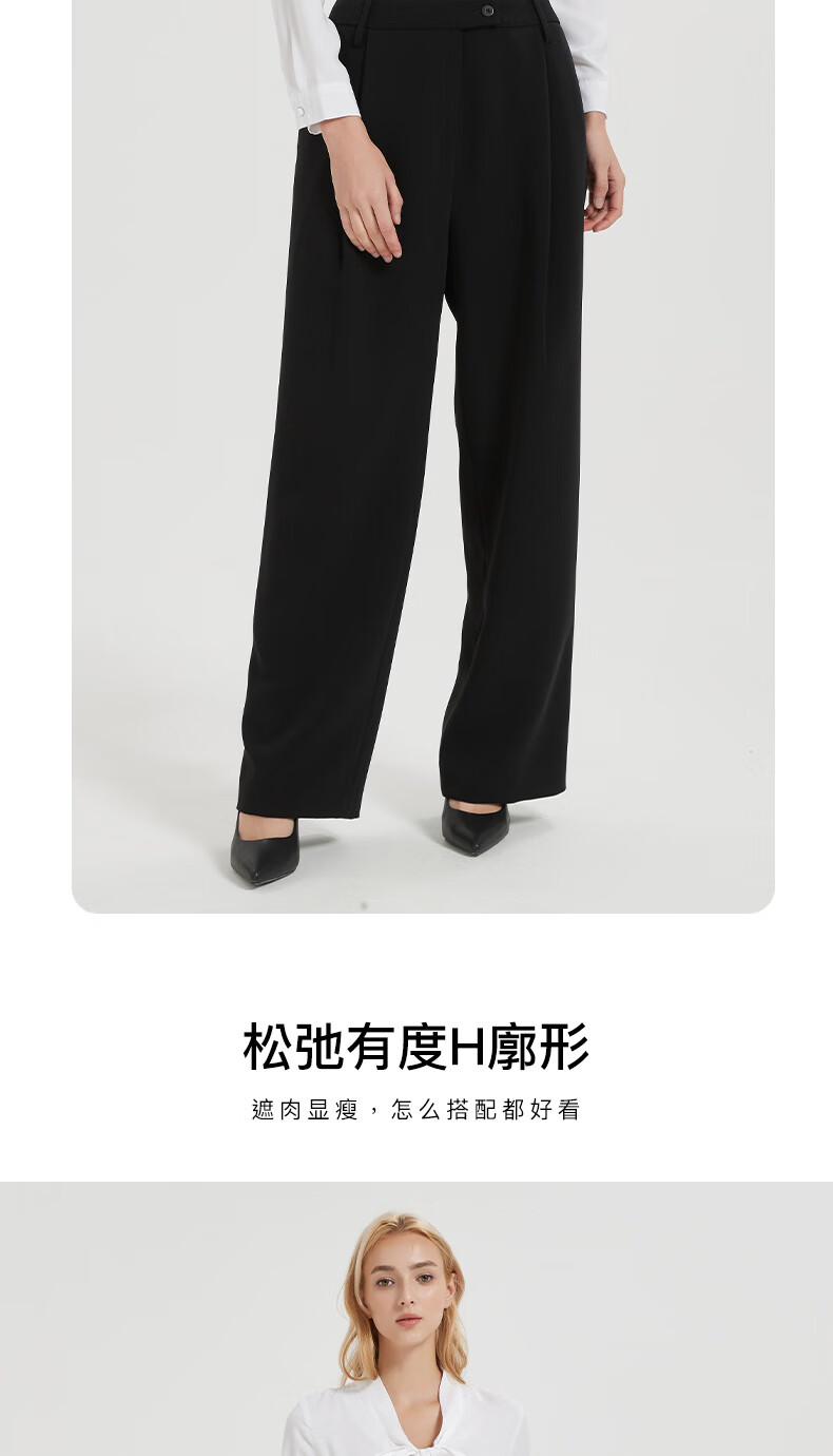 皮尔卡丹女装休闲裤显瘦气质简约通勤时尚阔腿裤C44TL76B0