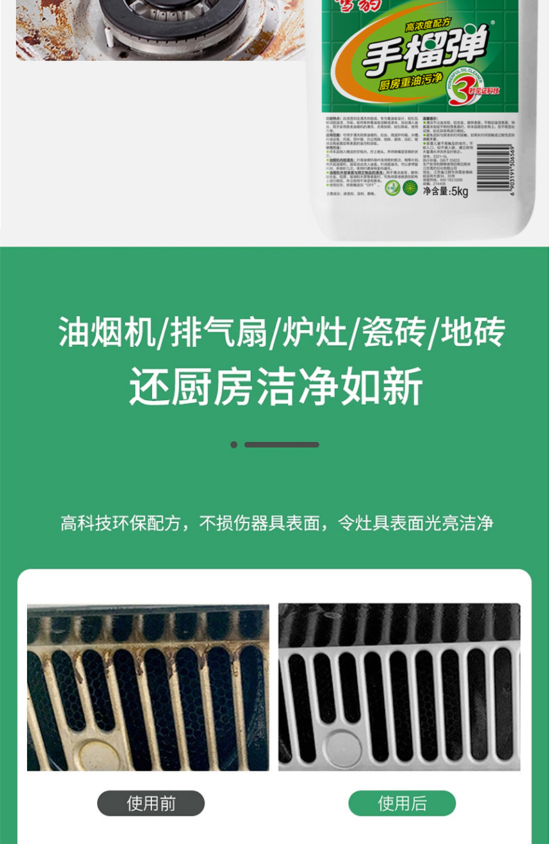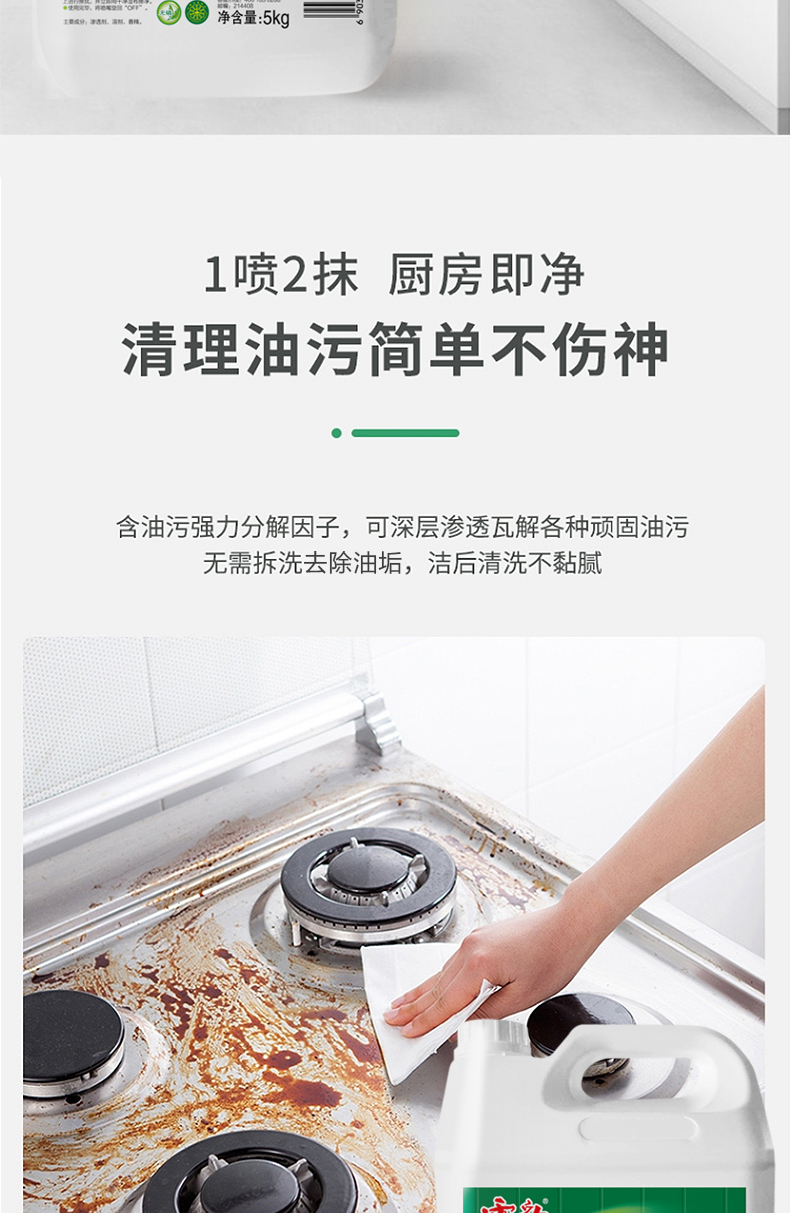 【双十二】雪豹生态家清 厨房重油污净5Kg送空喷壶+喷头1套3321-5L