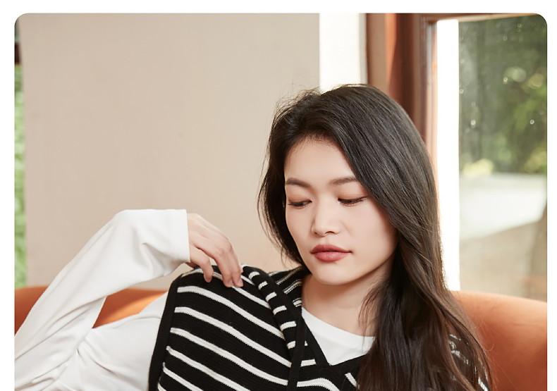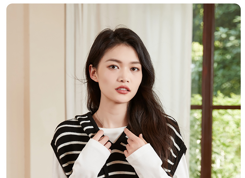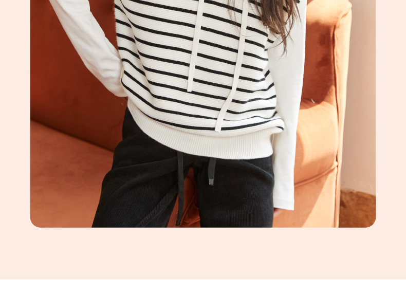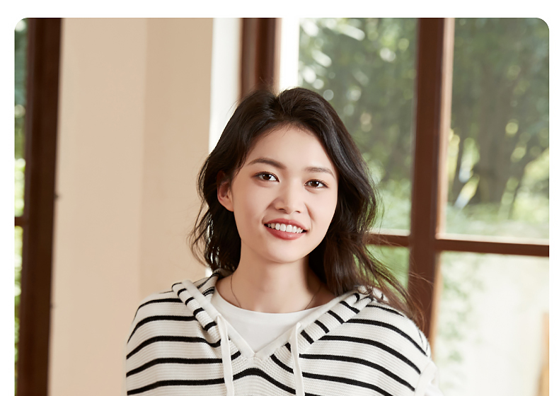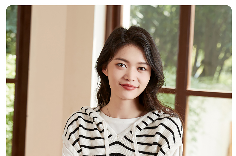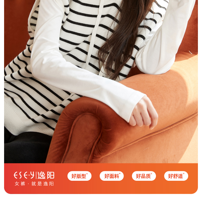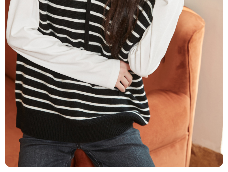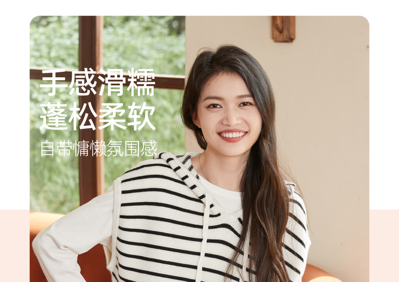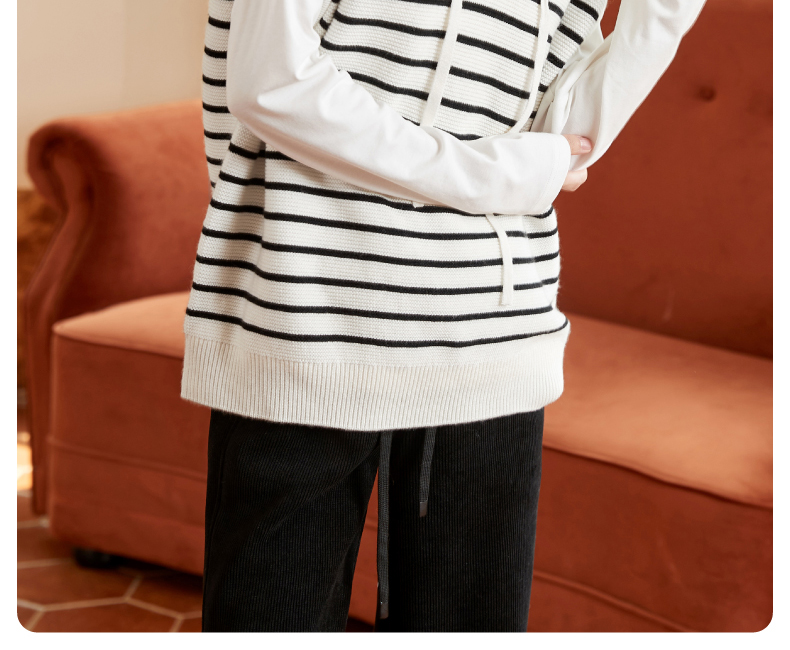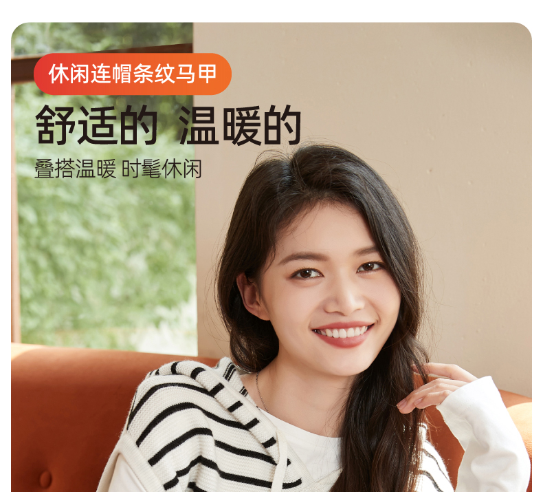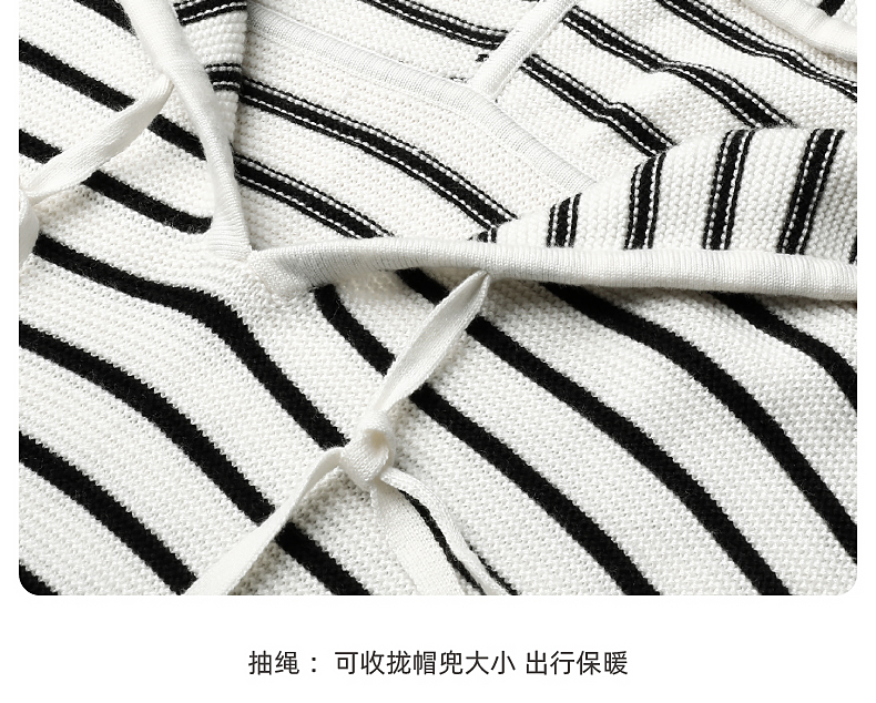 逸阳休闲连帽羊毛条纹针织马甲女2024新款宽松慵懒风上衣3486