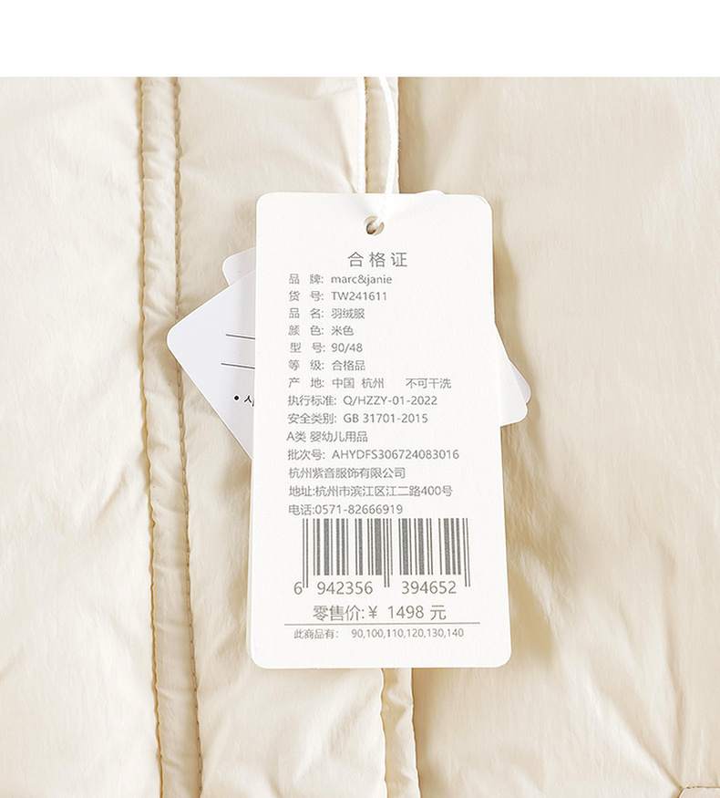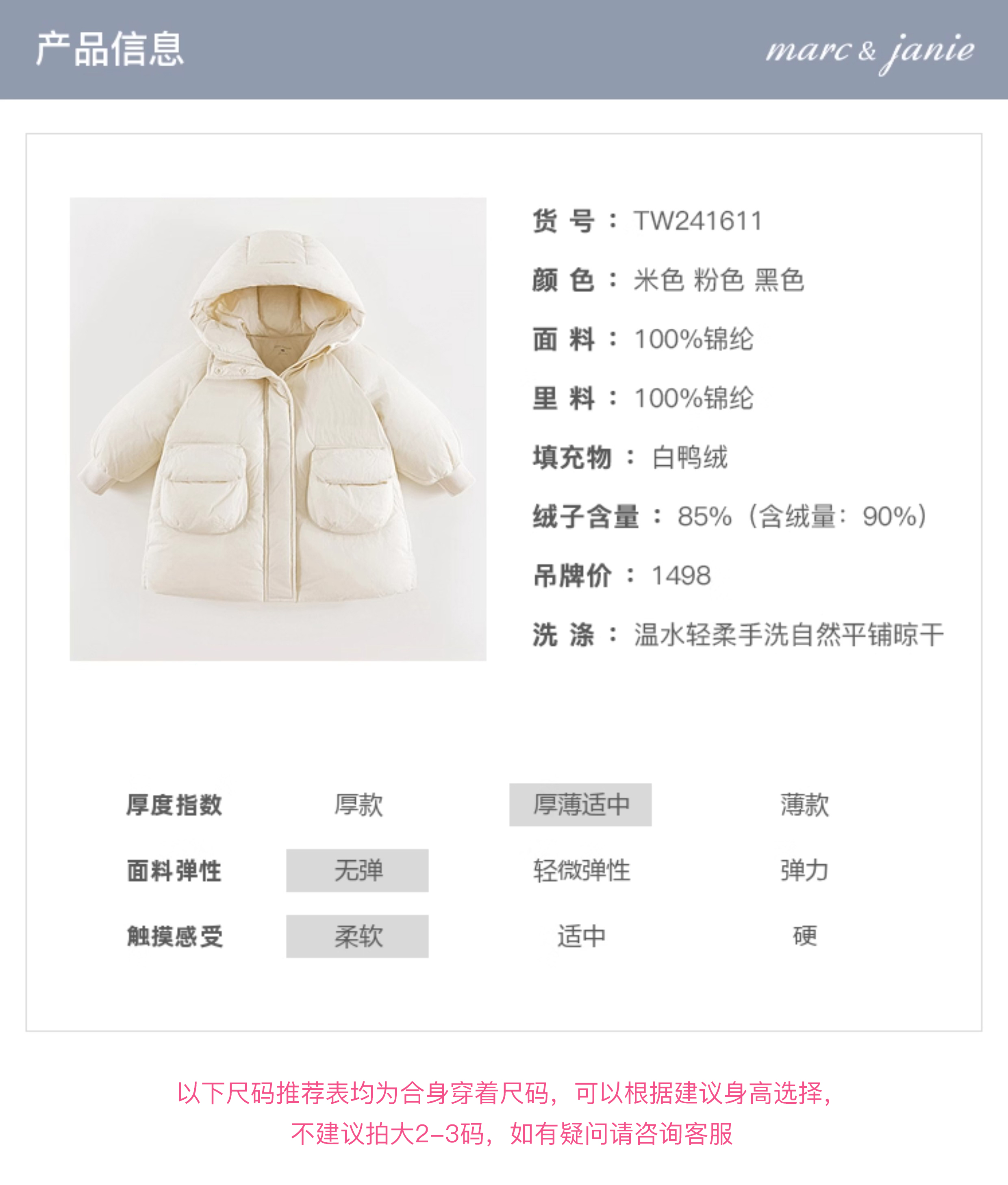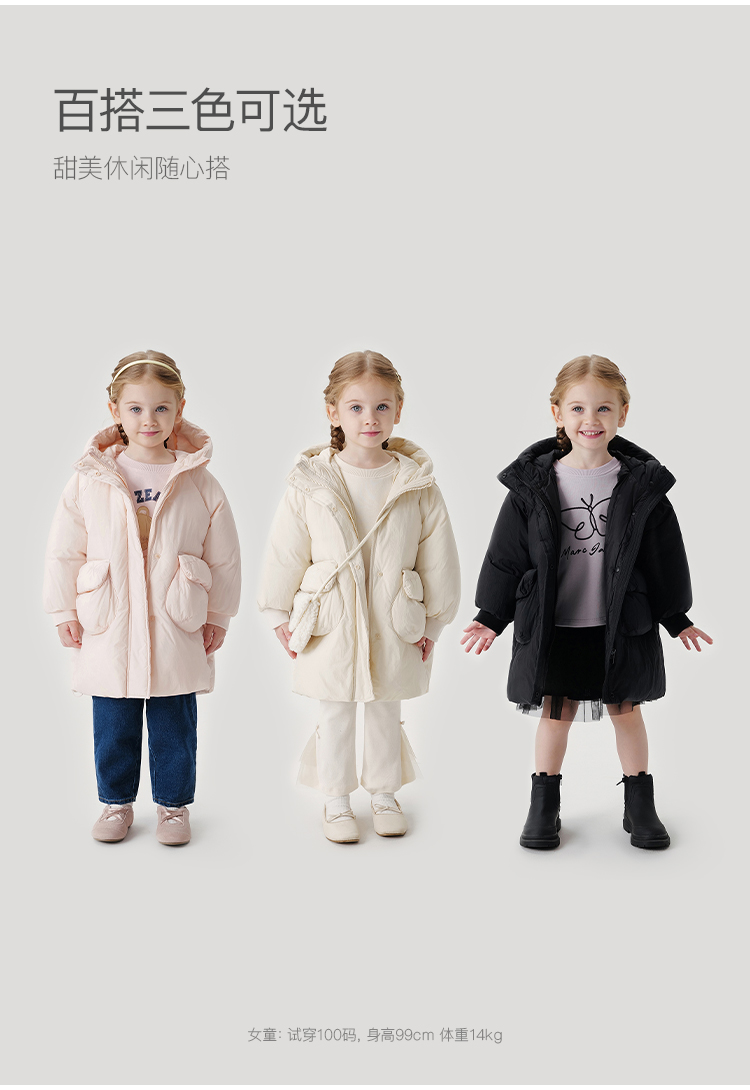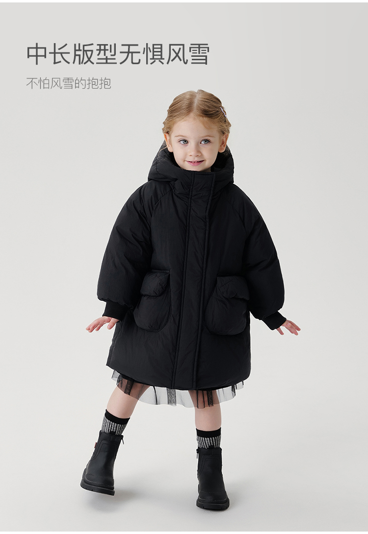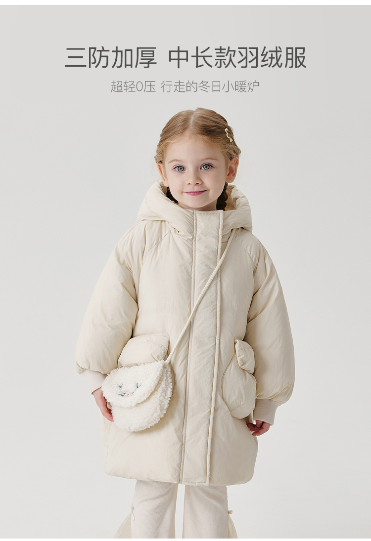 【三防】马克珍妮女童超轻防寒中长款羽绒服2024年冬装新款241611
