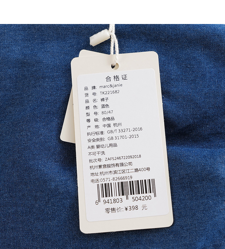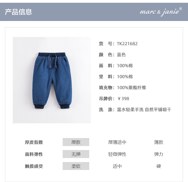 马克珍妮冬装新款 女童全棉牛仔夹棉束脚裤 儿童裤子221682