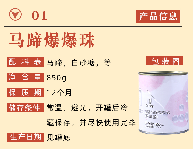 850g 盾皇 马蹄爆爆珠(果味酱) 夹心爆爆蛋 爆浆珍珠奶茶店原料