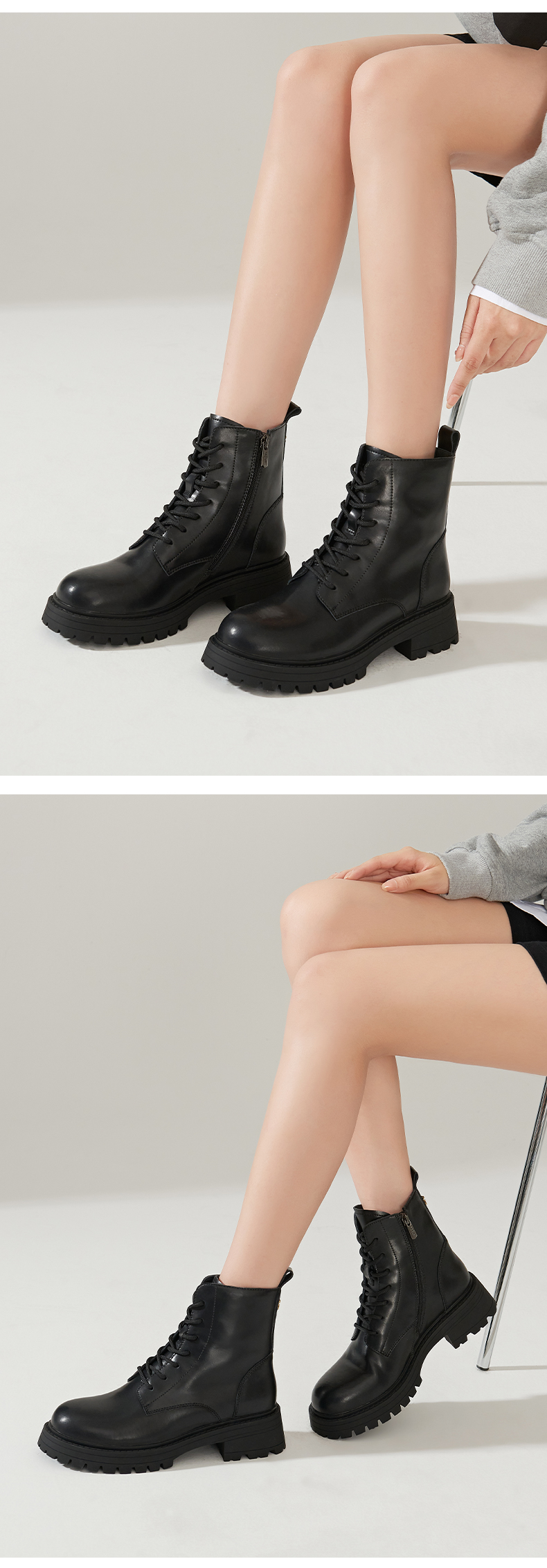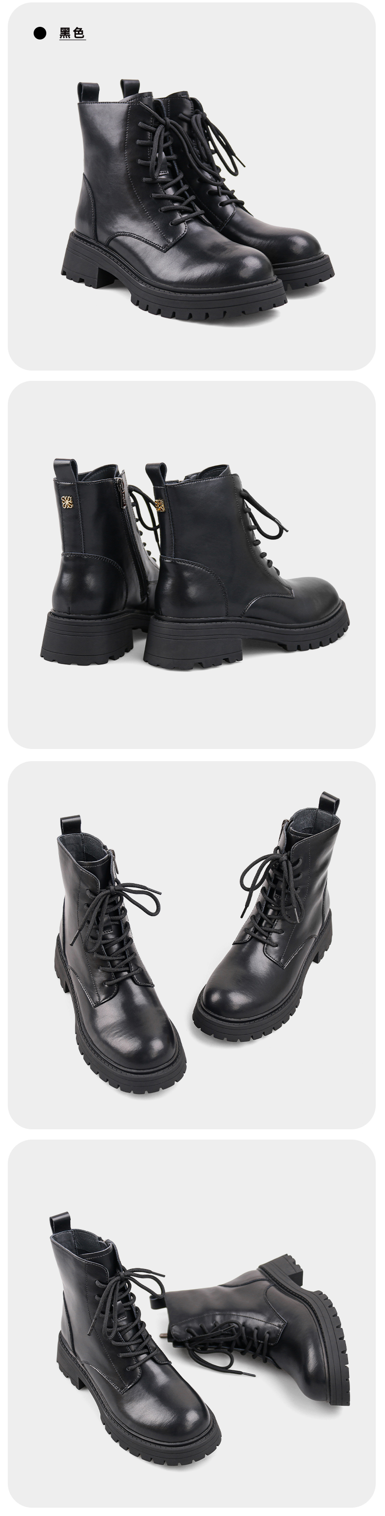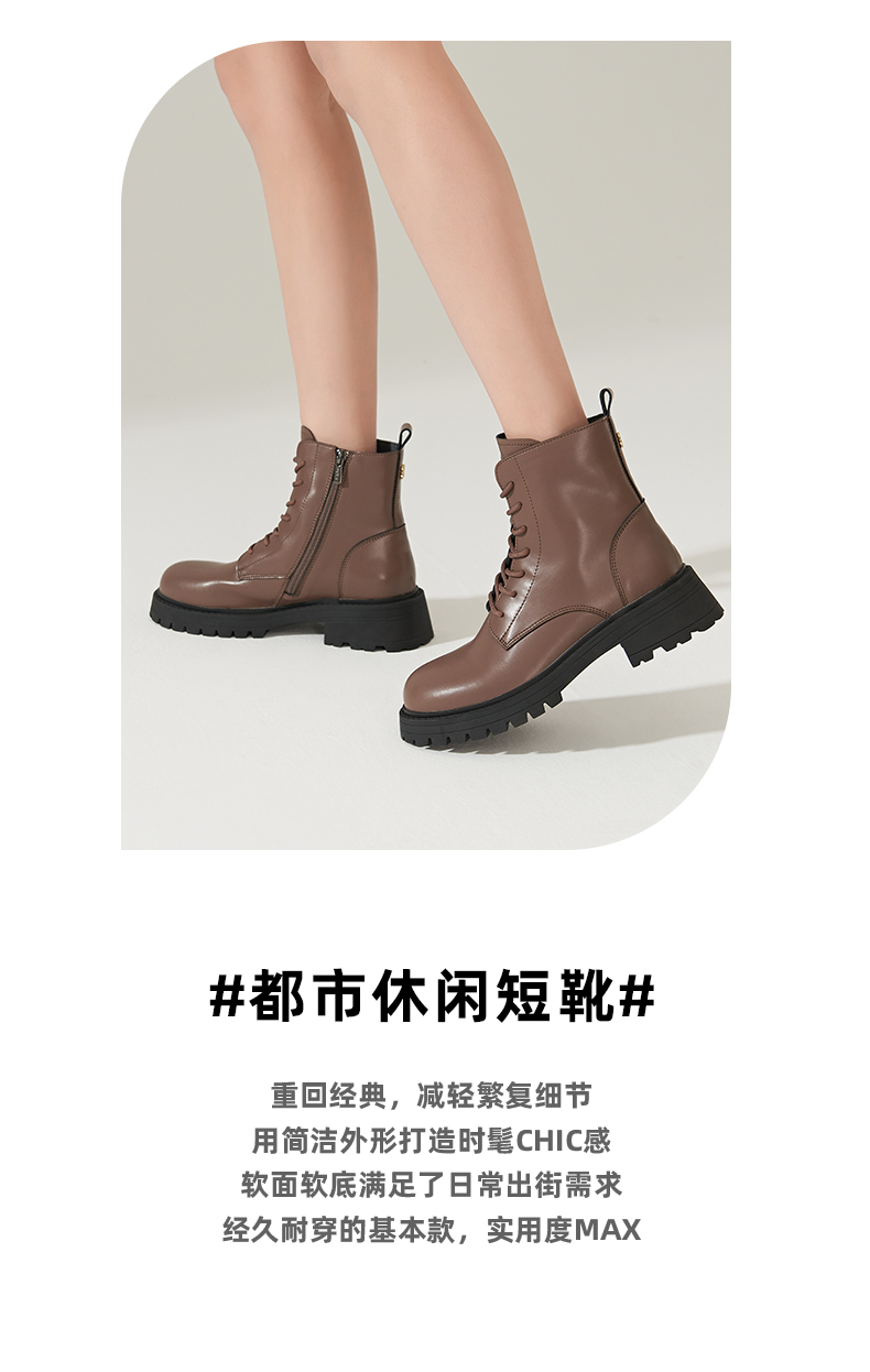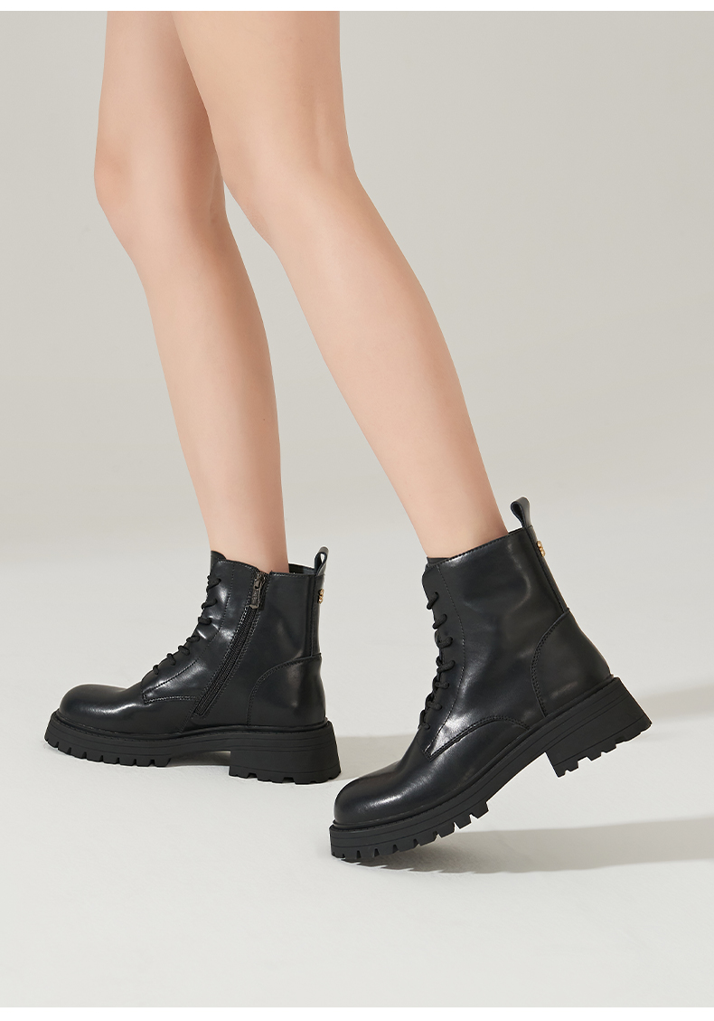 【春节不打烊】Safiya/索菲娅 真皮马丁靴女2022年冬季新款复古厚底高帮系带短靴 SF24116024
