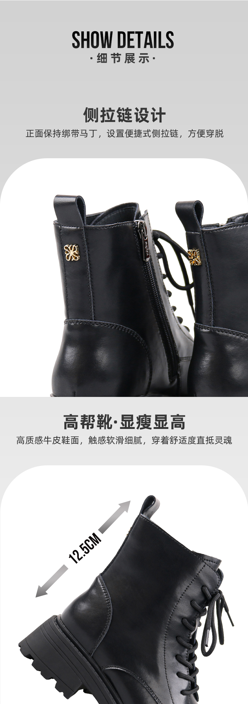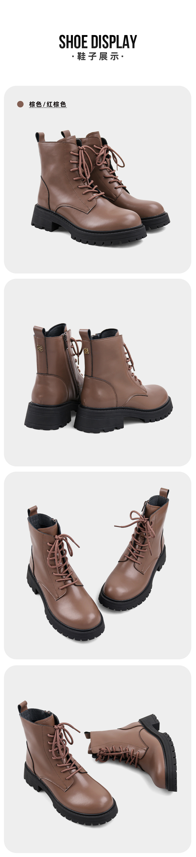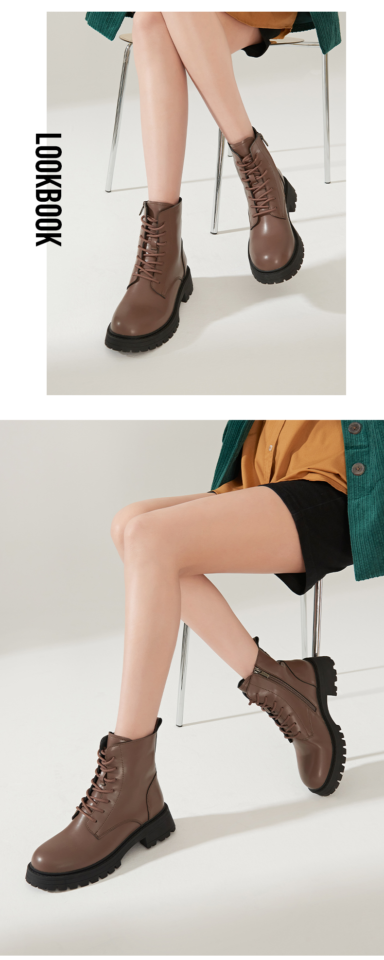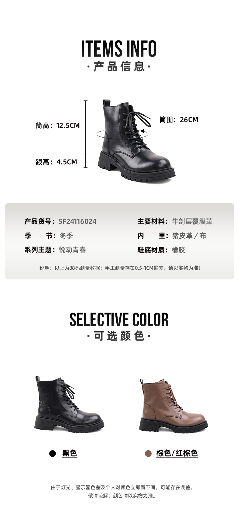 【春节不打烊】Safiya/索菲娅 真皮马丁靴女2022年冬季新款复古厚底高帮系带短靴 SF24116024