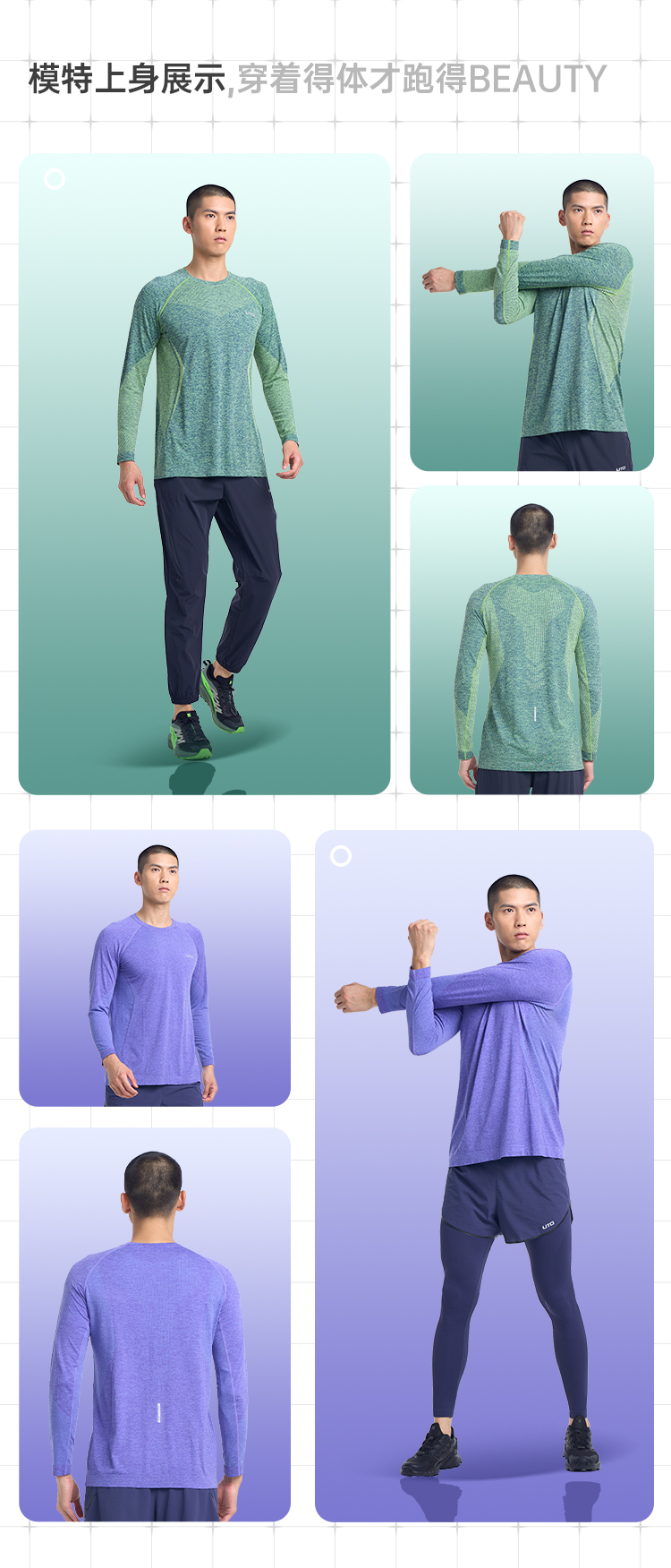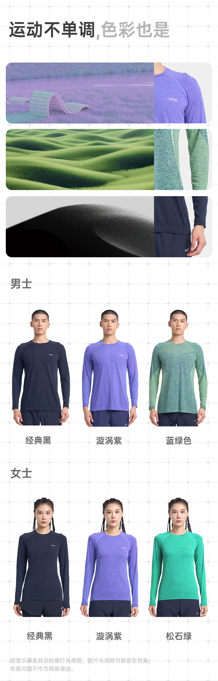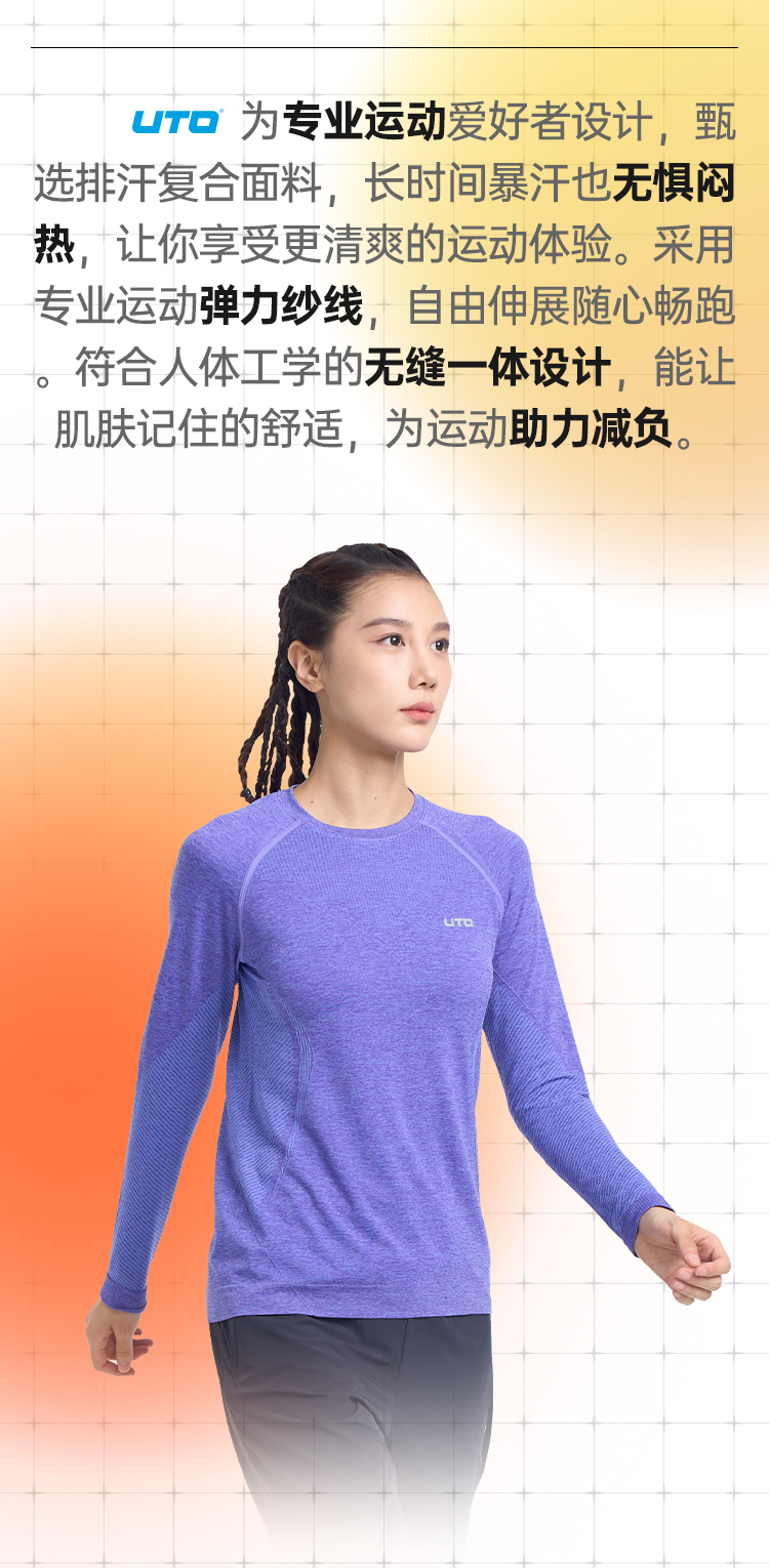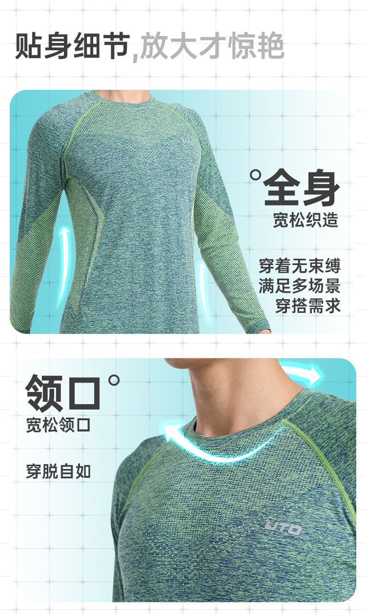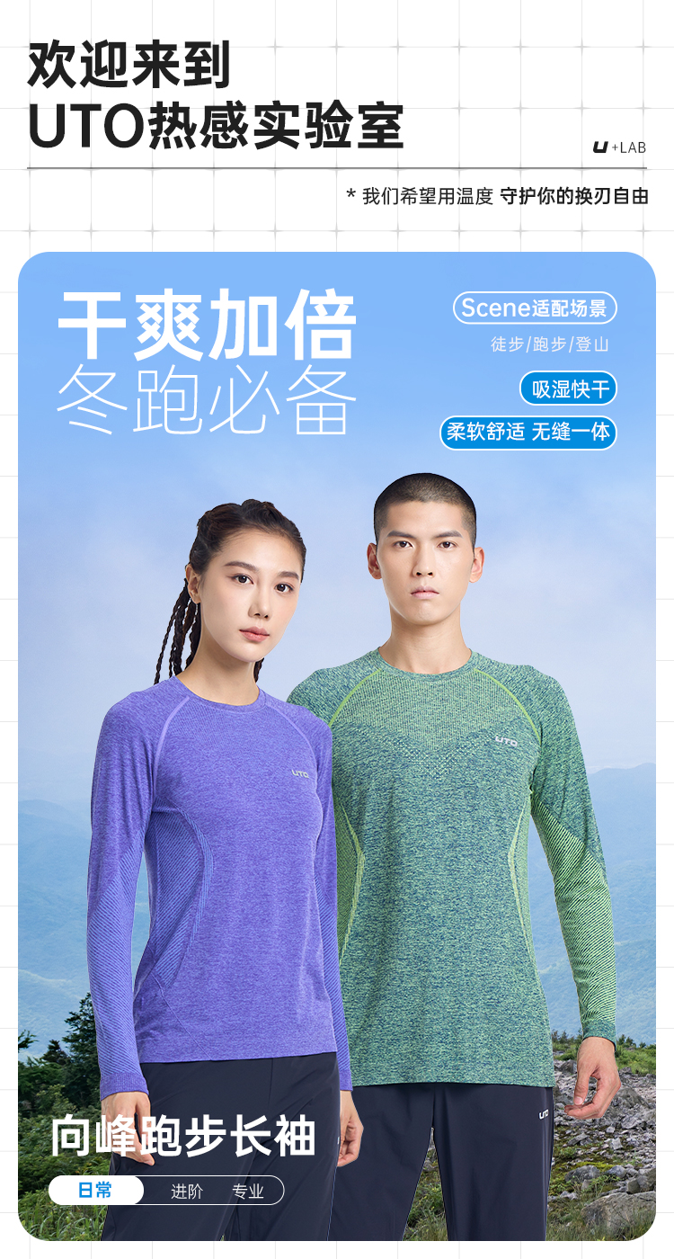 UTO/悠途男士向峰休闲健身跑步圆领吸汗薄款快干弹力女士运动长袖上衣