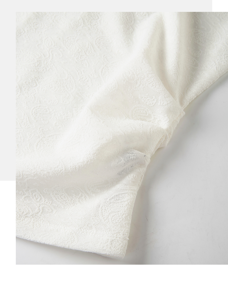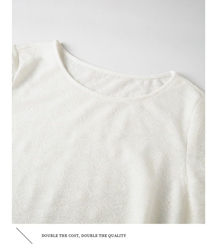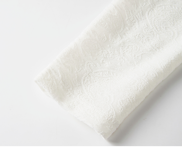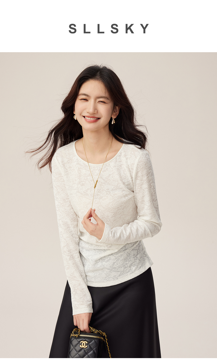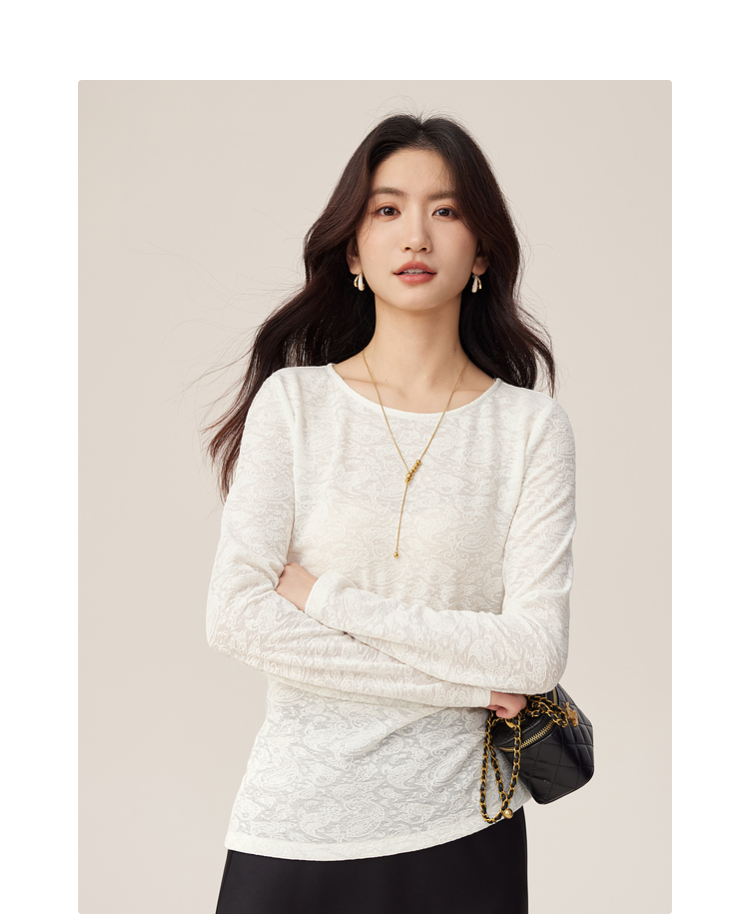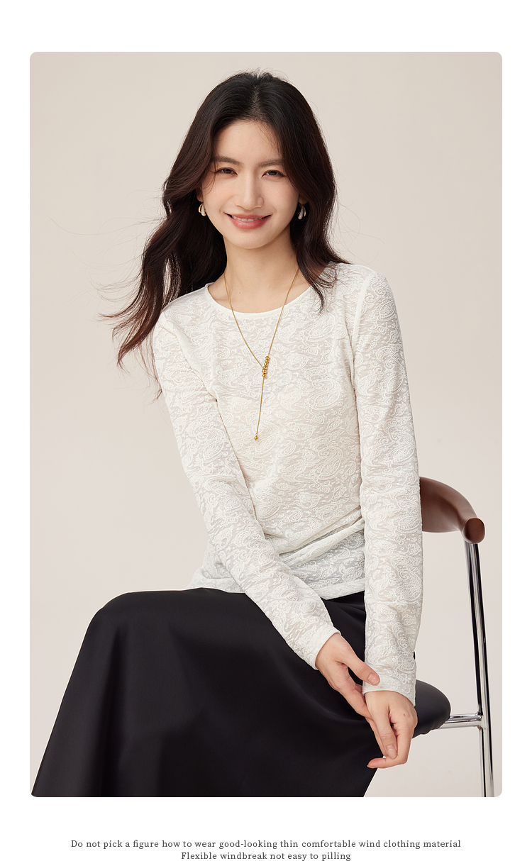 【08/19新品】熙世界白色提花长袖T恤女秋2025新款设计感圆领捏褶收腰显瘦上衣
