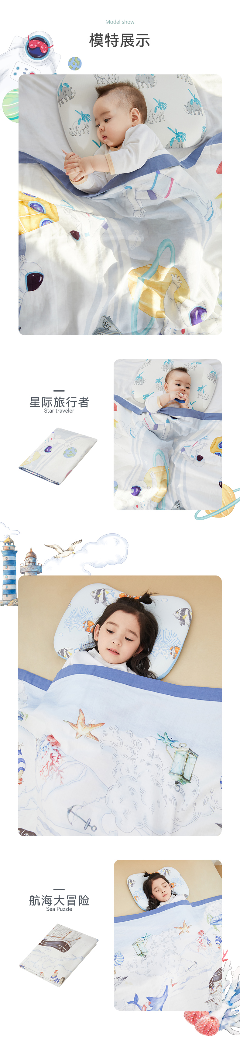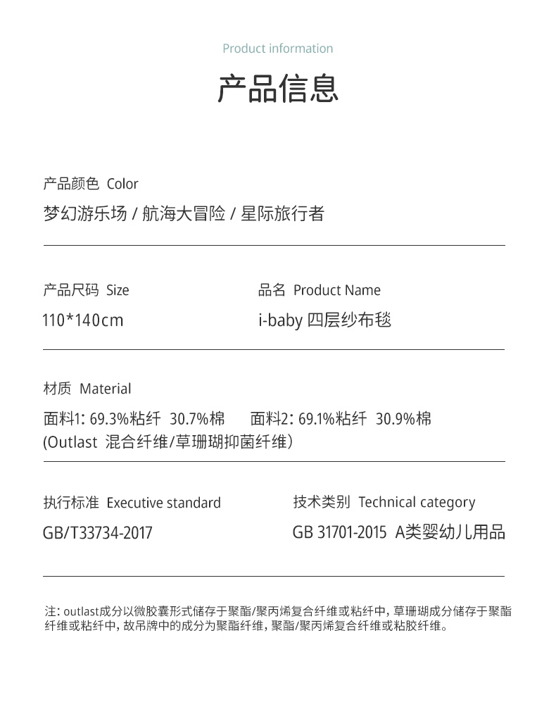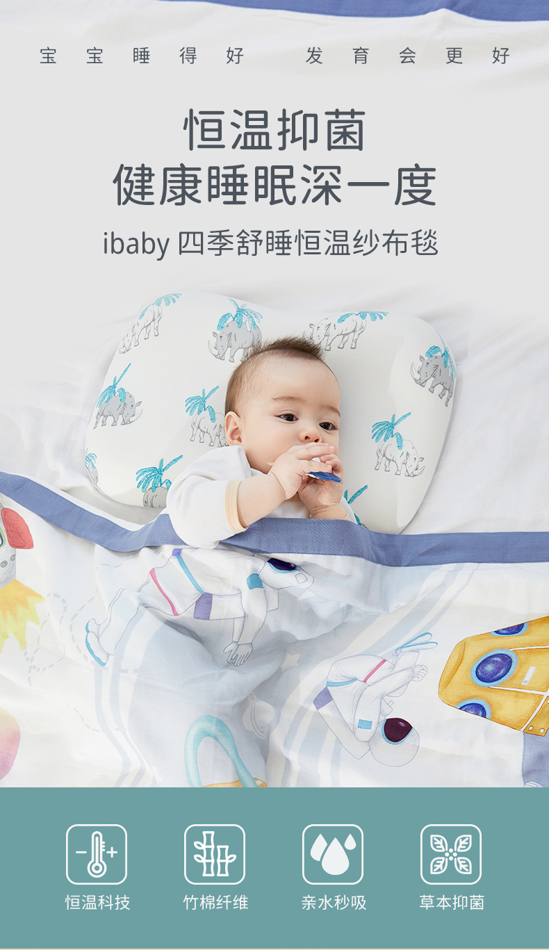ibaby×outlast太空科技恒温抗菌双层纱布毯 宝宝午睡毯儿童盖毯新生婴儿双层纱布竹棉毯【组合商品 不支持单退】