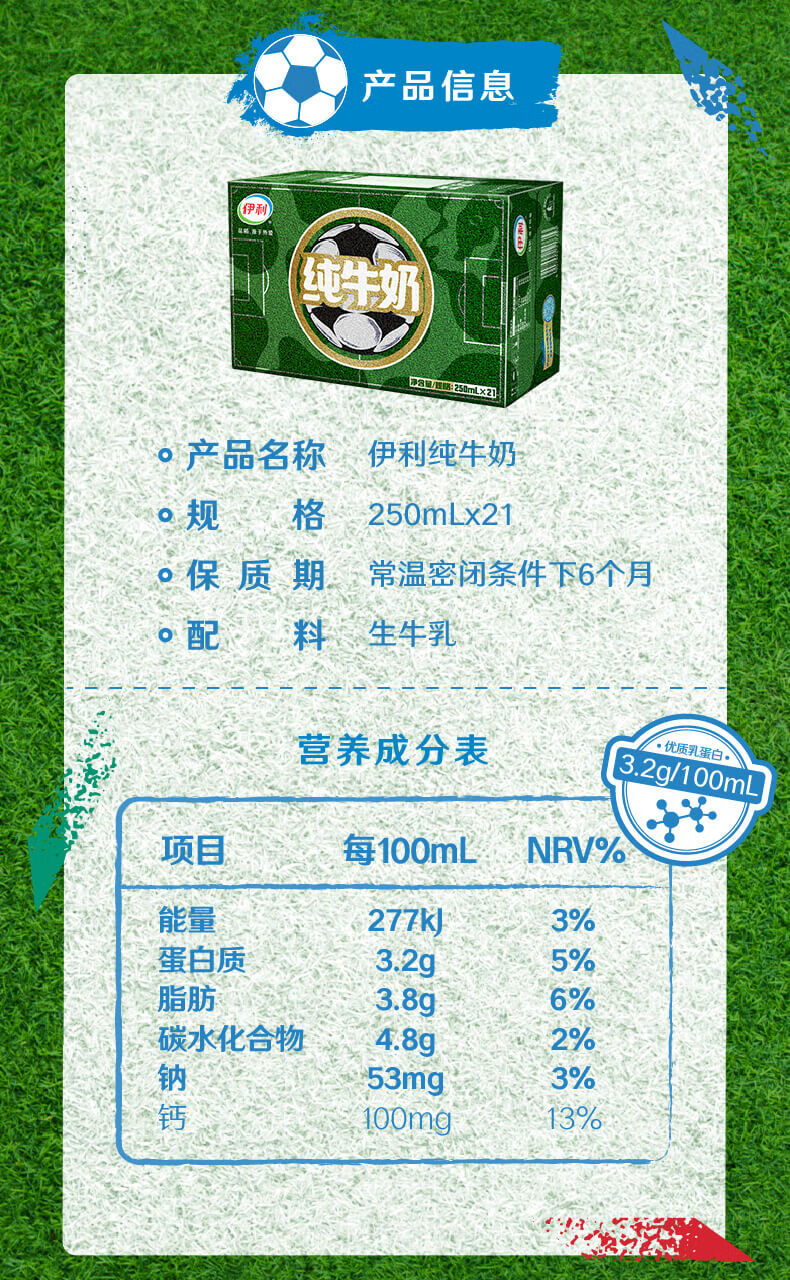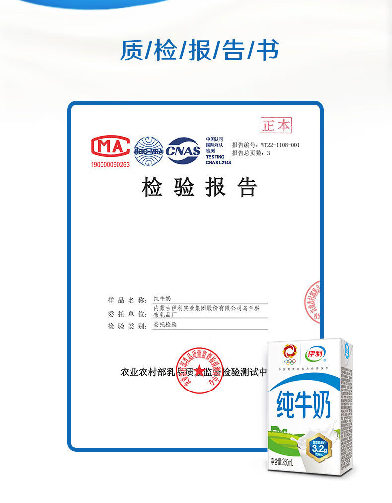 伊利 纯牛奶250ml*21盒/箱 全脂牛奶 早餐伴侣