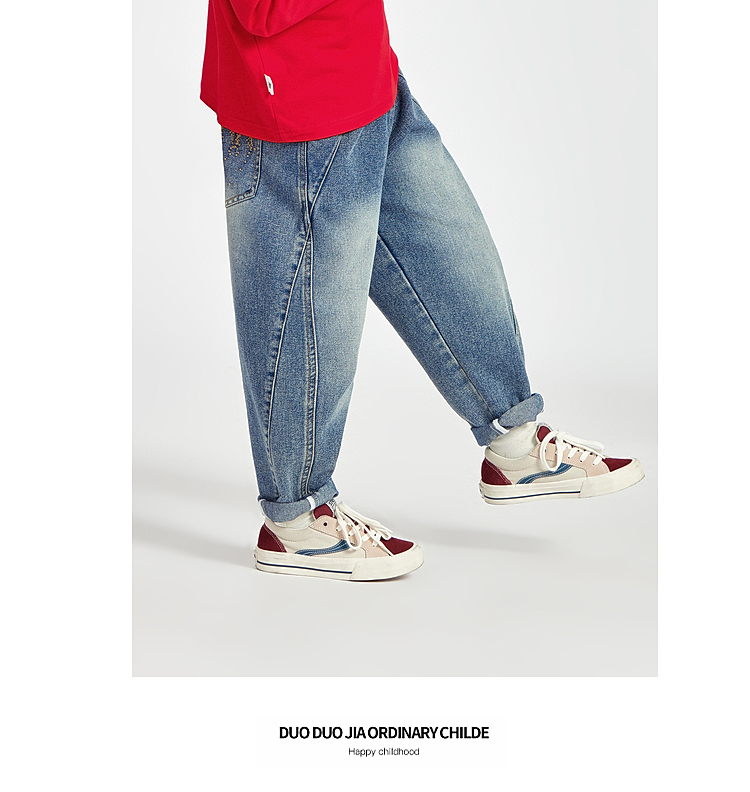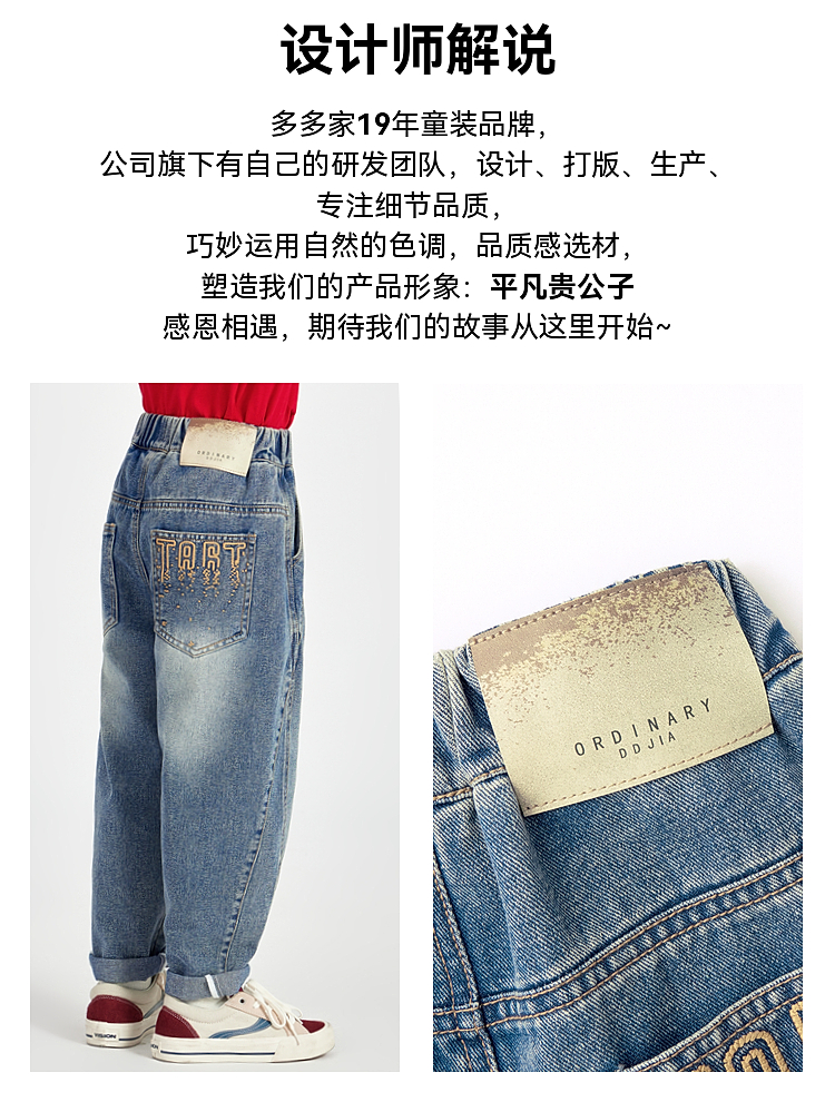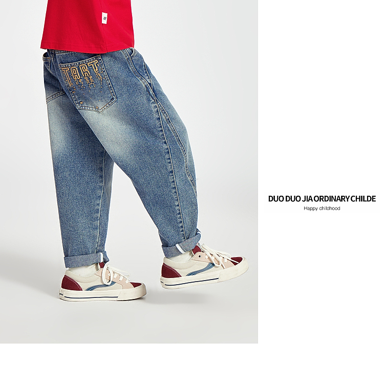 【团购价】多多家男童牛仔裤2025春秋新款儿童中大童春装刺绣洋气休闲裤子潮10396