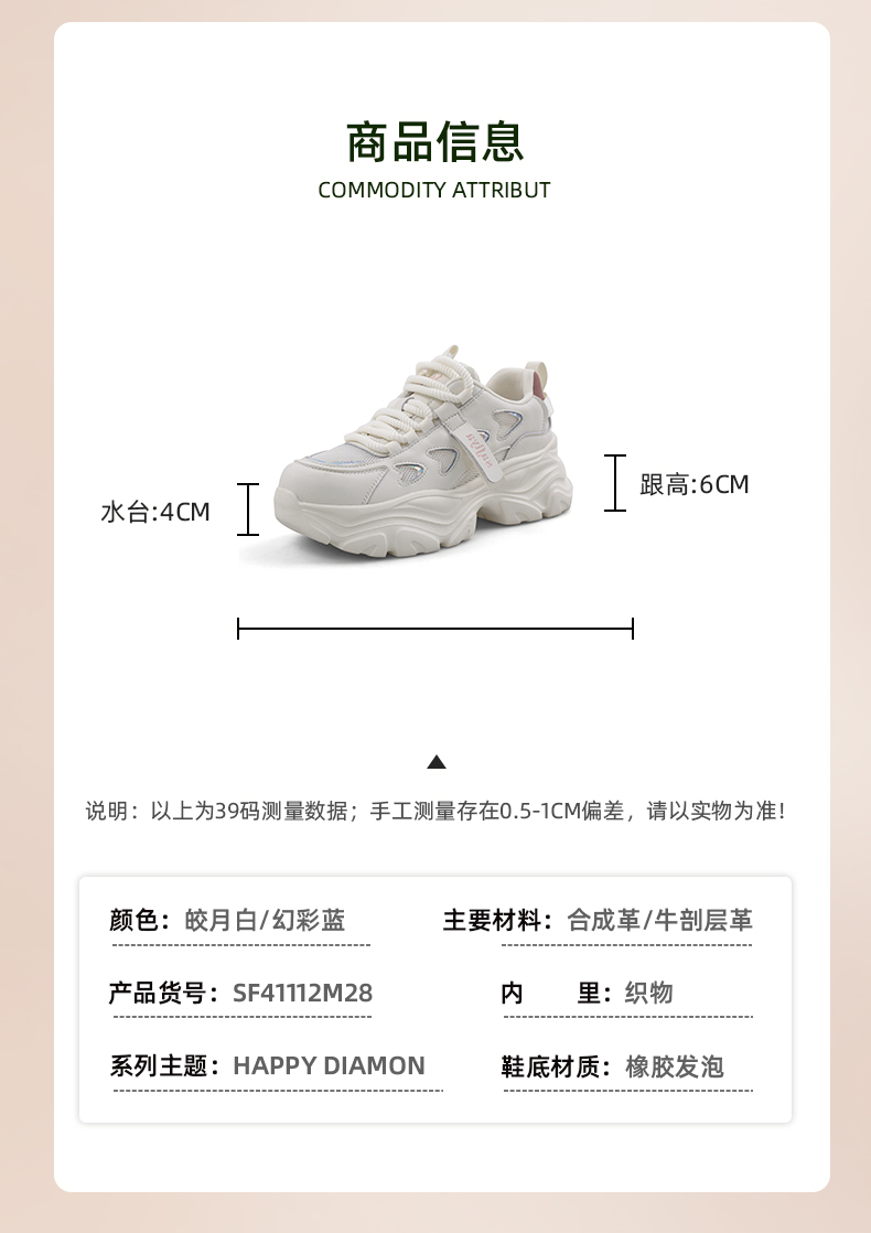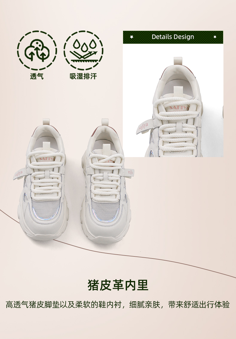 Safiya/索菲娅2024春季百搭网面透气厚底运动休闲老爹鞋 SF41112428