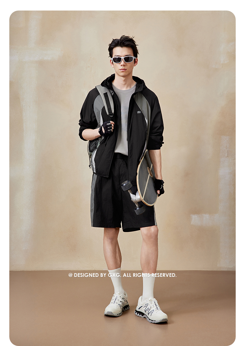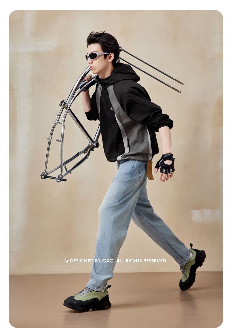 【杜邦三防】gxgjeans男装秋季户外休闲时尚舒适撞色连帽夹克外套男