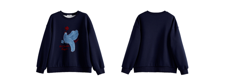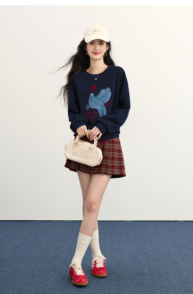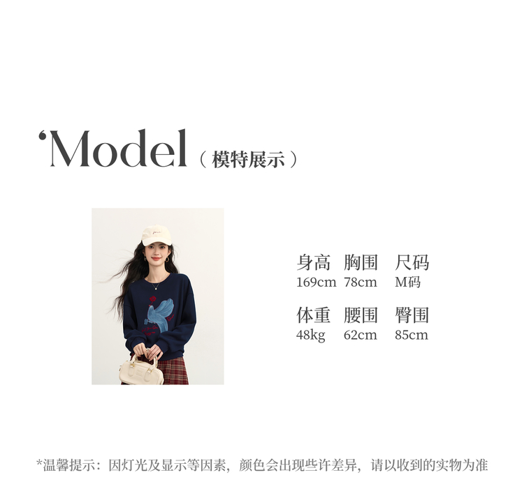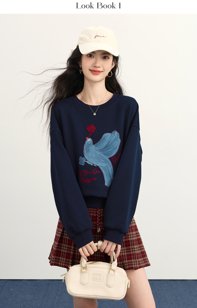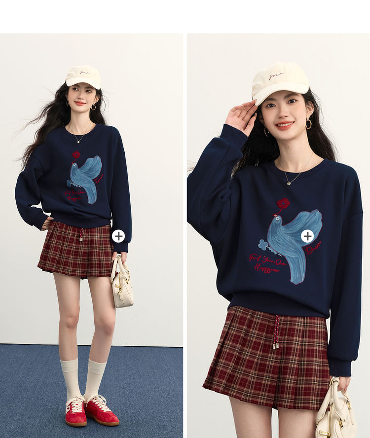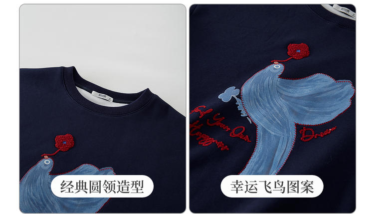 【年货节】熙世界「幸运飞鸟」加绒圆领卫衣女秋冬2025年新款宽松慵懒风上衣