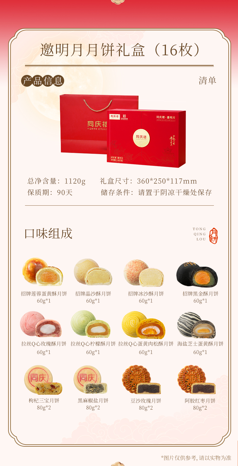 【售罄勿拍】同庆楼 邀明月礼盒1120g 中秋月饼礼盒装 16饼12味 匠心制作 高档礼盒 送人送礼送长辈 72小时发货