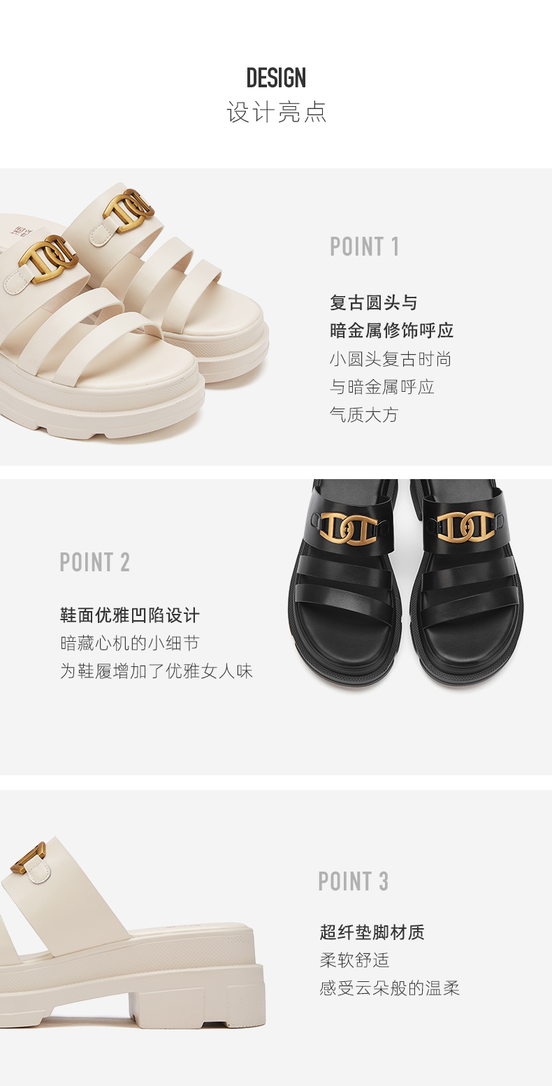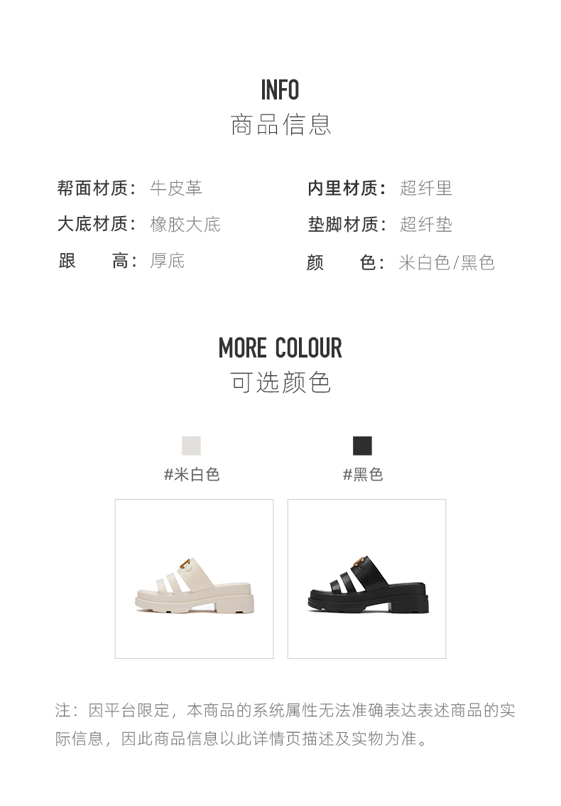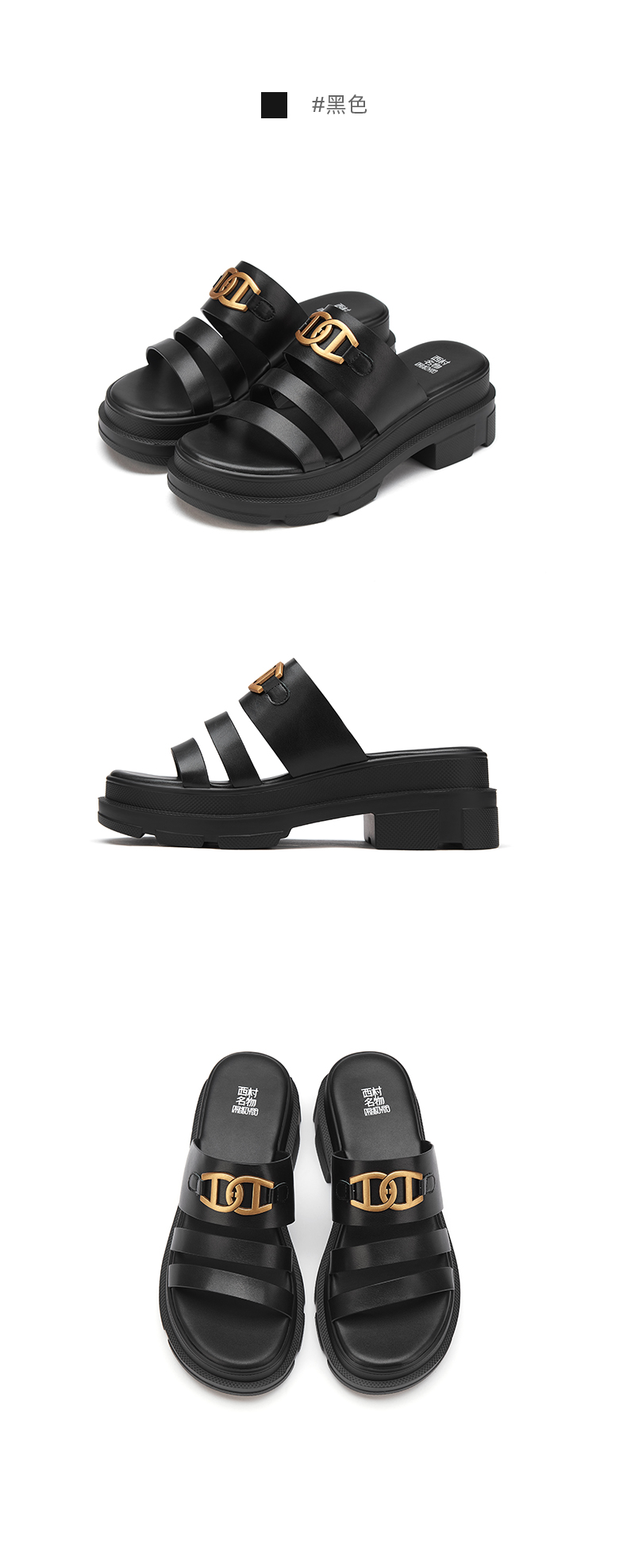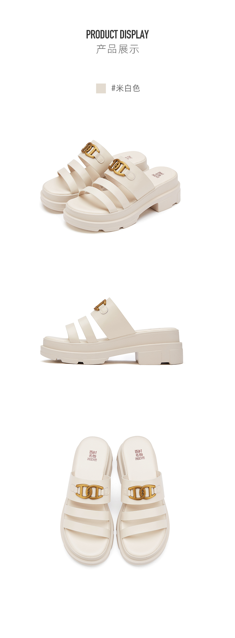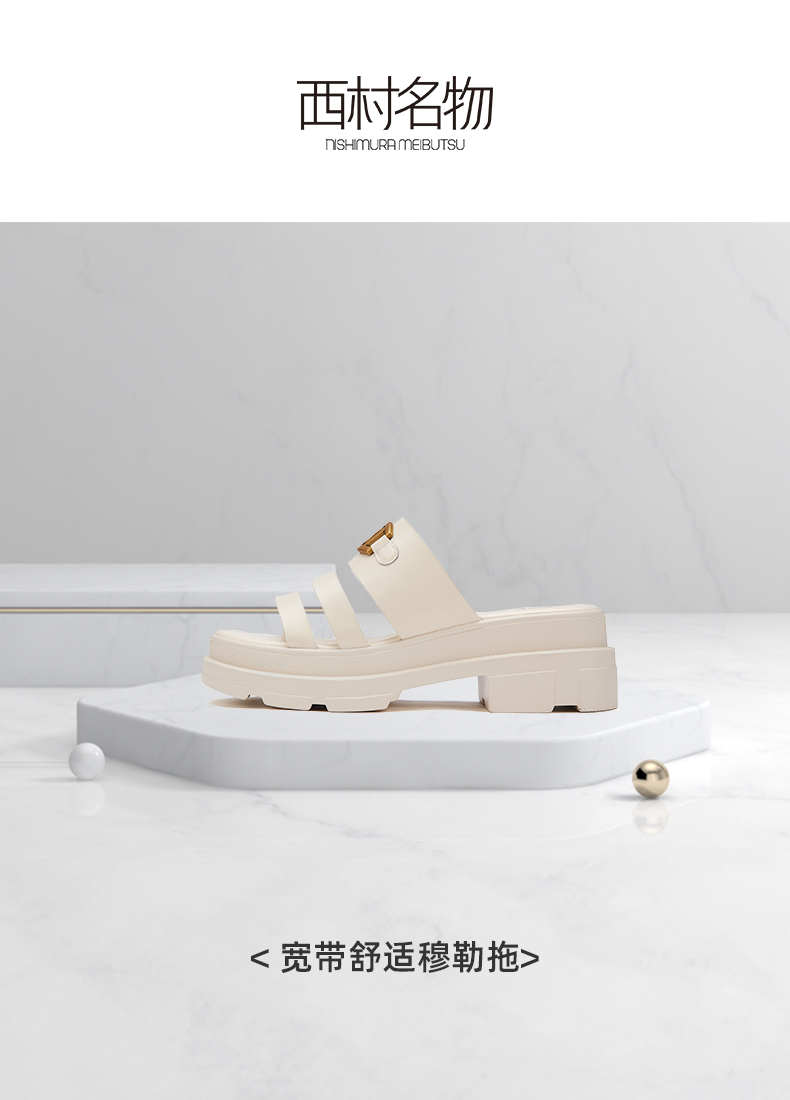 西村名物真皮女鞋21夏露趾一字带凉拖鞋防水台松糕鞋沙滩鞋23851