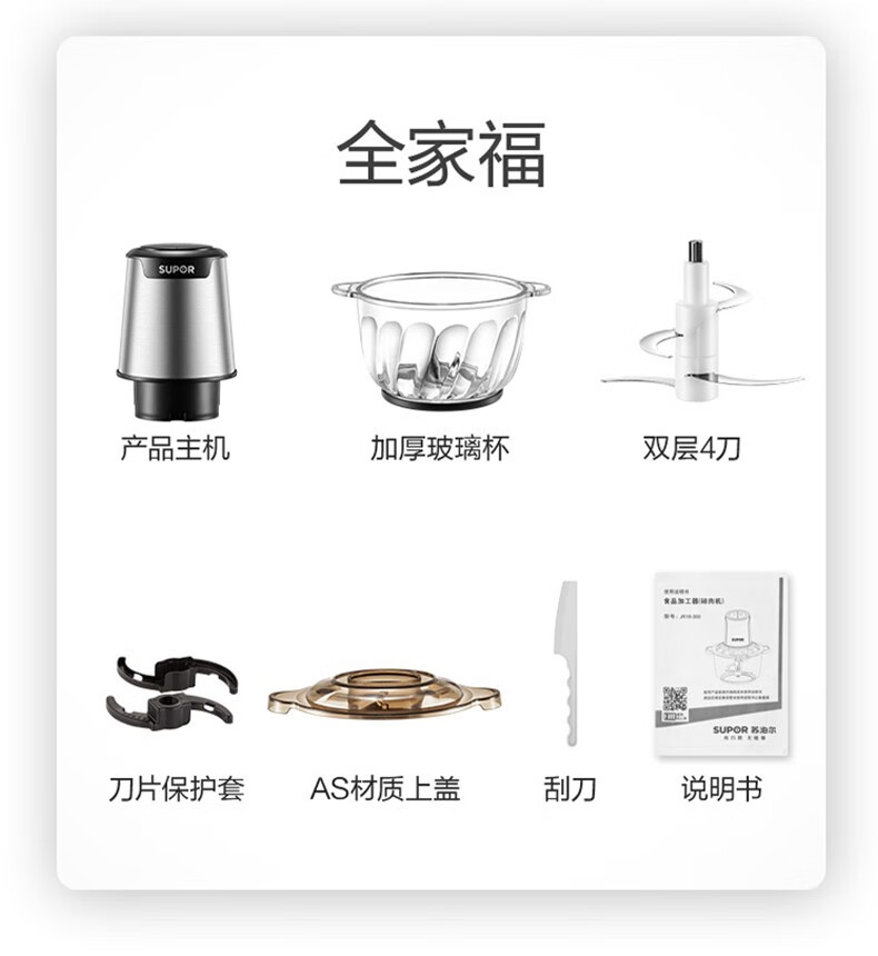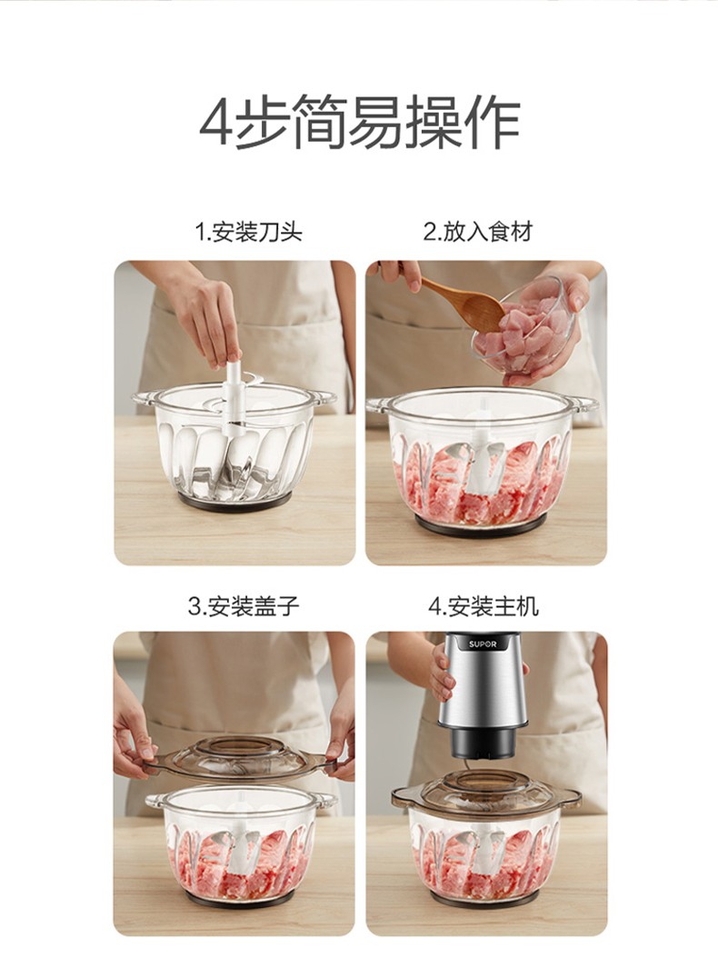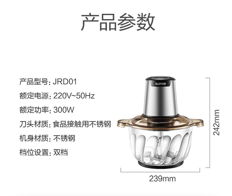 苏泊尔(SUPOR)两档转速可调绞馅碎肉不锈钢多功能绞肉机JRD01-300【企业采购】