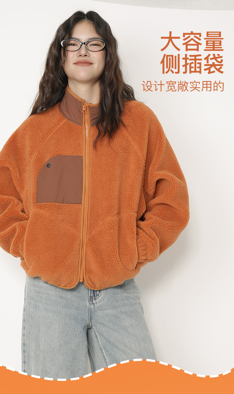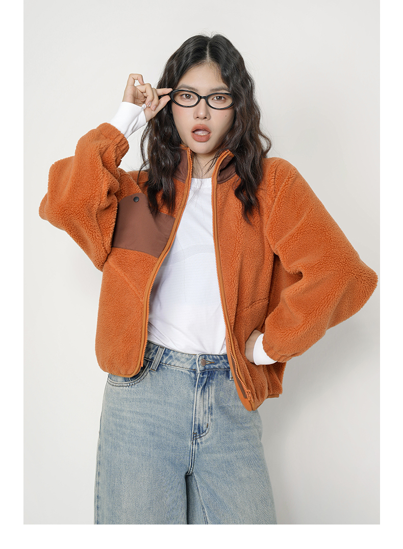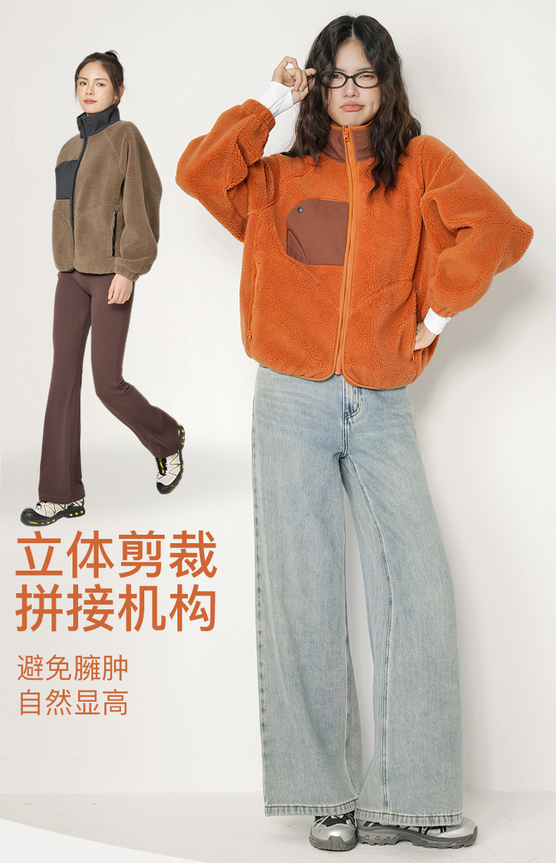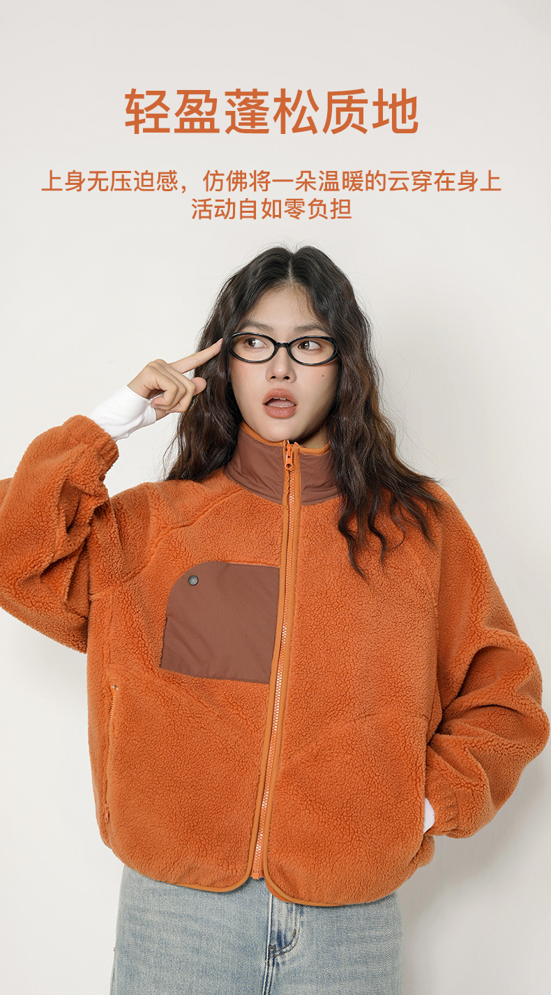 Leorrey乐拉立领蝙蝠袖宽松廓形羊羔绒保暖外套WT0410