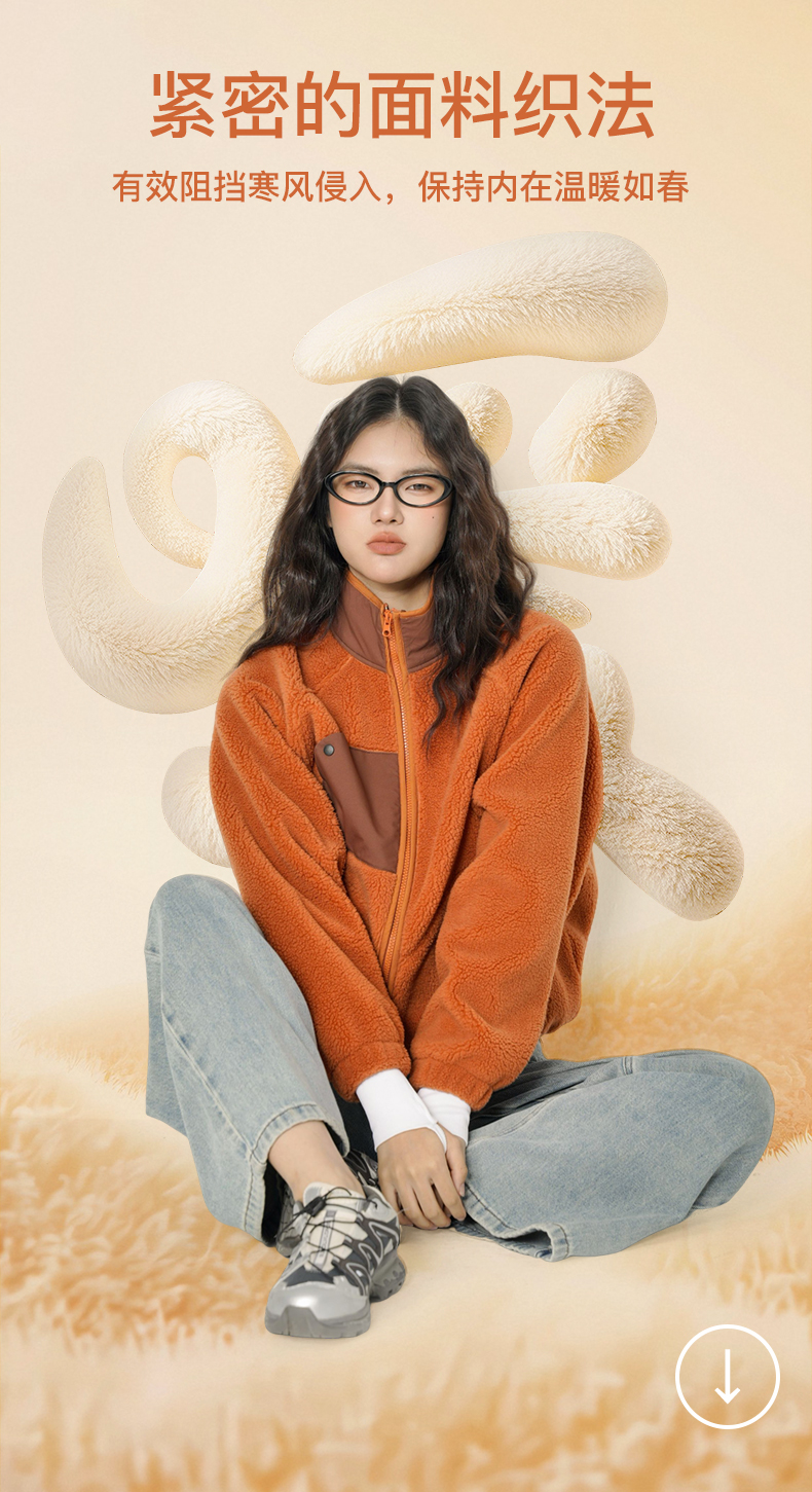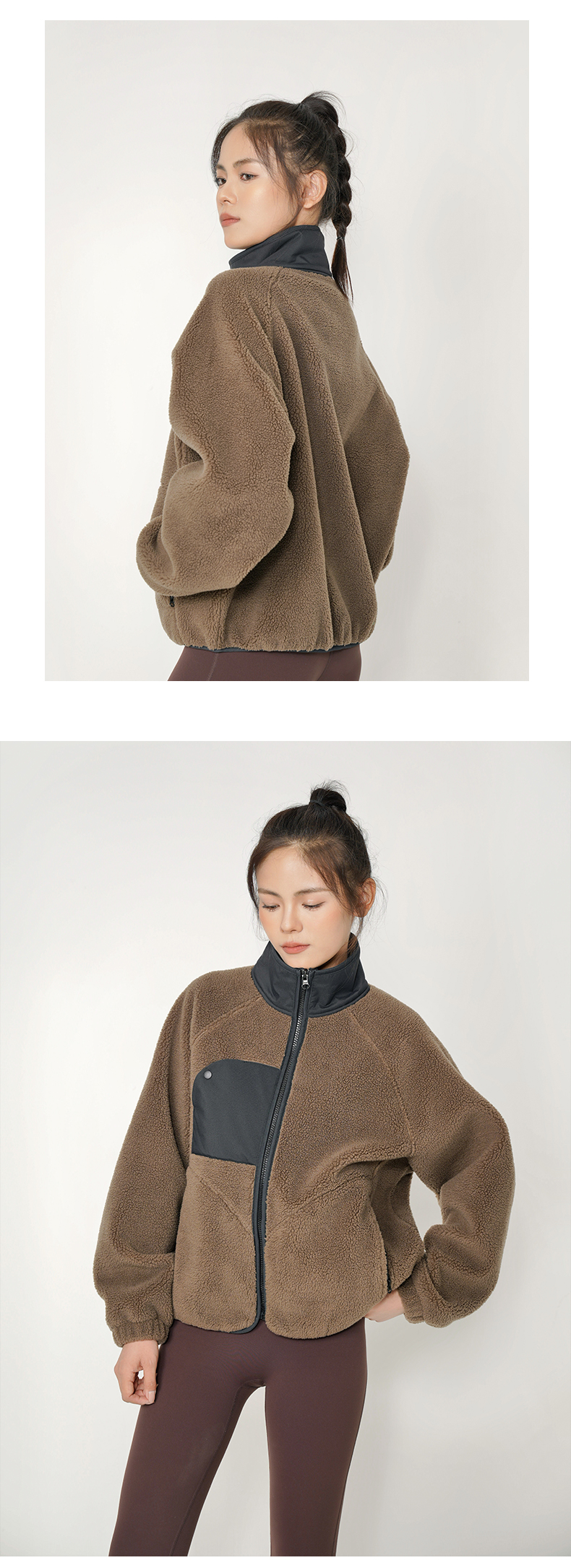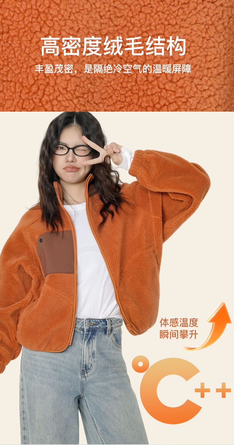 Leorrey乐拉立领蝙蝠袖宽松廓形羊羔绒保暖外套WT0410