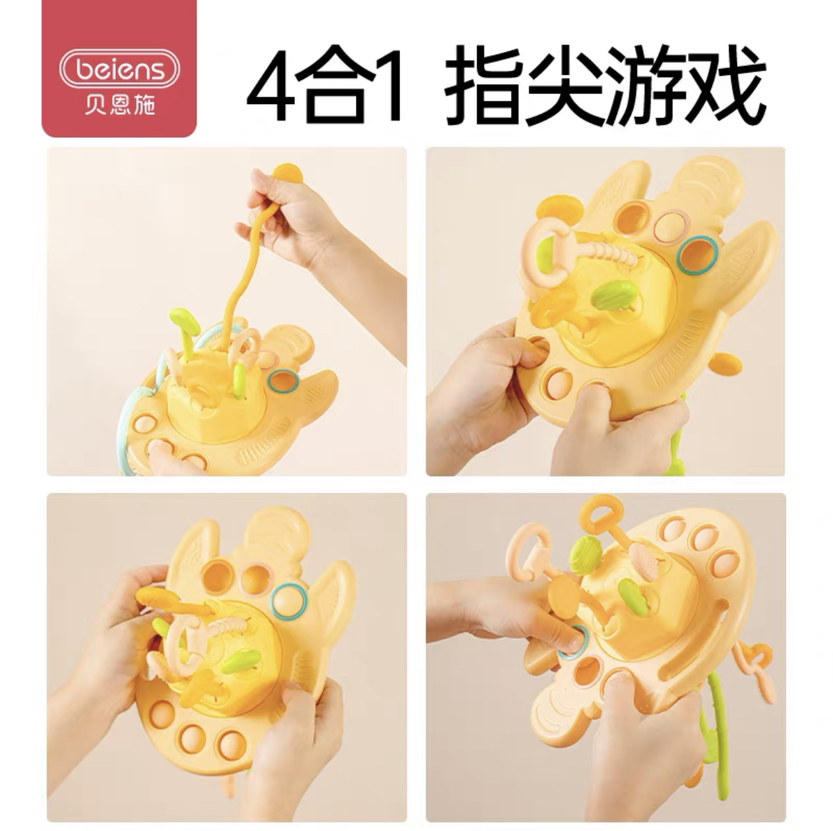 贝恩施婴儿手指拉拉乐宝宝牙胶磨牙防吃手新生小月龄口欲期玩具