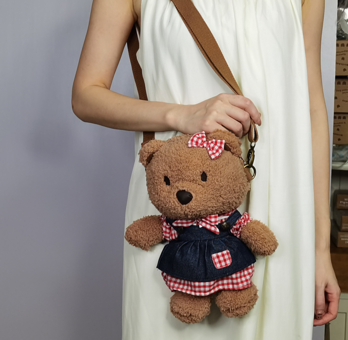 缤纷熊長毛斜挎袋