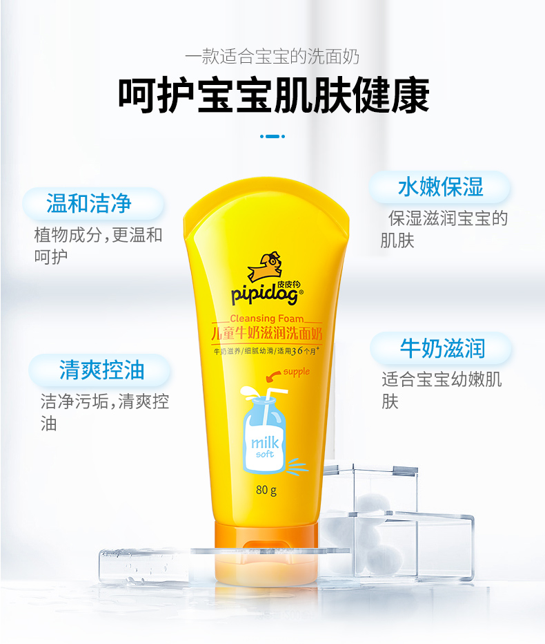 皮皮狗*儿童牛奶滋润洗面奶80g*2支