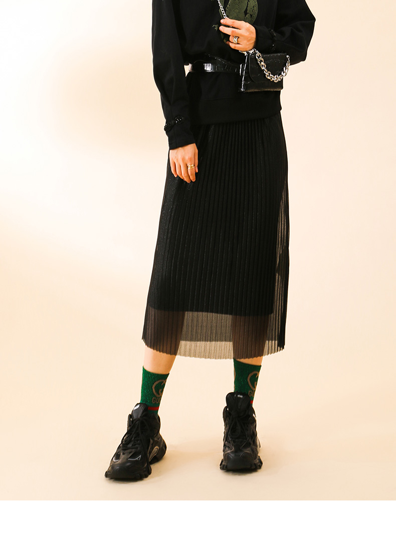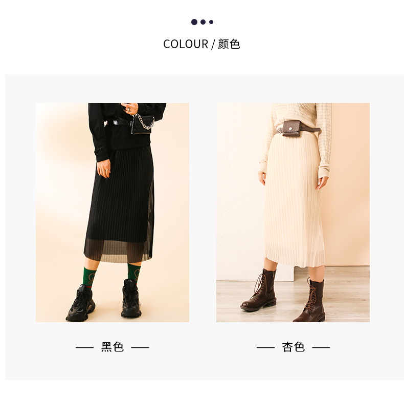 oldcolour黑色半身裙春季新款高腰复古A字显瘦中长裙女P11064408