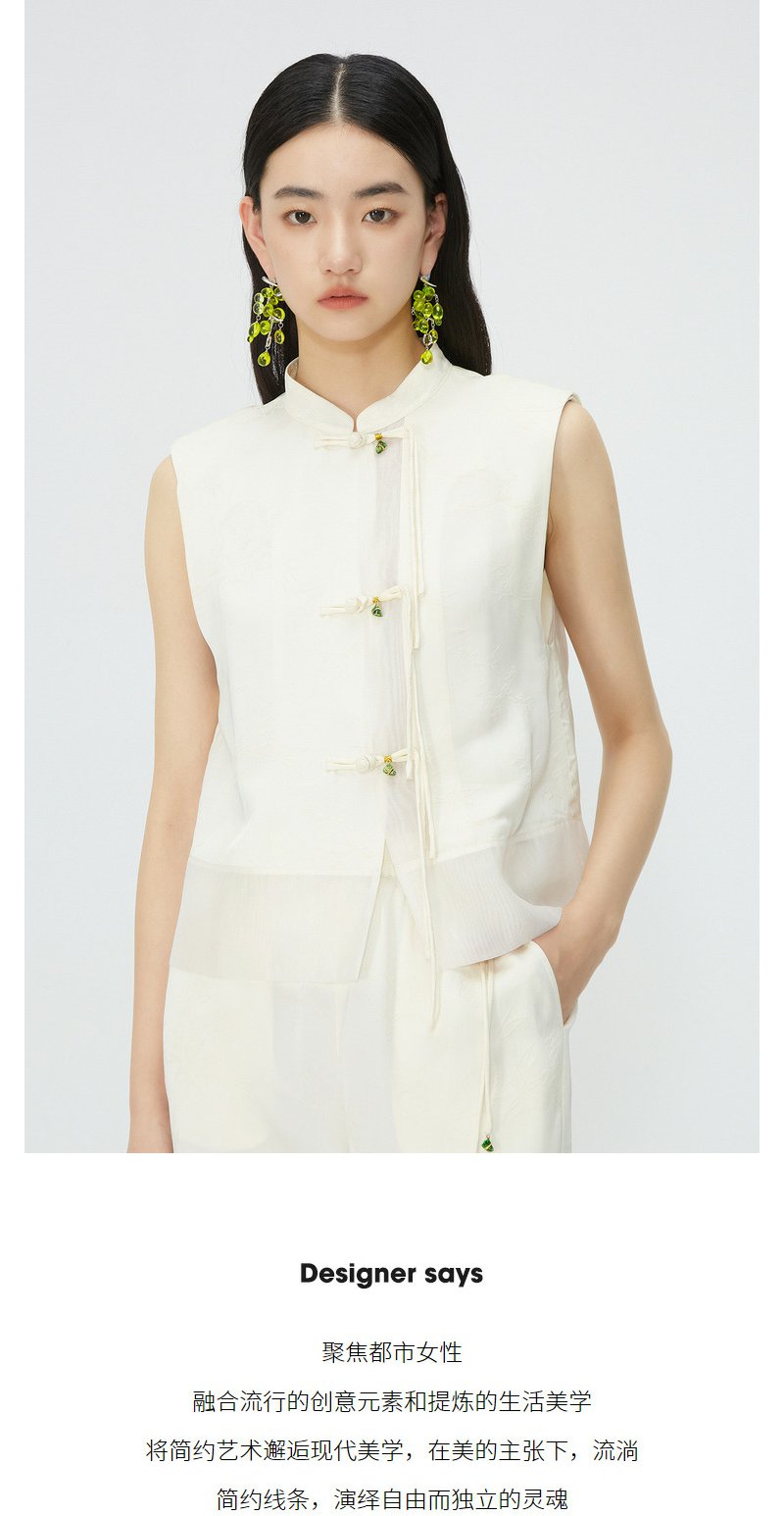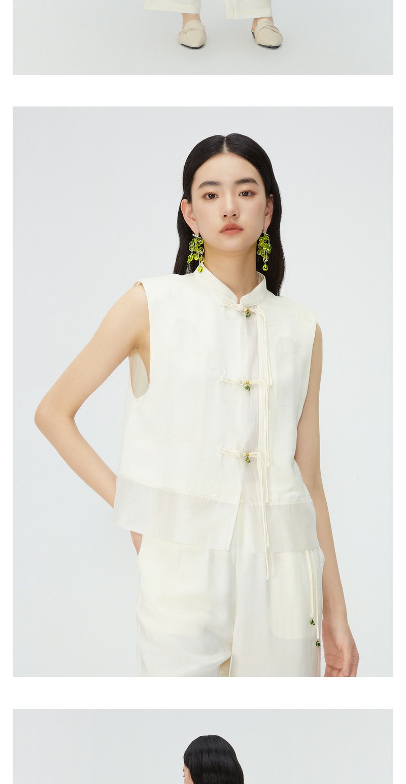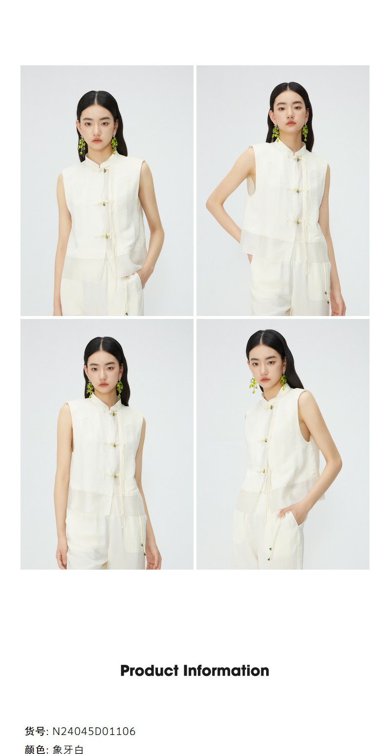 NEELLY纳俪商场同款新中式流苏盘扣无袖衬衫女夏季高级感立领马甲N24045D01106