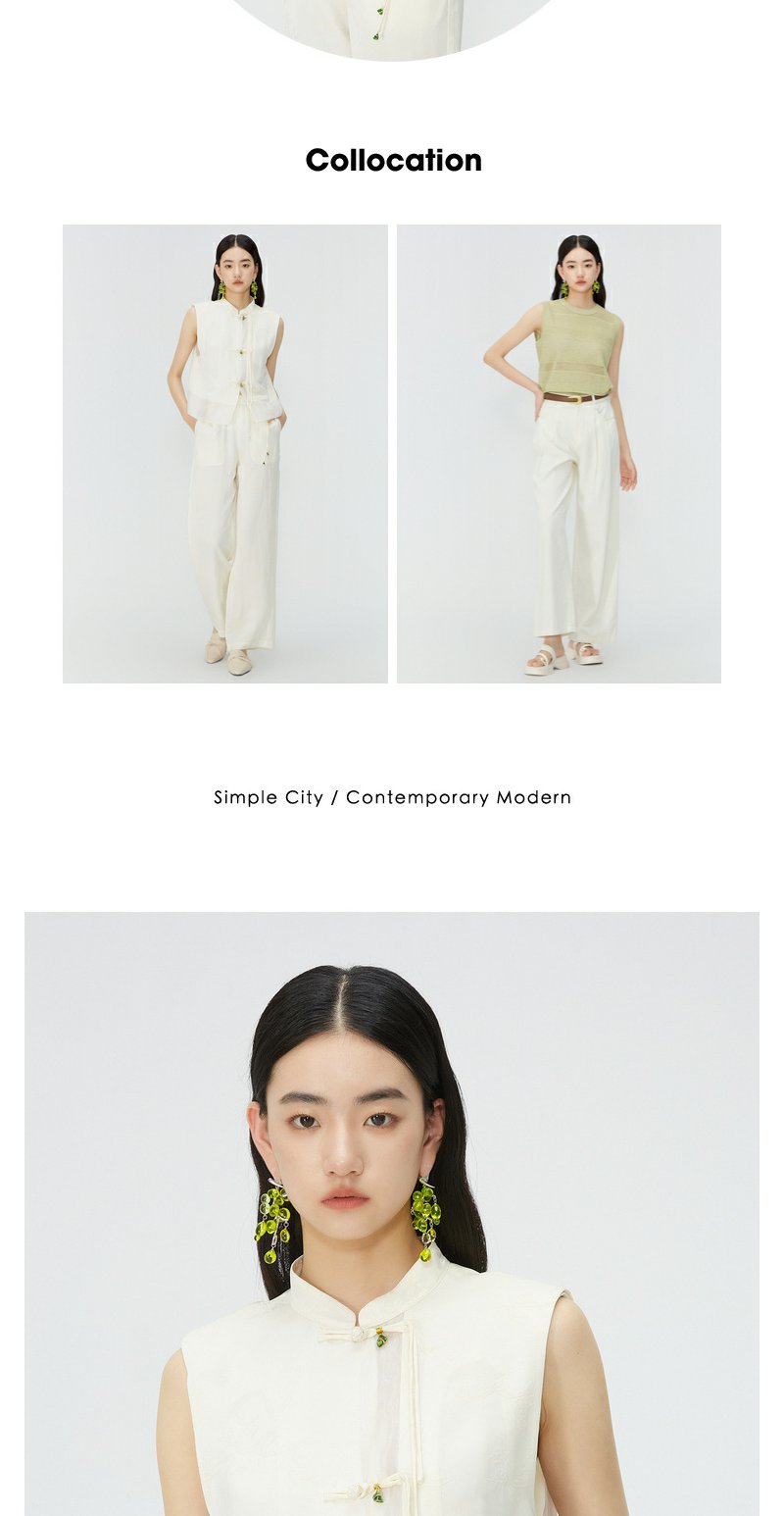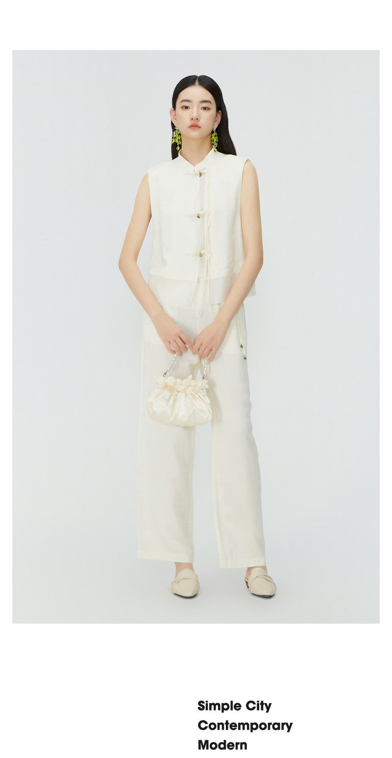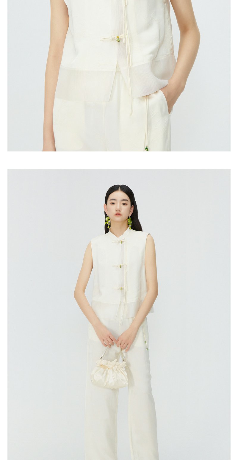 NEELLY纳俪商场同款新中式流苏盘扣无袖衬衫女夏季高级感立领马甲N24045D01106