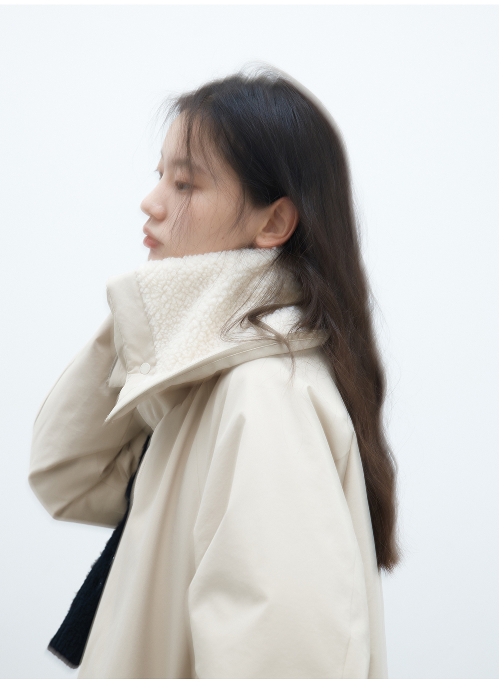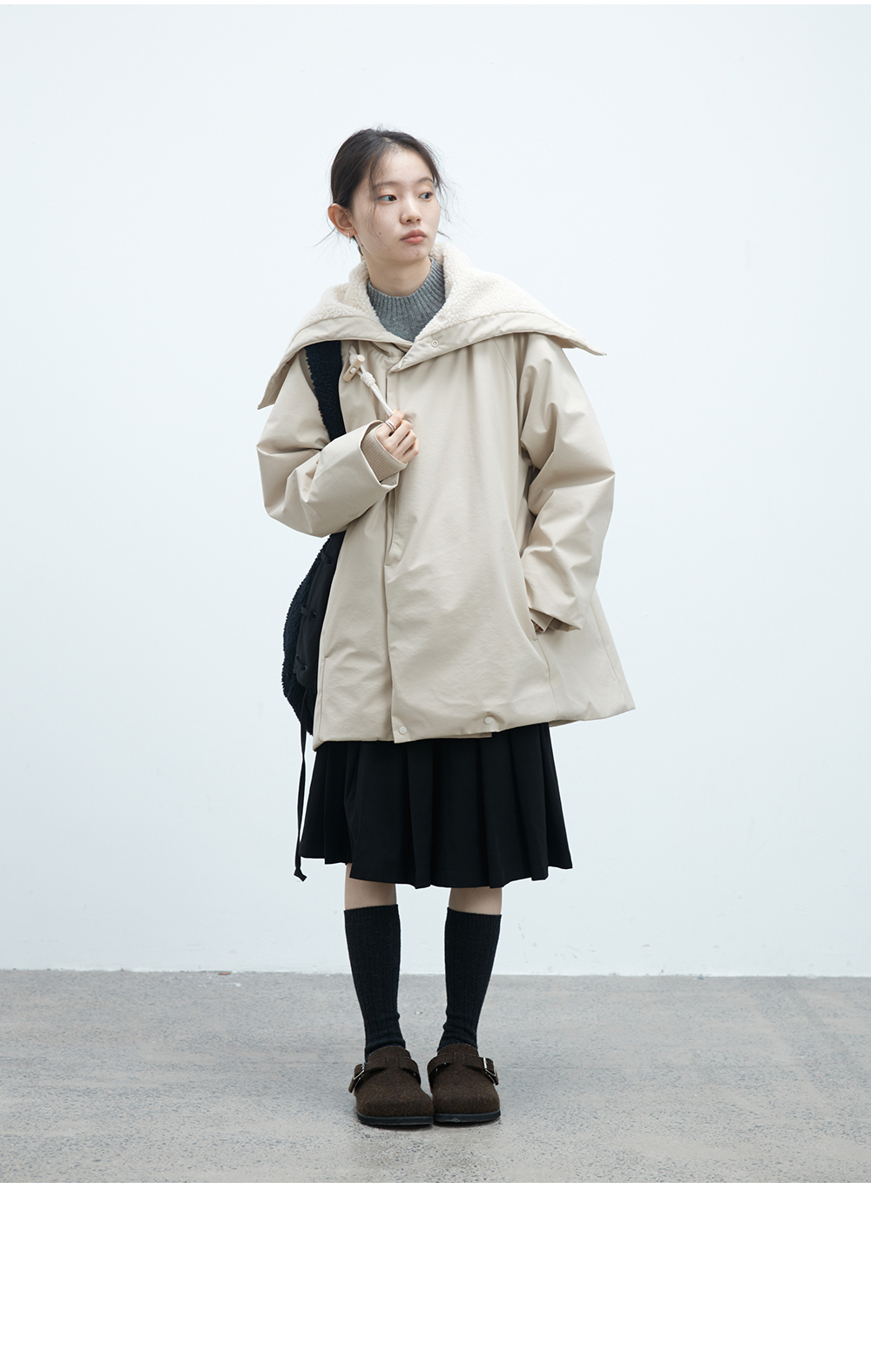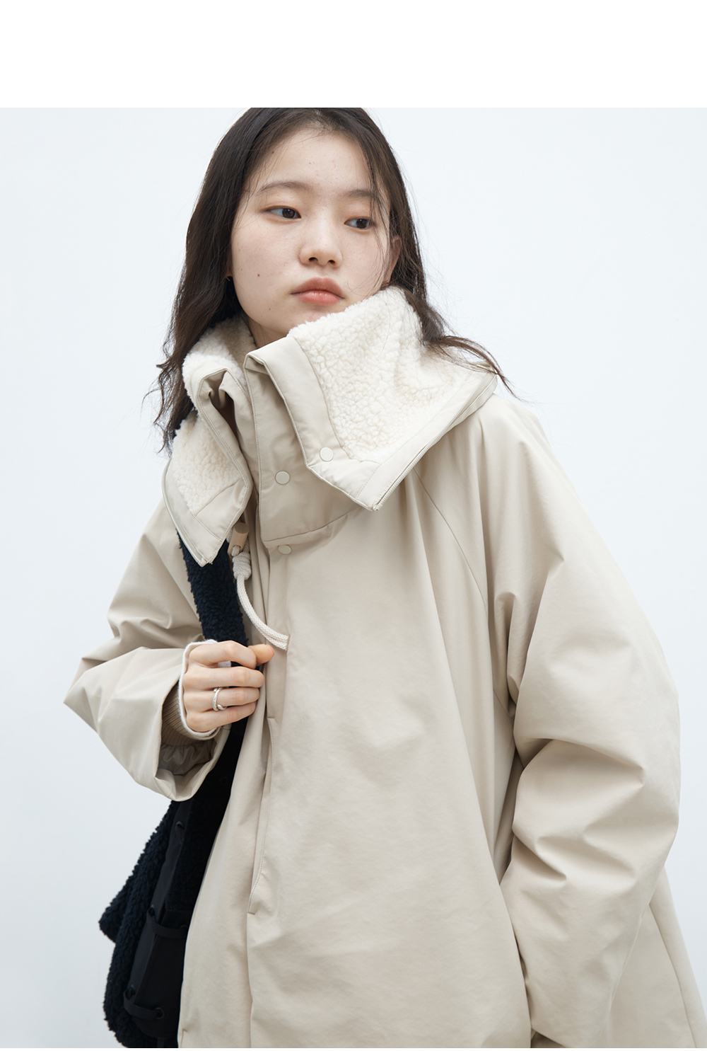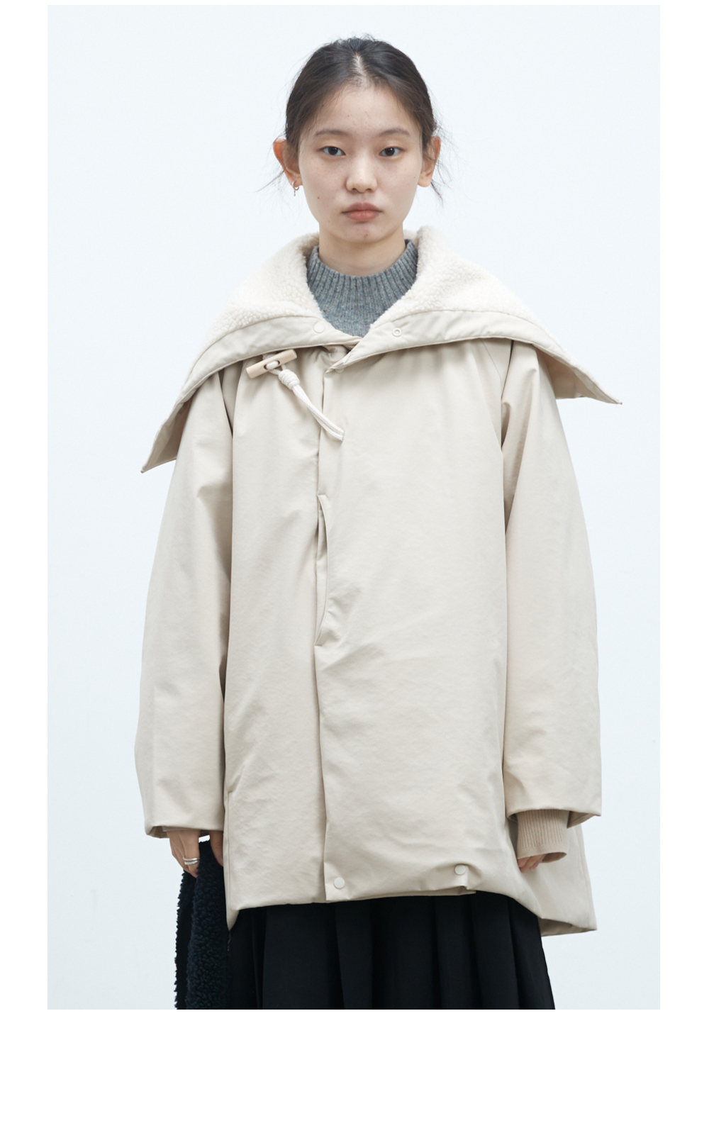 步履不停/4D26002C/连帽橄榄扣米白色中长款羽绒服