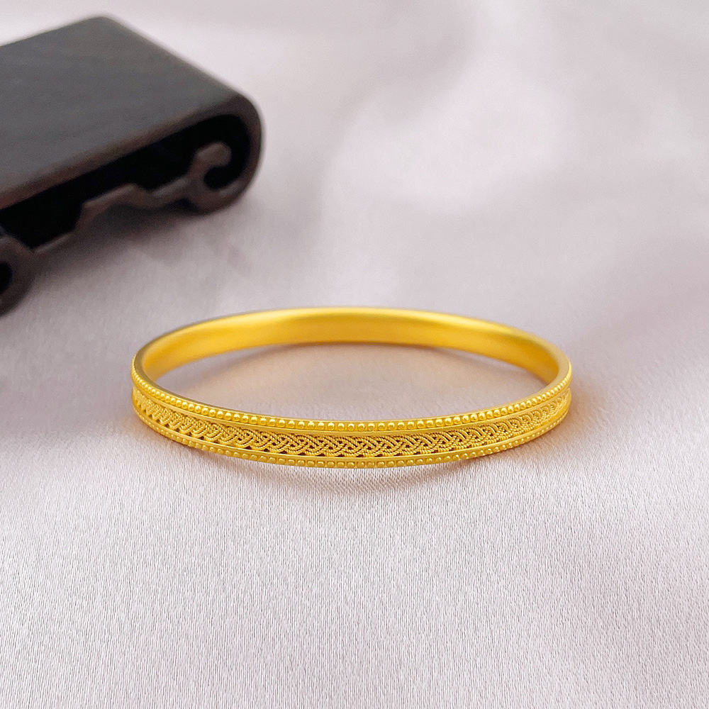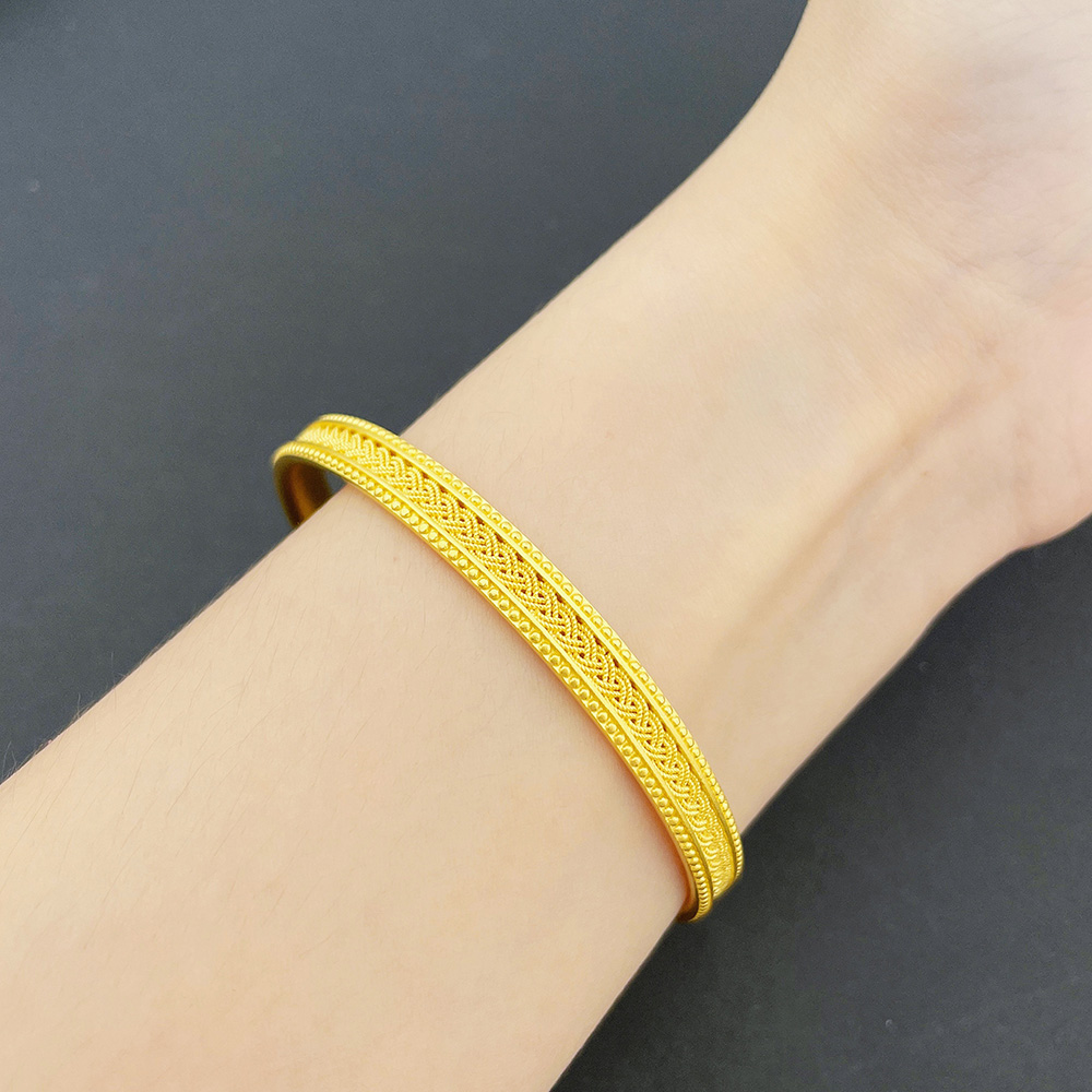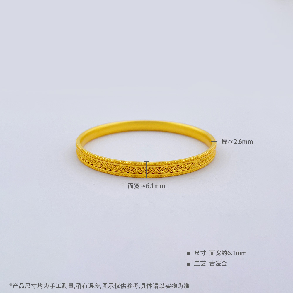 【限时克减150元】足金999.9 古法镂空固口手镯辘珠边交织绳结编织纹手镯(面宽约5.9-6.3mm,厚约2.6mm)(ANWZGFSZ00350)预售产品下单后不退款不退货不换货不补差价