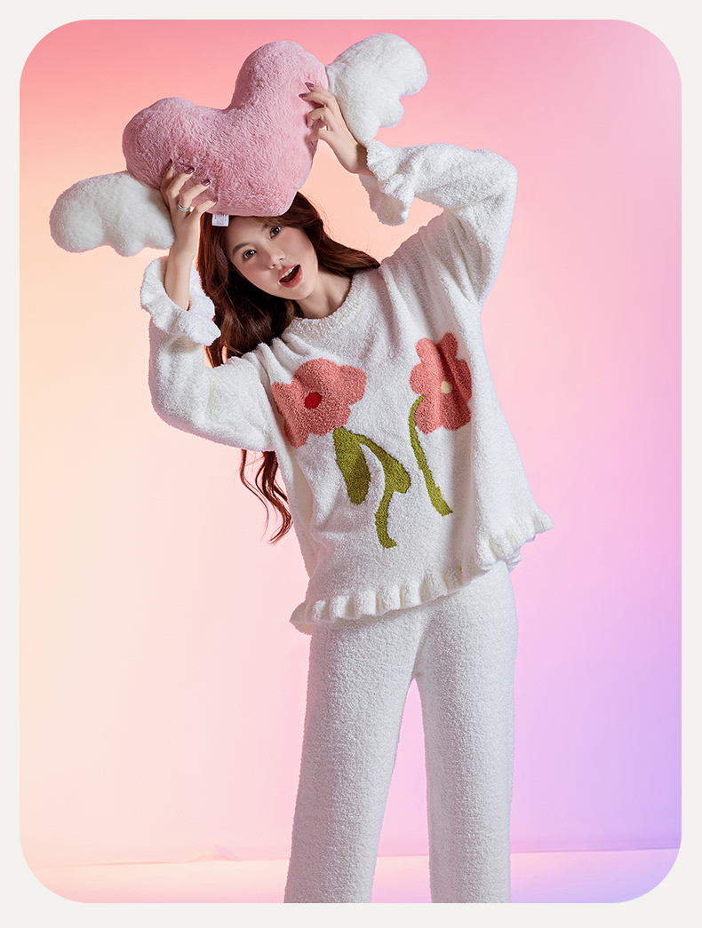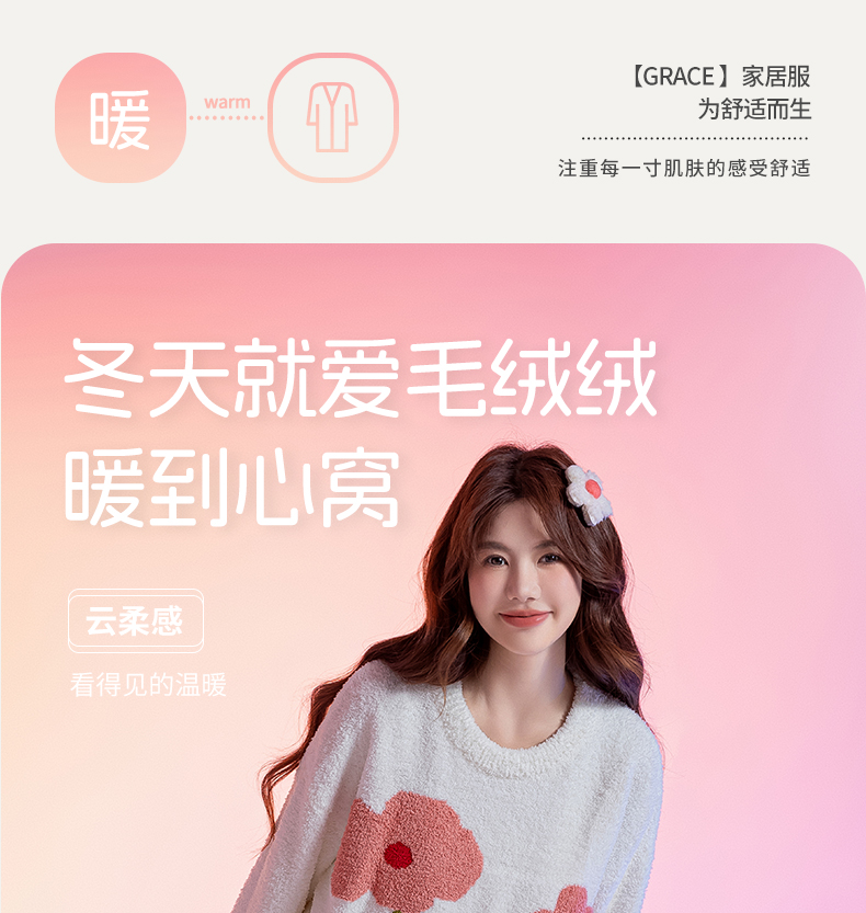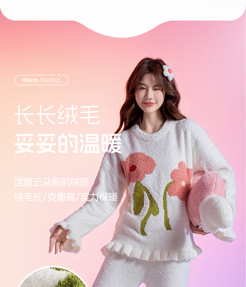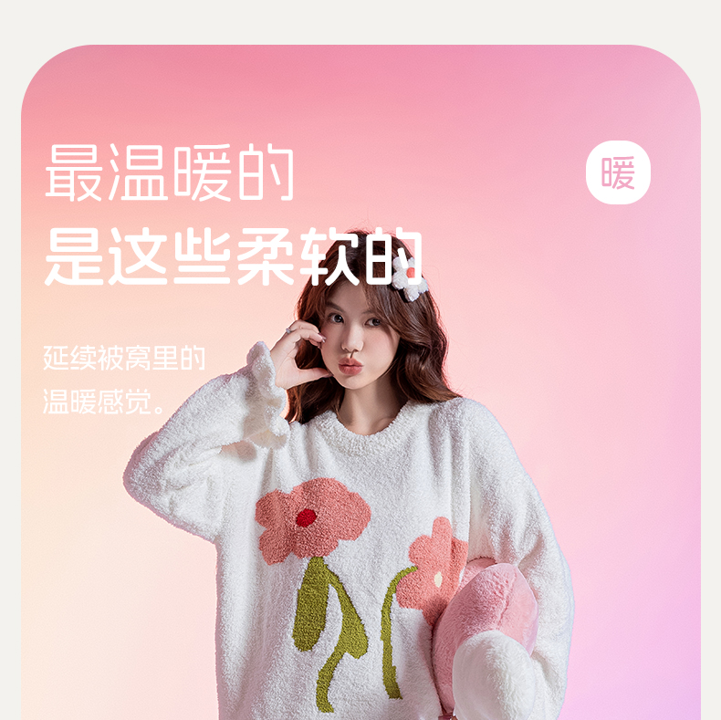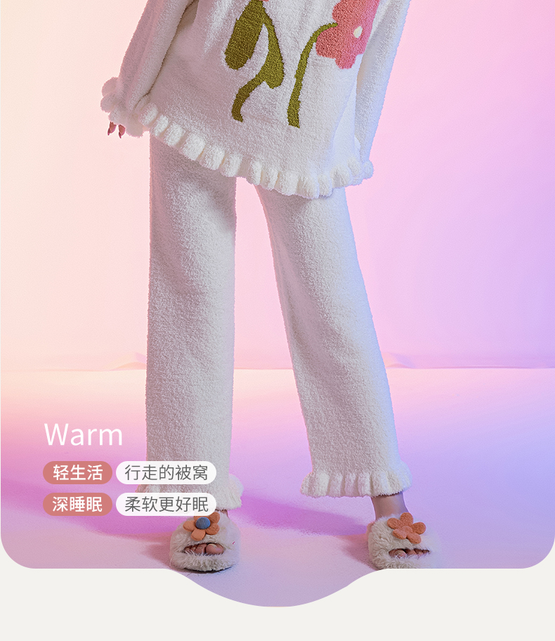 洁丽雅新款半边绒睡衣女冬季珊瑚绒加绒防寒秋冬可外穿家居服套装