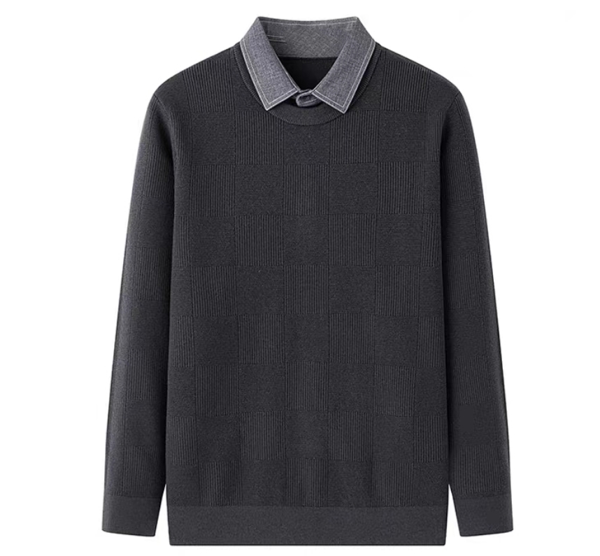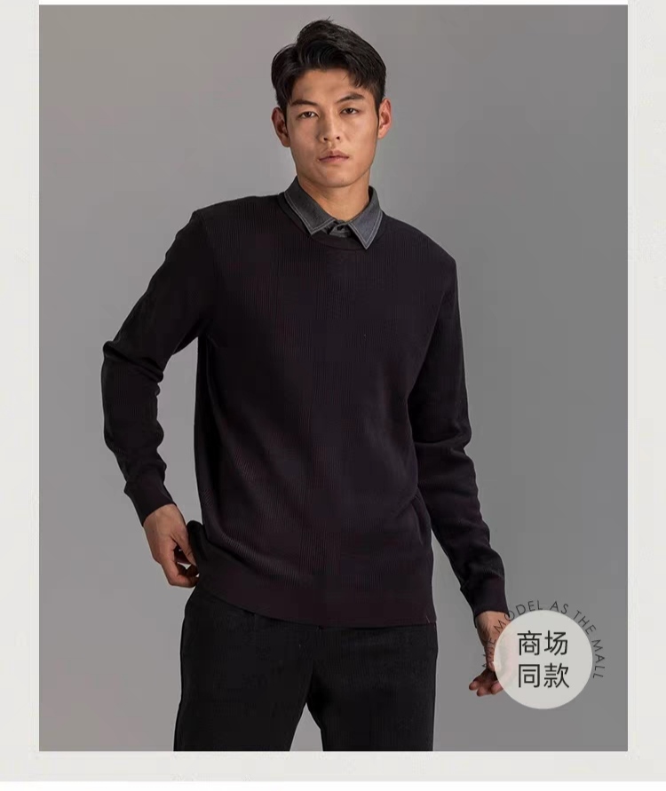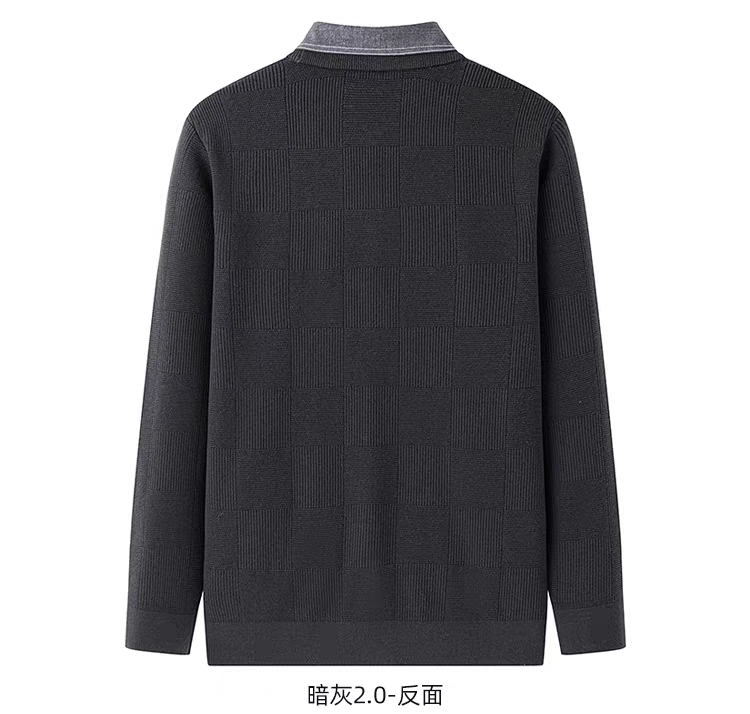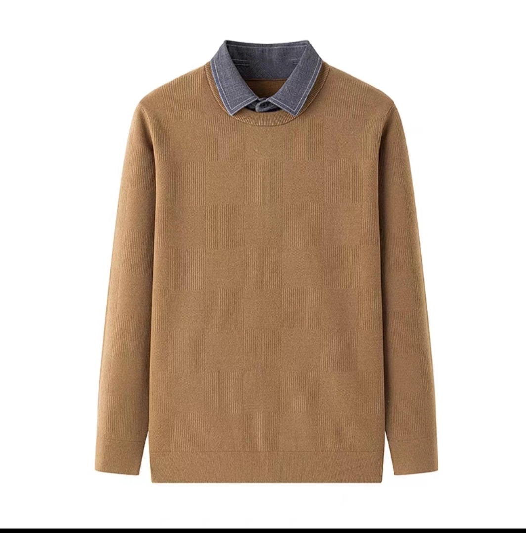 29015# 休闲修身衬衫领套头毛衣2023男冬款保暖纯色针织衫 陀色、军绿