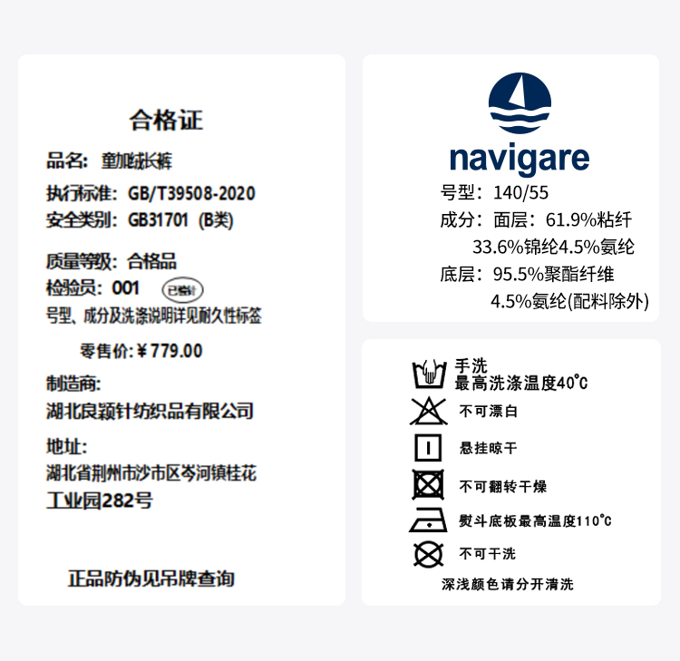 【纳维凯尔】【加绒】【140-170】意大利小帆船女童加绒保暖长裤