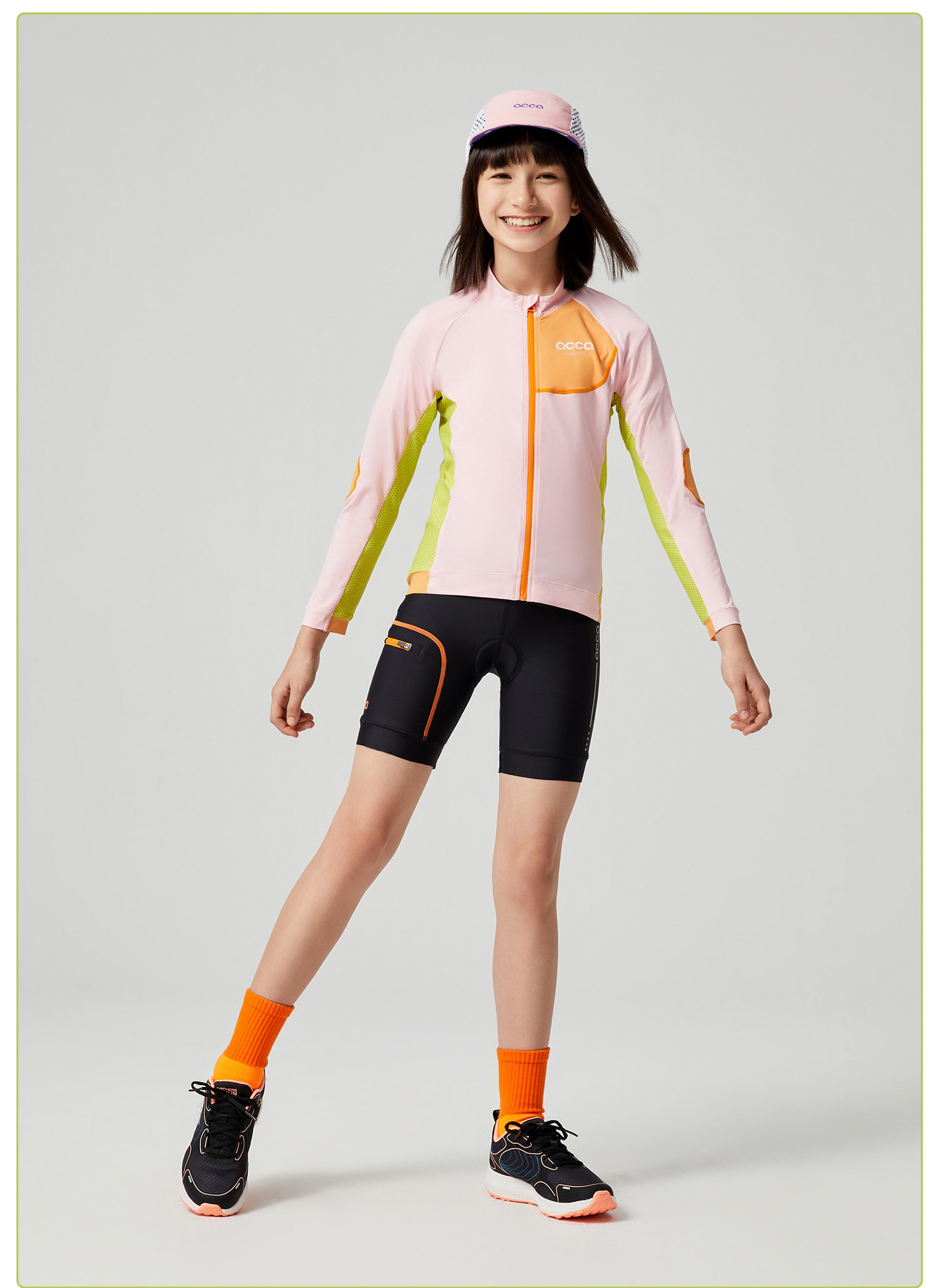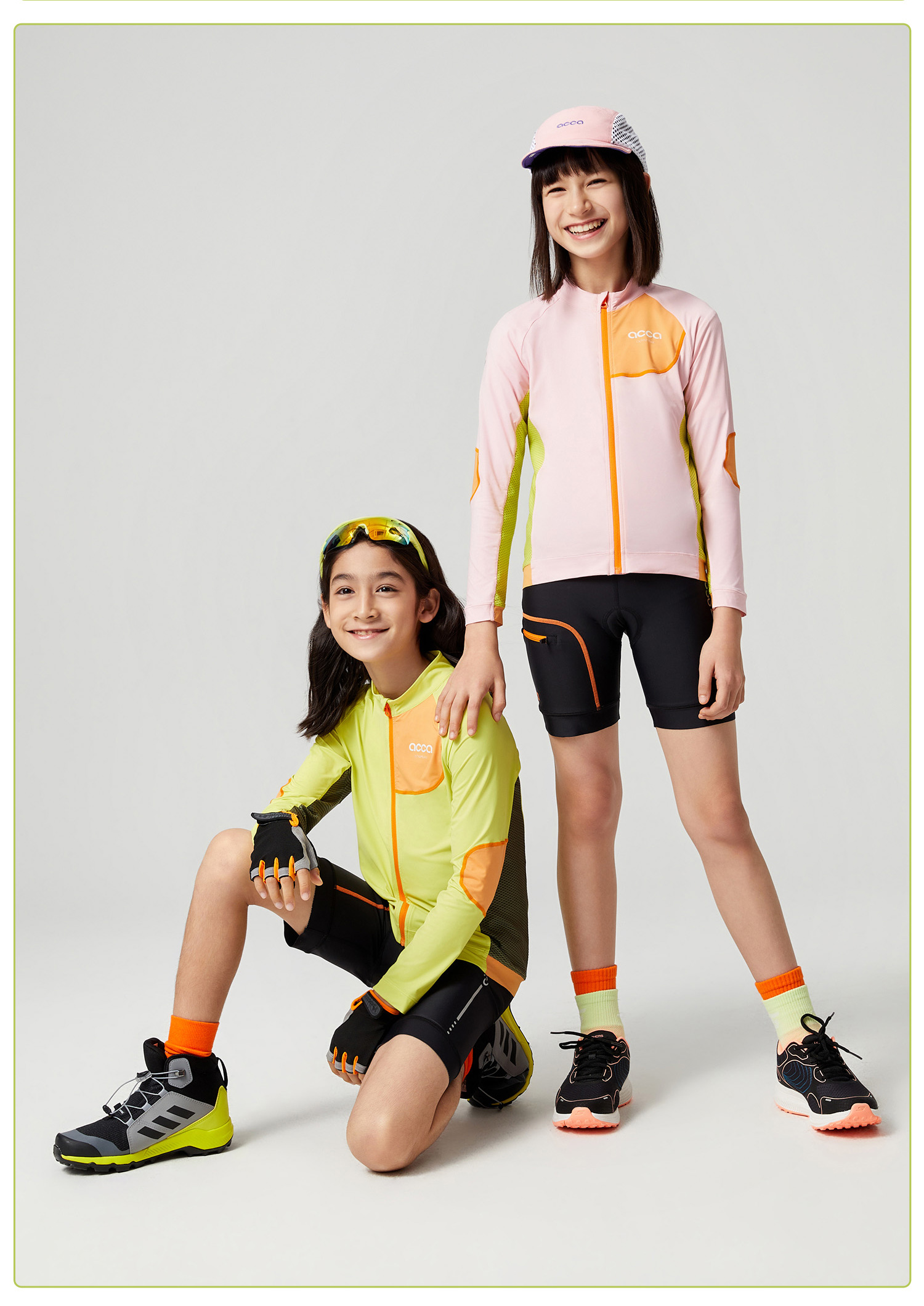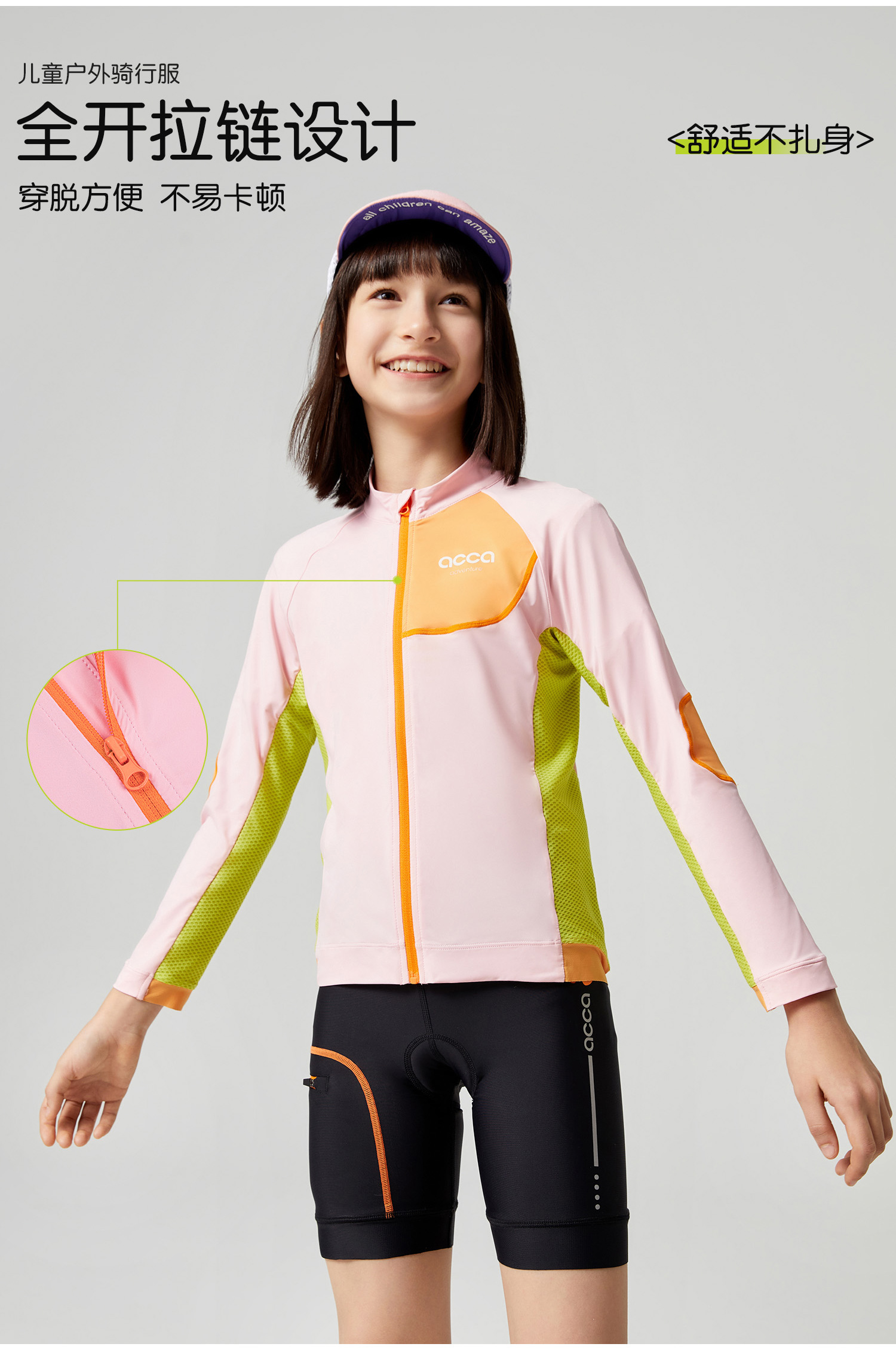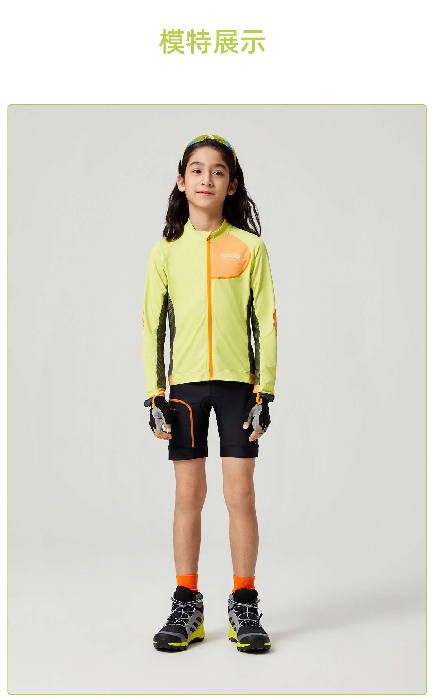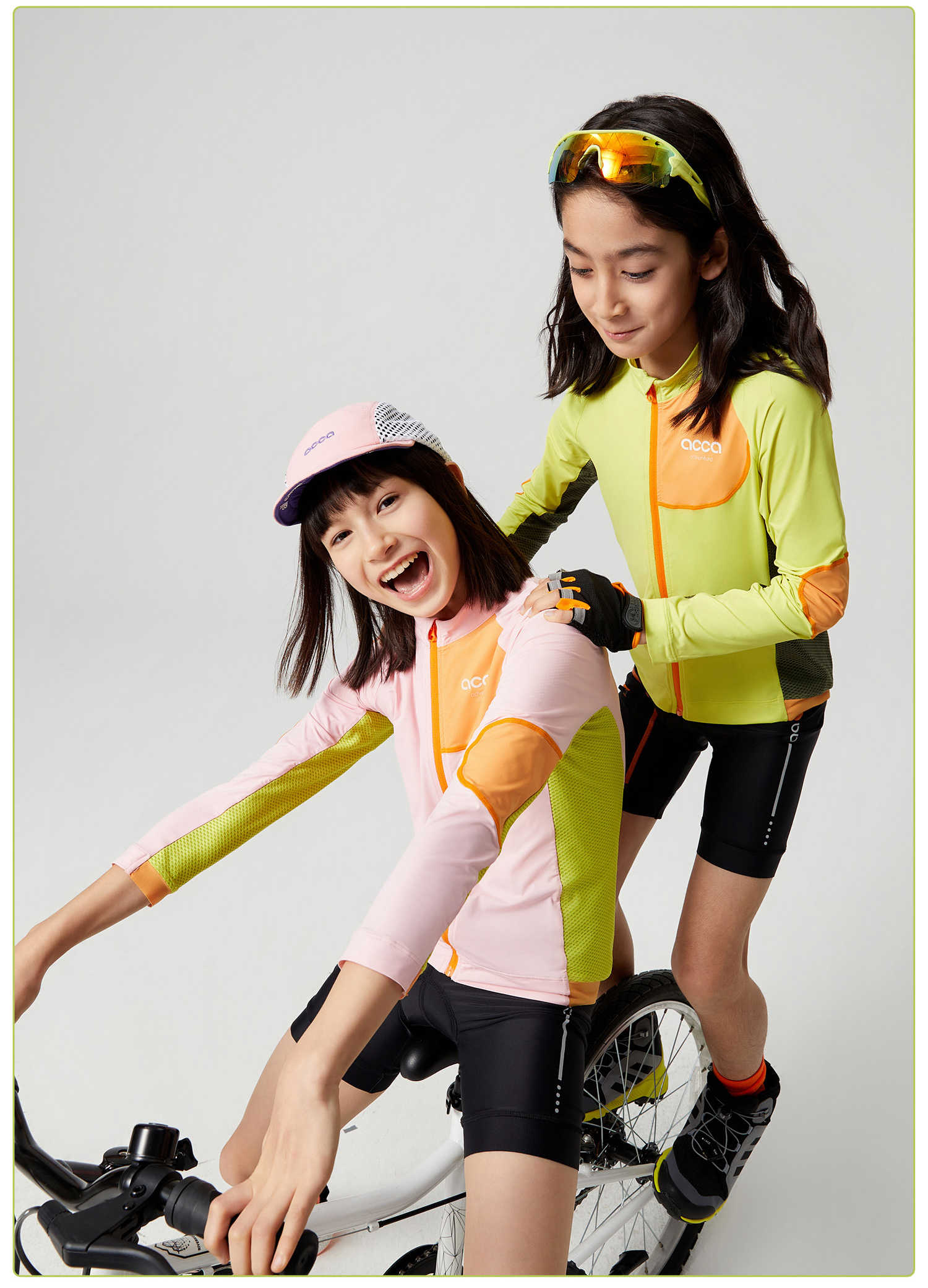 acca男女儿童自行车骑行服强力回弹全开拉链吸湿排汗夜间反光印花