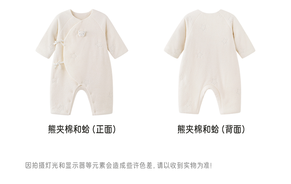 英氏婴儿连体衣夹棉爬服保暖秋冬新款睡衣可爱熊哈衣YLHAJ3R028A
