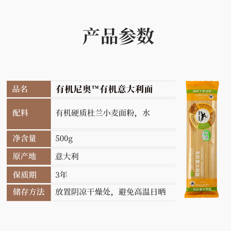 有机尼奥有机意大利面500g/袋