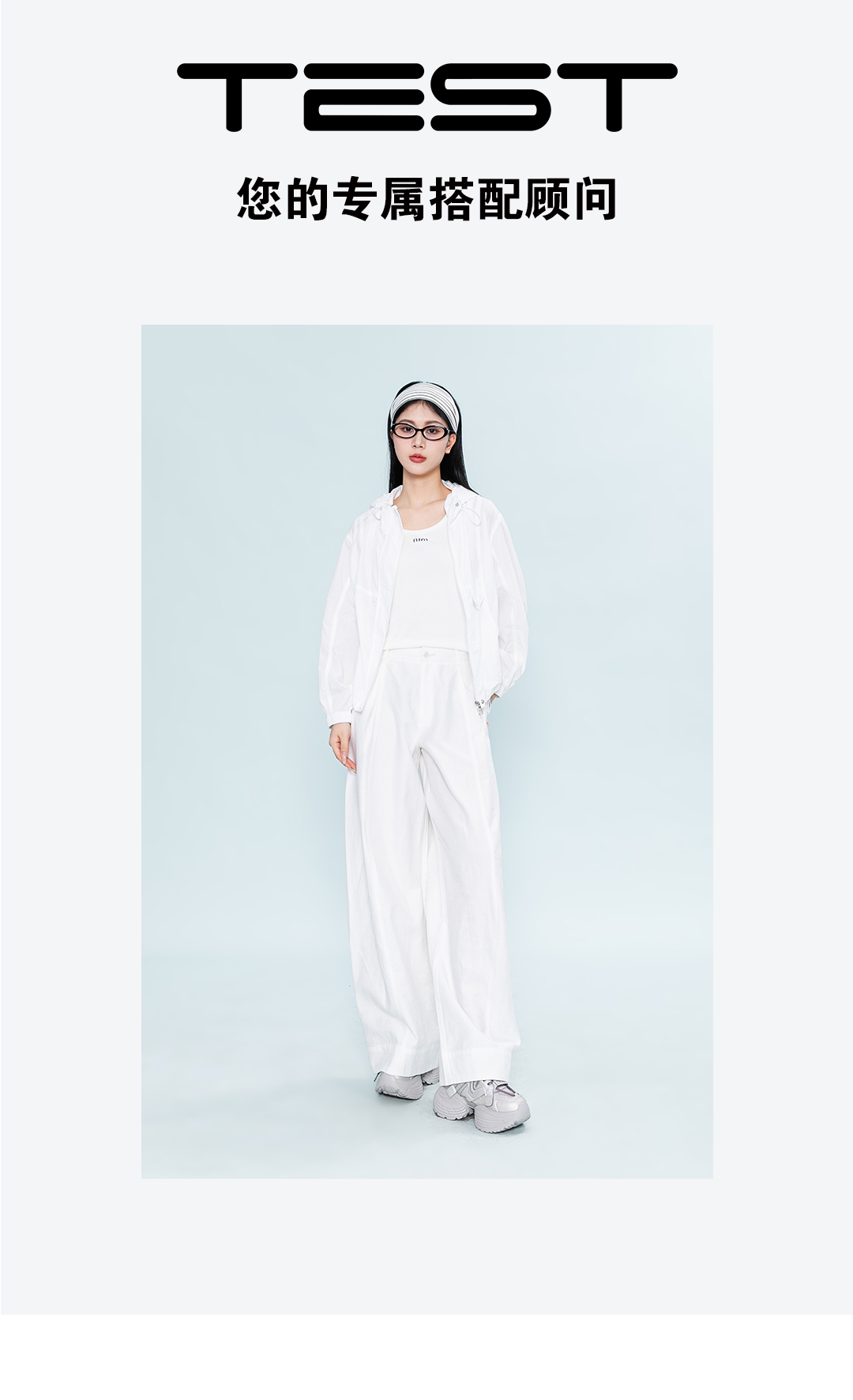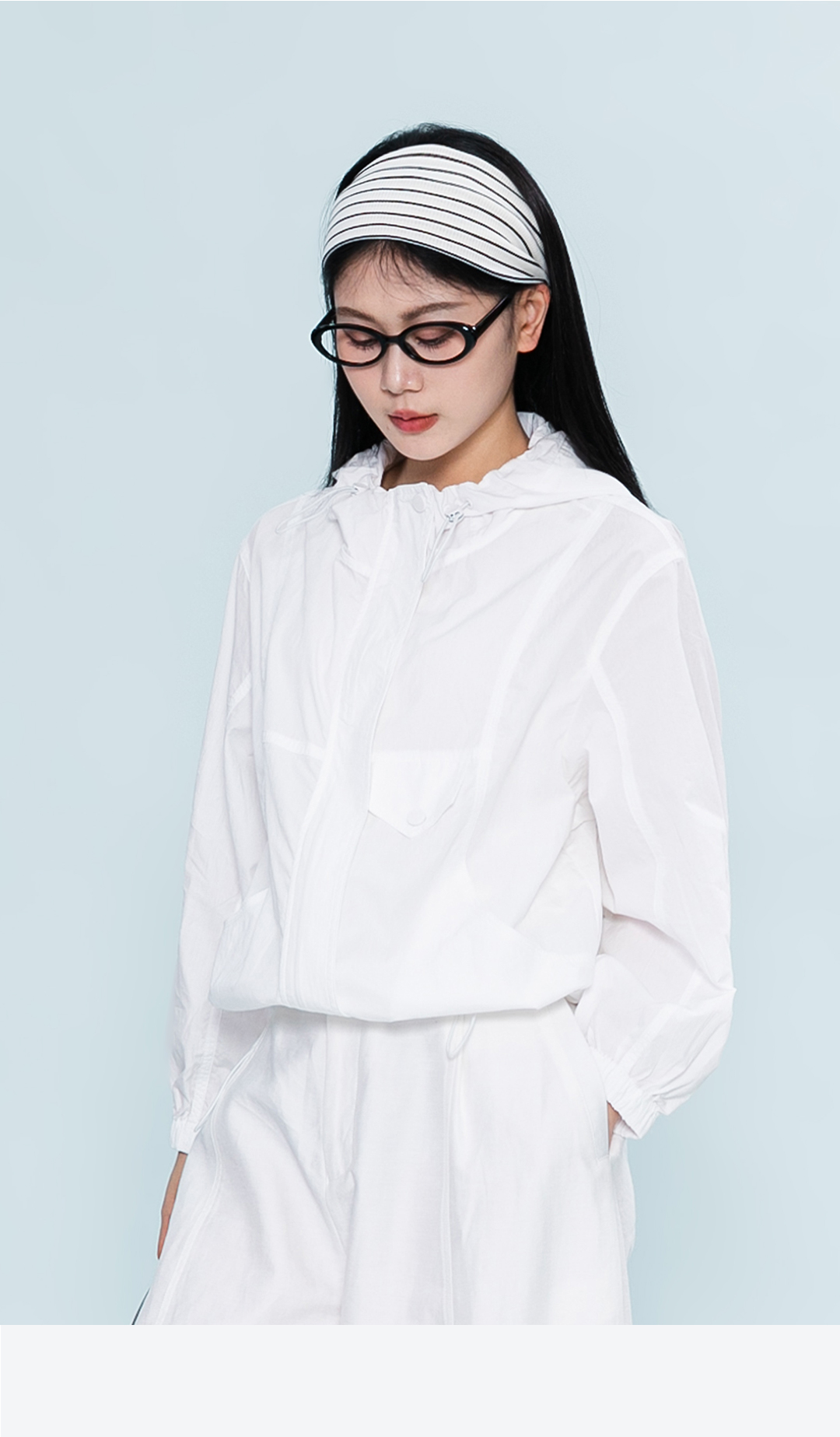 夏上新休闲运动风白色连帽抽绳大口袋轻薄长袖防晒衣2262003