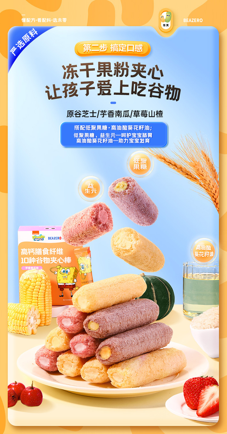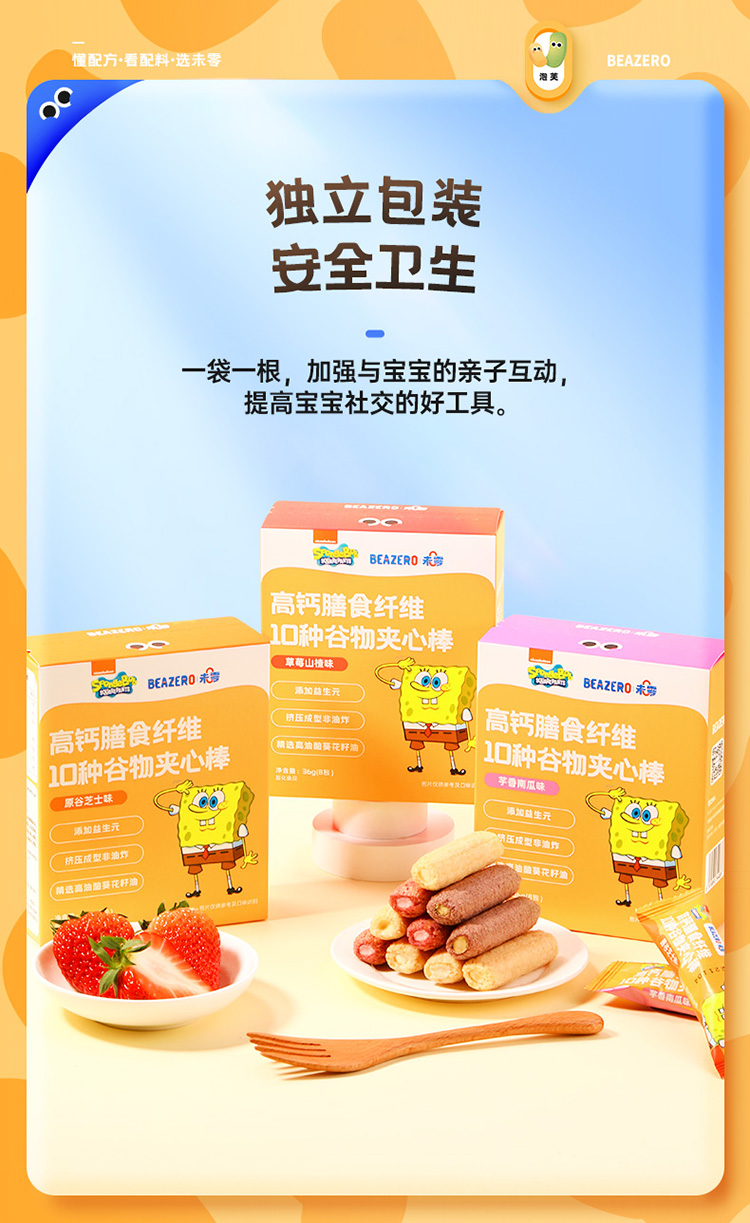 【未零】10种谷物夹心棒36g起 儿童泡芙营养零食 海绵宝宝