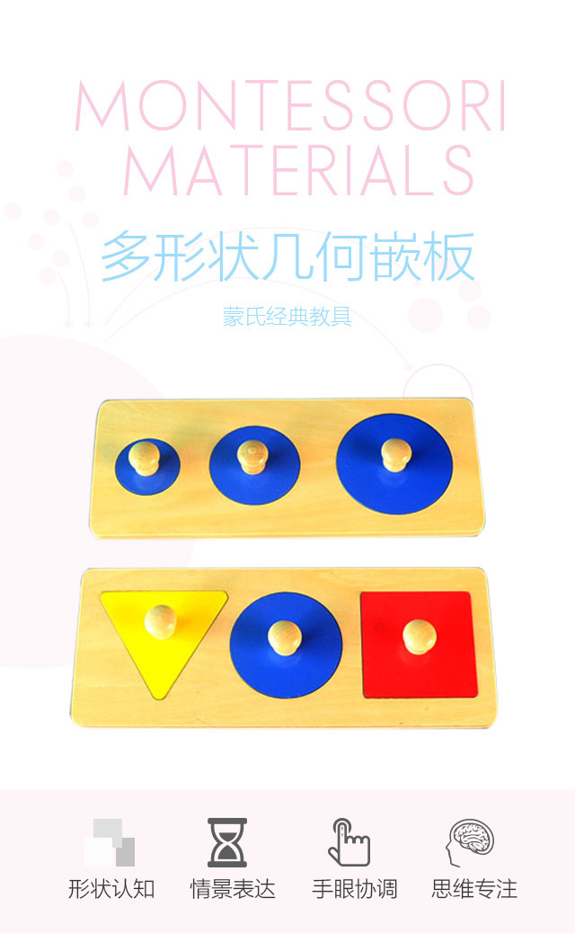认识四种图形并大小圆,以及锻炼手眼协调能力,手臂肌肉力量。
