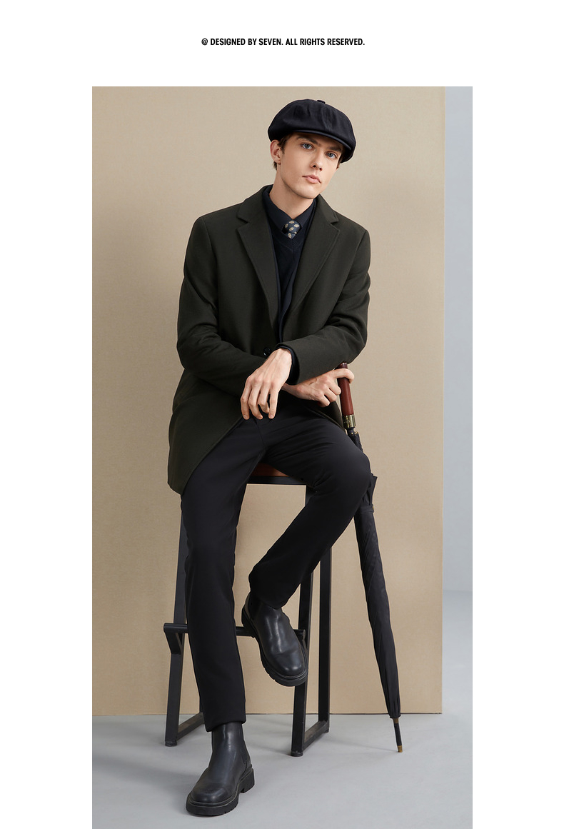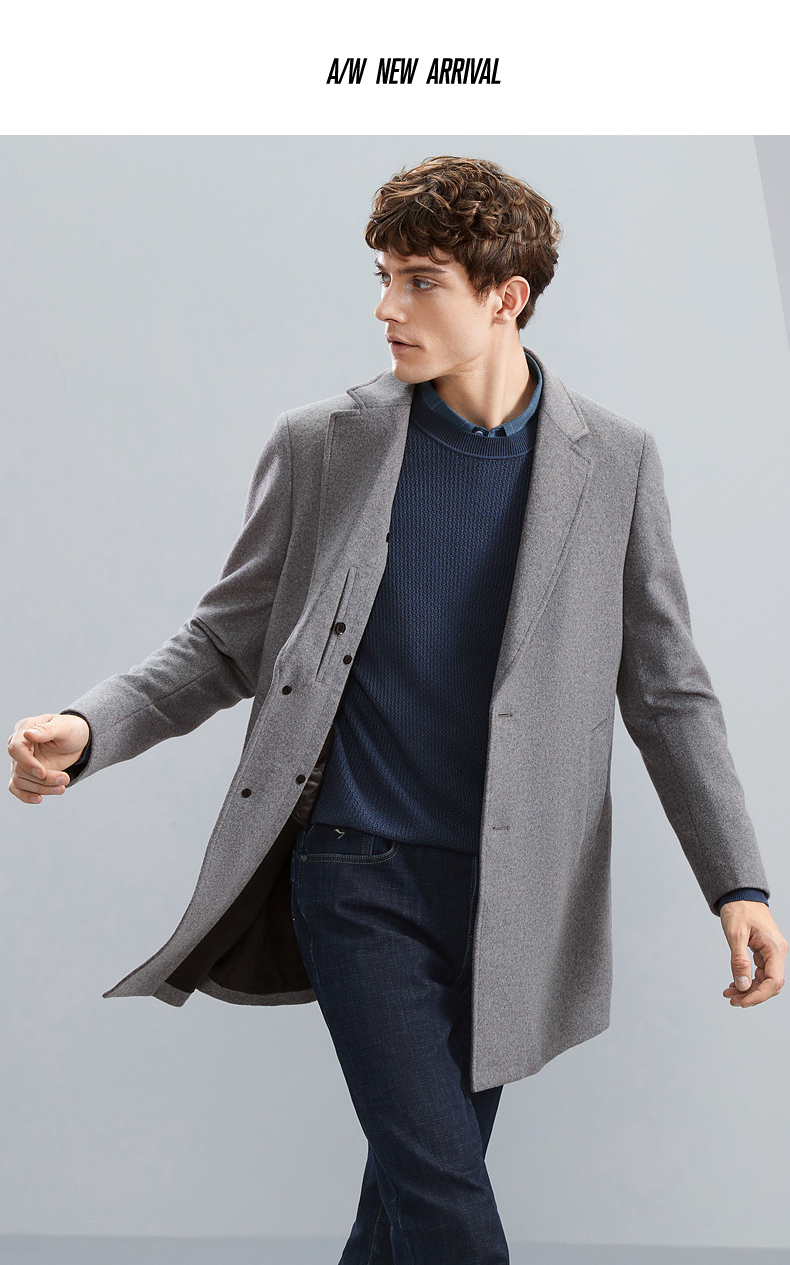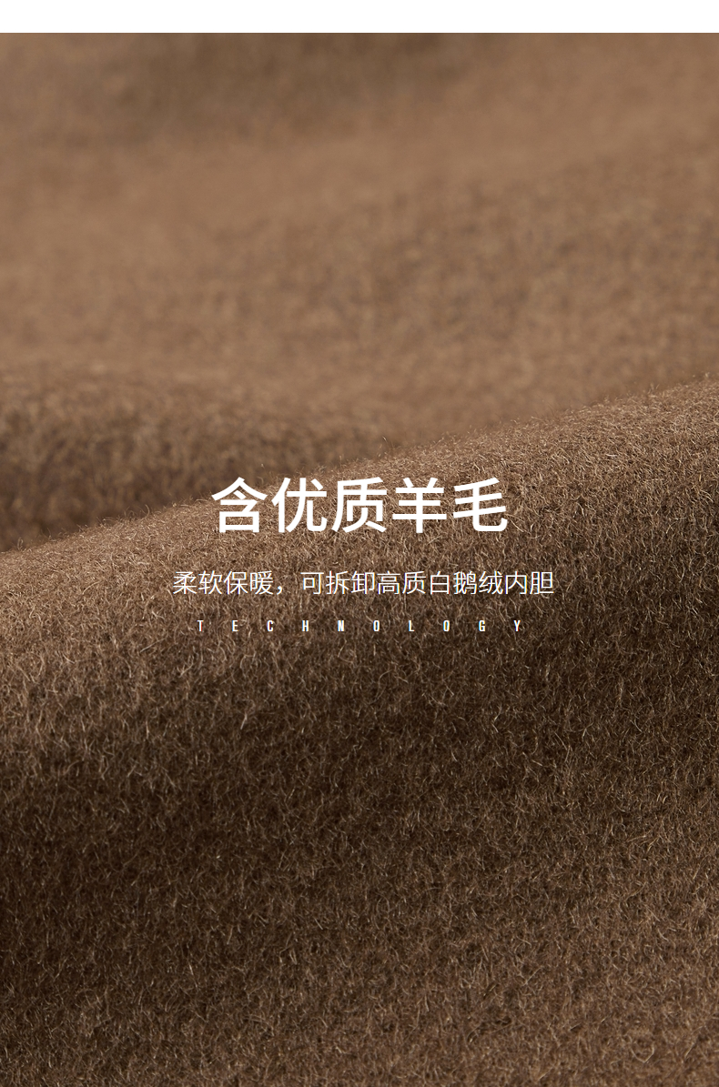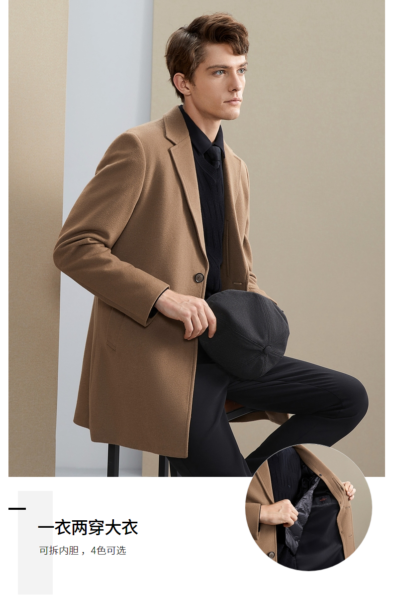 【一衣两穿】柒牌平驳领毛呢大衣男可脱卸鹅绒内胆中长款保暖外套 125D70220