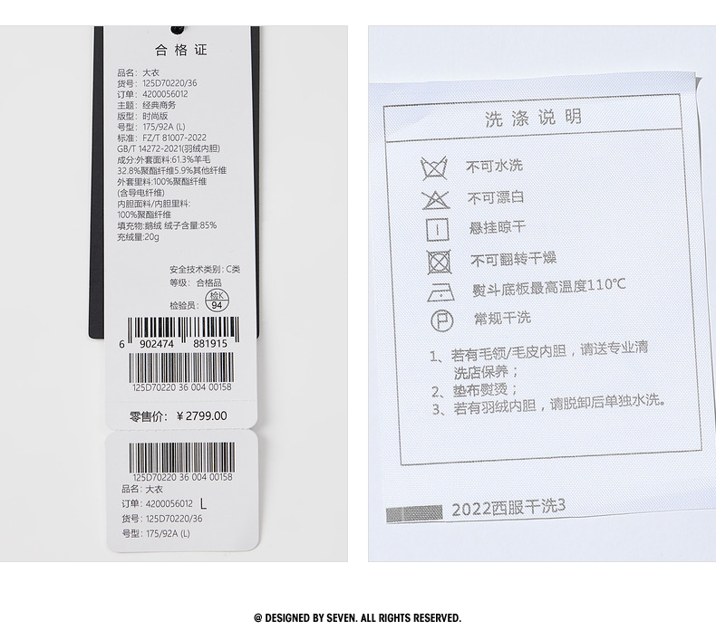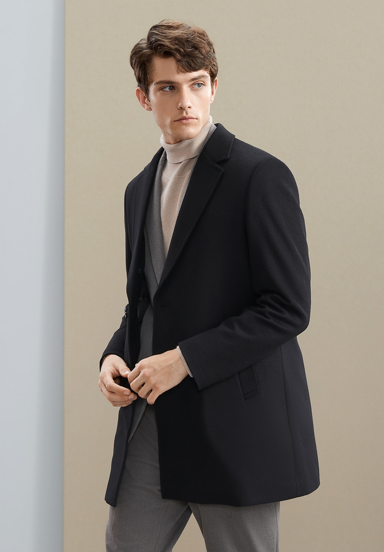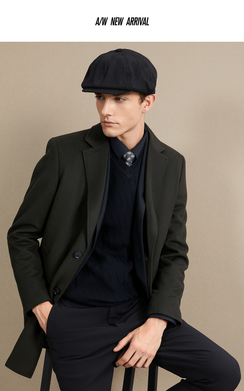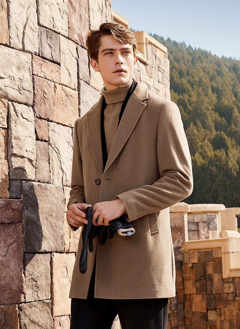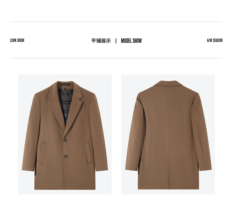 【一衣两穿】柒牌平驳领毛呢大衣男可脱卸鹅绒内胆中长款保暖外套 125D70220