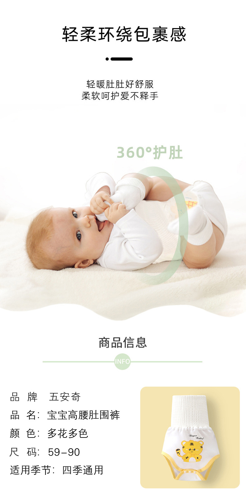 婴儿纯棉肚围裤春秋夏款男女宝宝护肚脐围新生儿防着凉高腰裹肚子