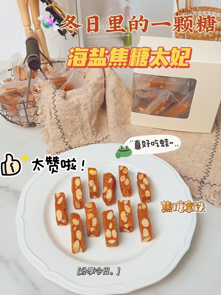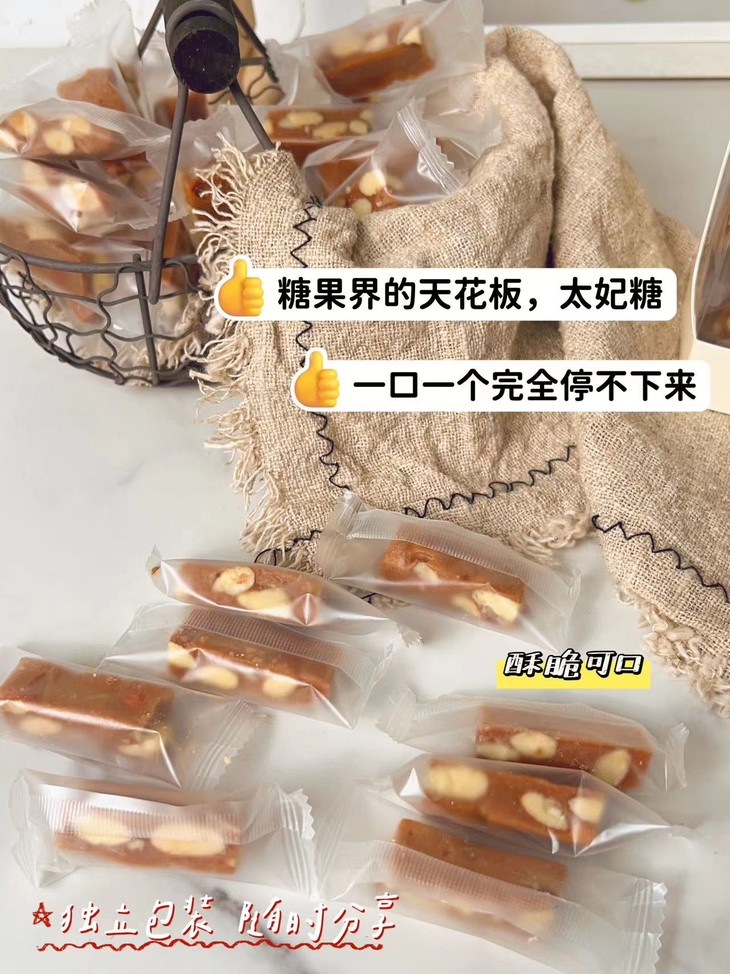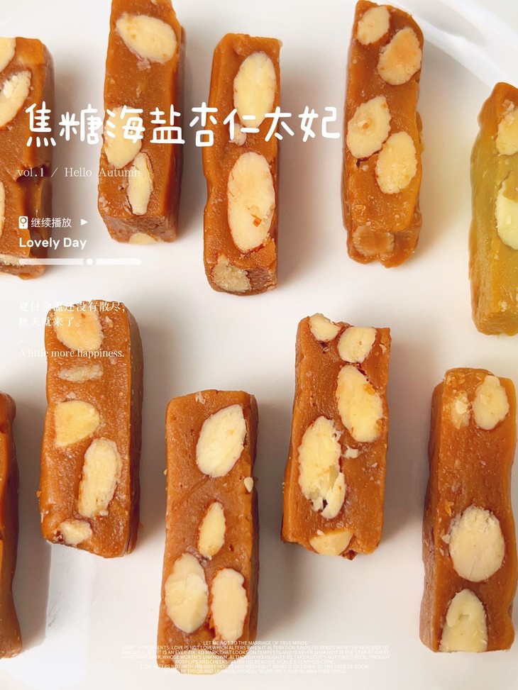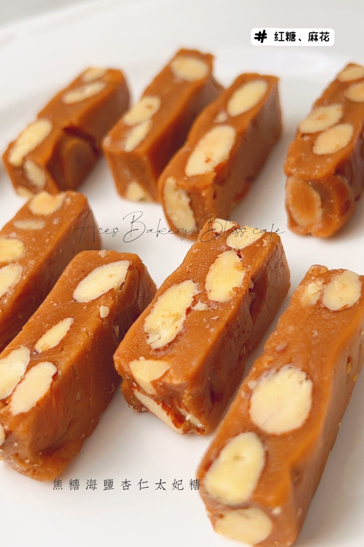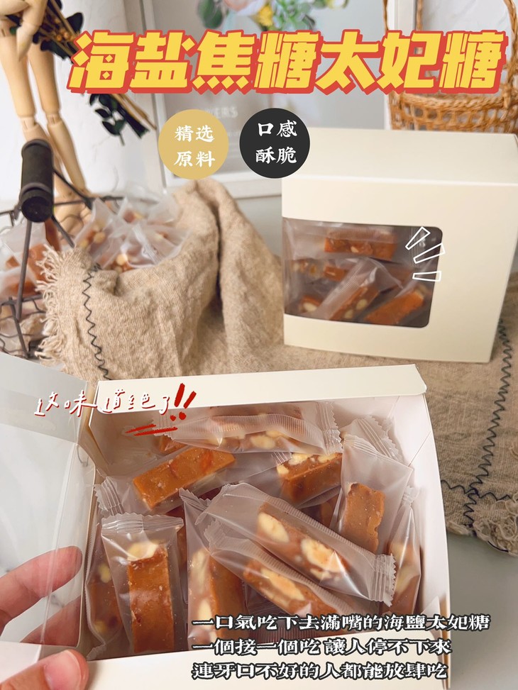 【海盐太妃杏仁酥糖】进口总统黄油和进口铁塔淡奶油熬制而成,咬着特别酥脆 ,不腻不粘牙,吃起来像饼干一样过瘾。用料超级足,每款都有大颗大颗的杏仁果粒,吃起来超满足!