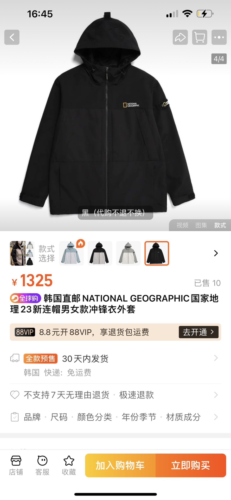 清仓库不退换 国家地理AUGUSTINE男女同款轻户外舒适防风防水拼色冲锋衣 韩国订单