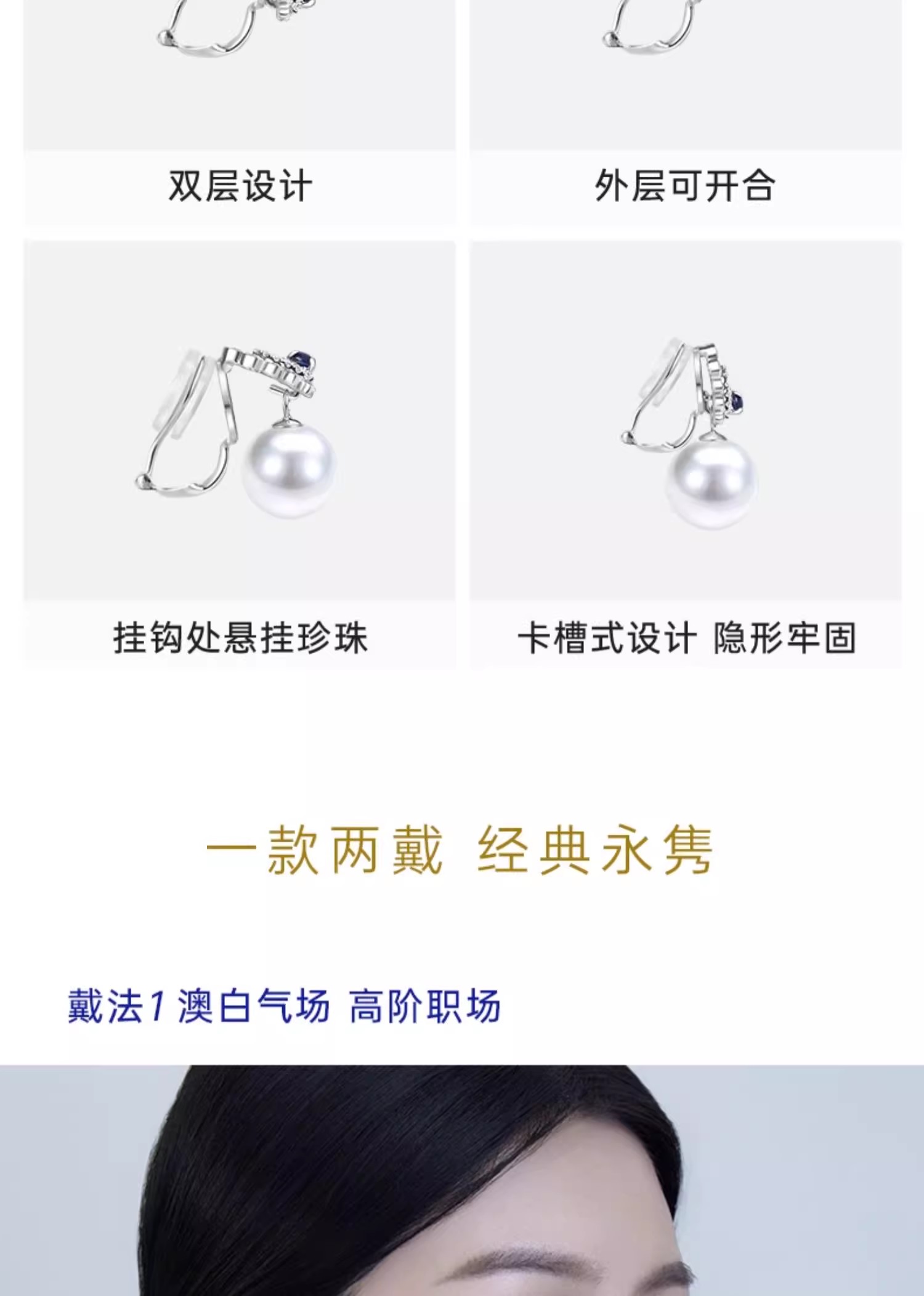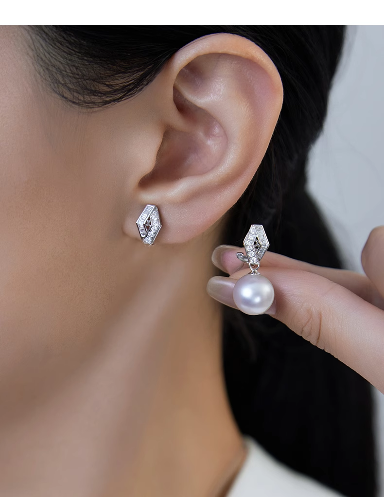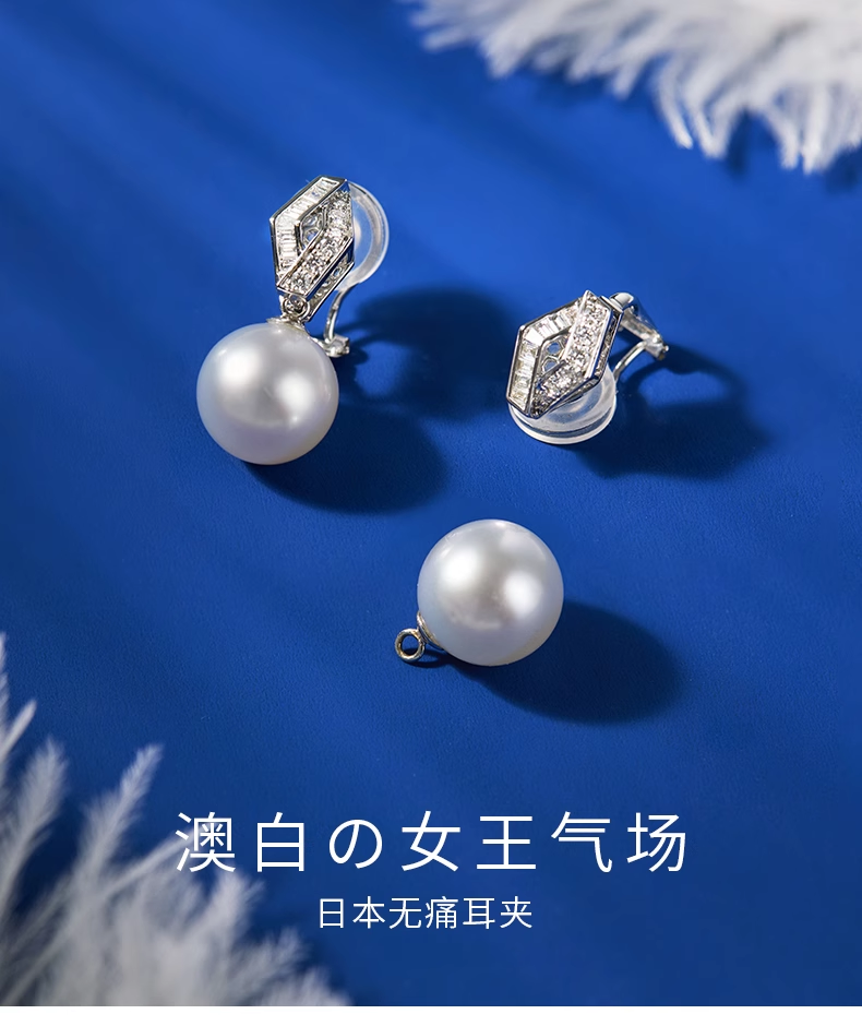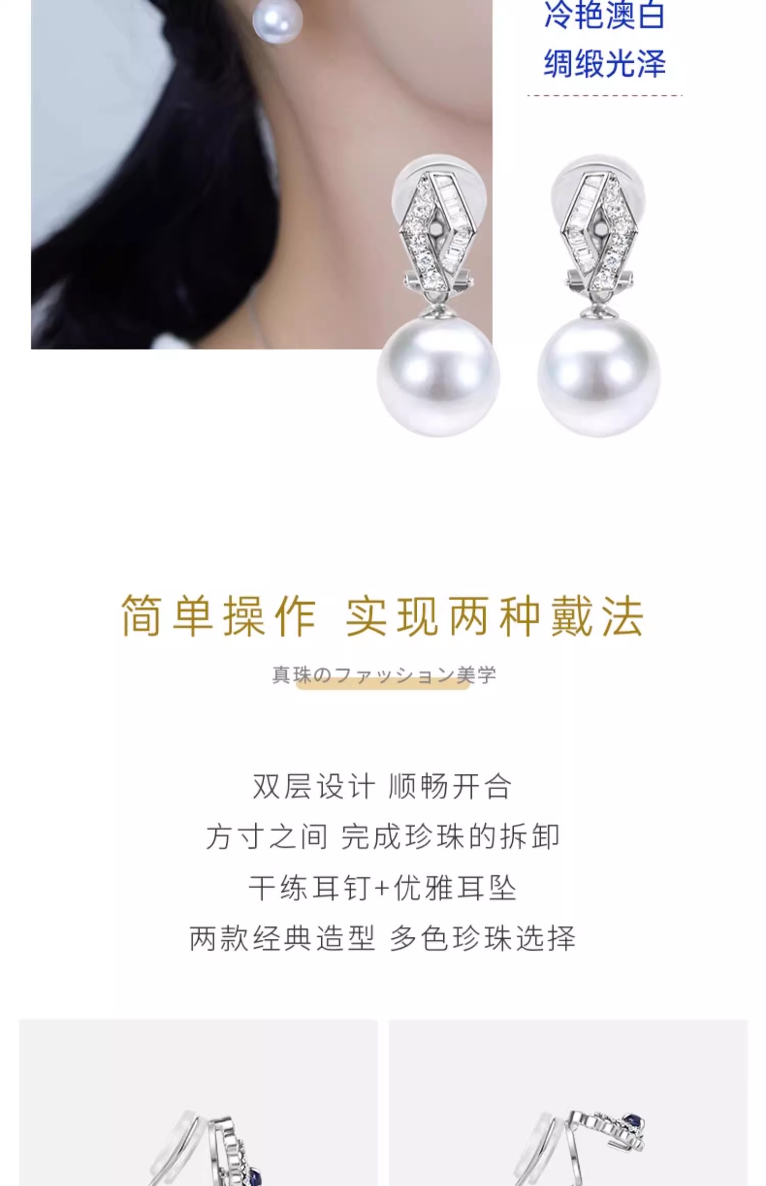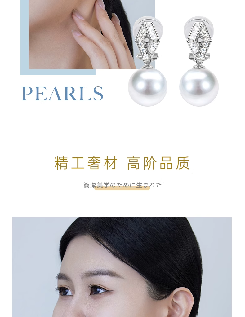 【天猫同款】18k金两戴款钻石珍珠耳夹 菱霄