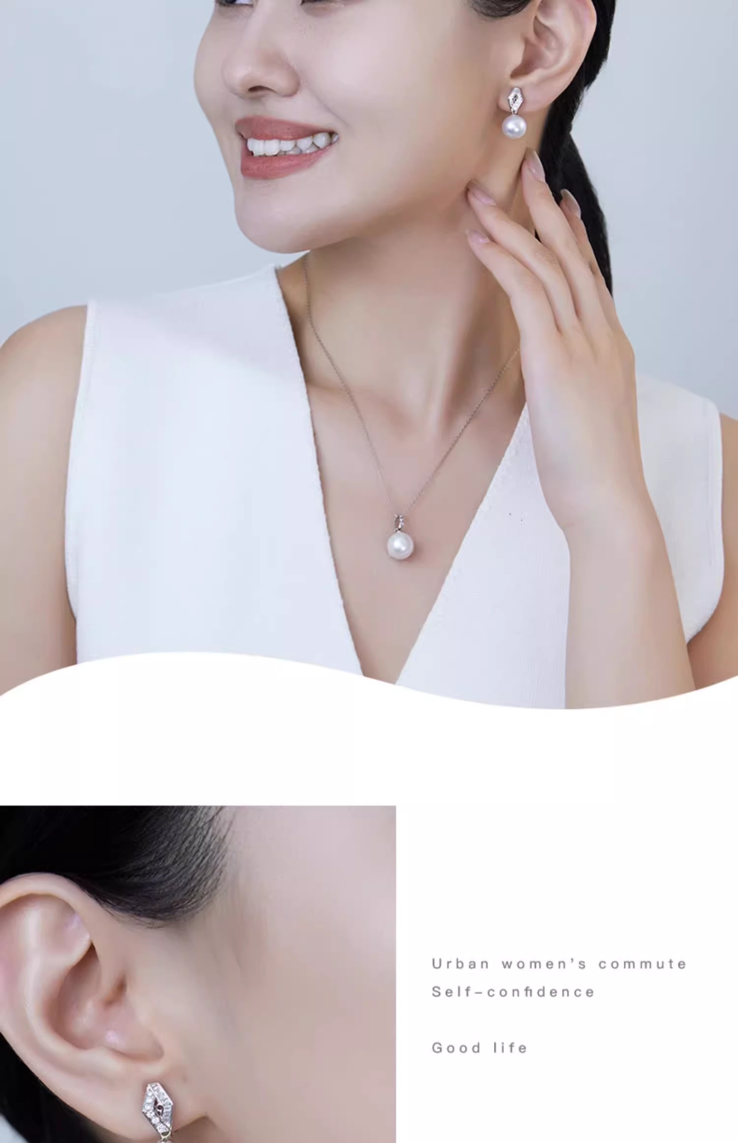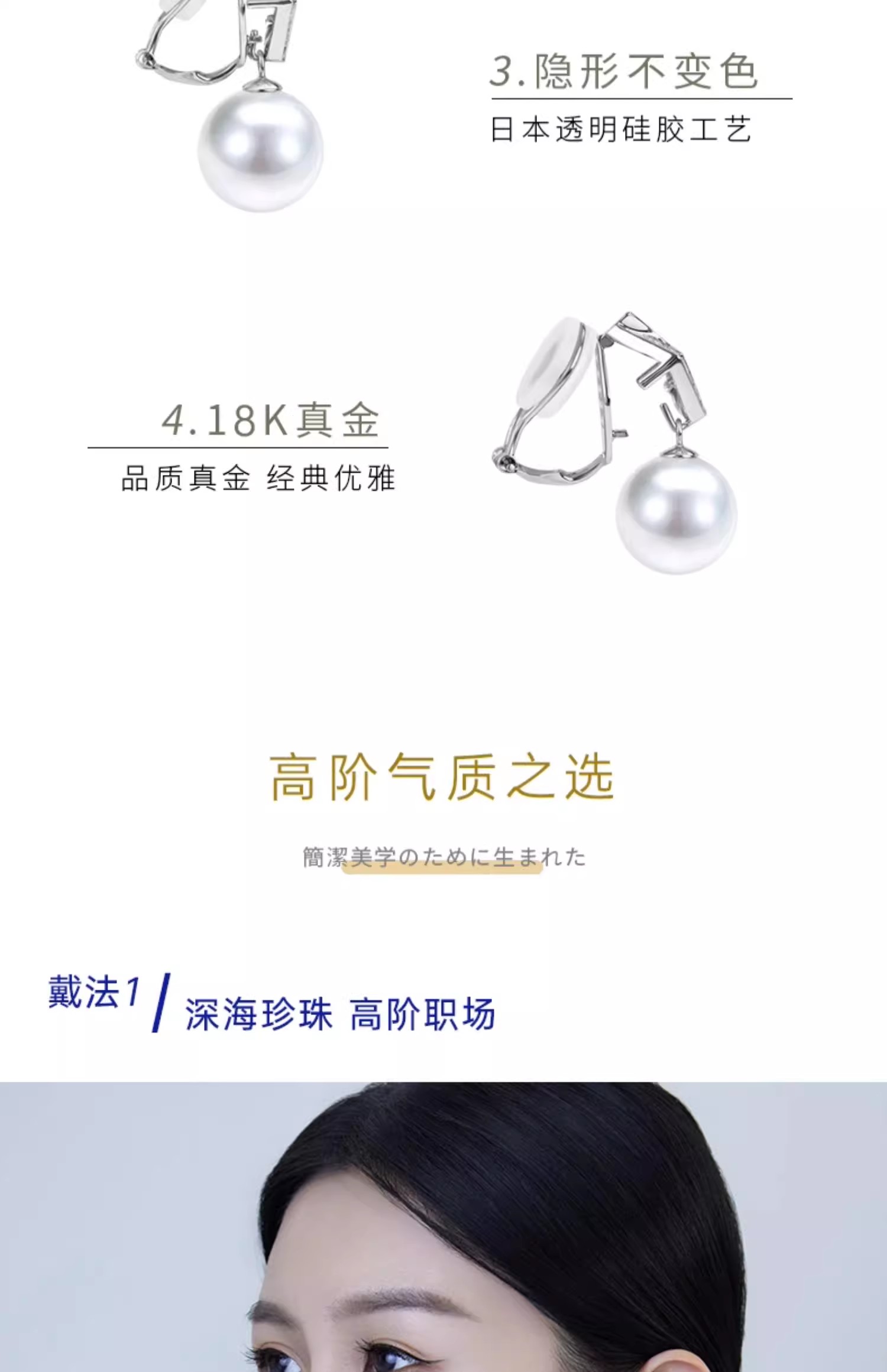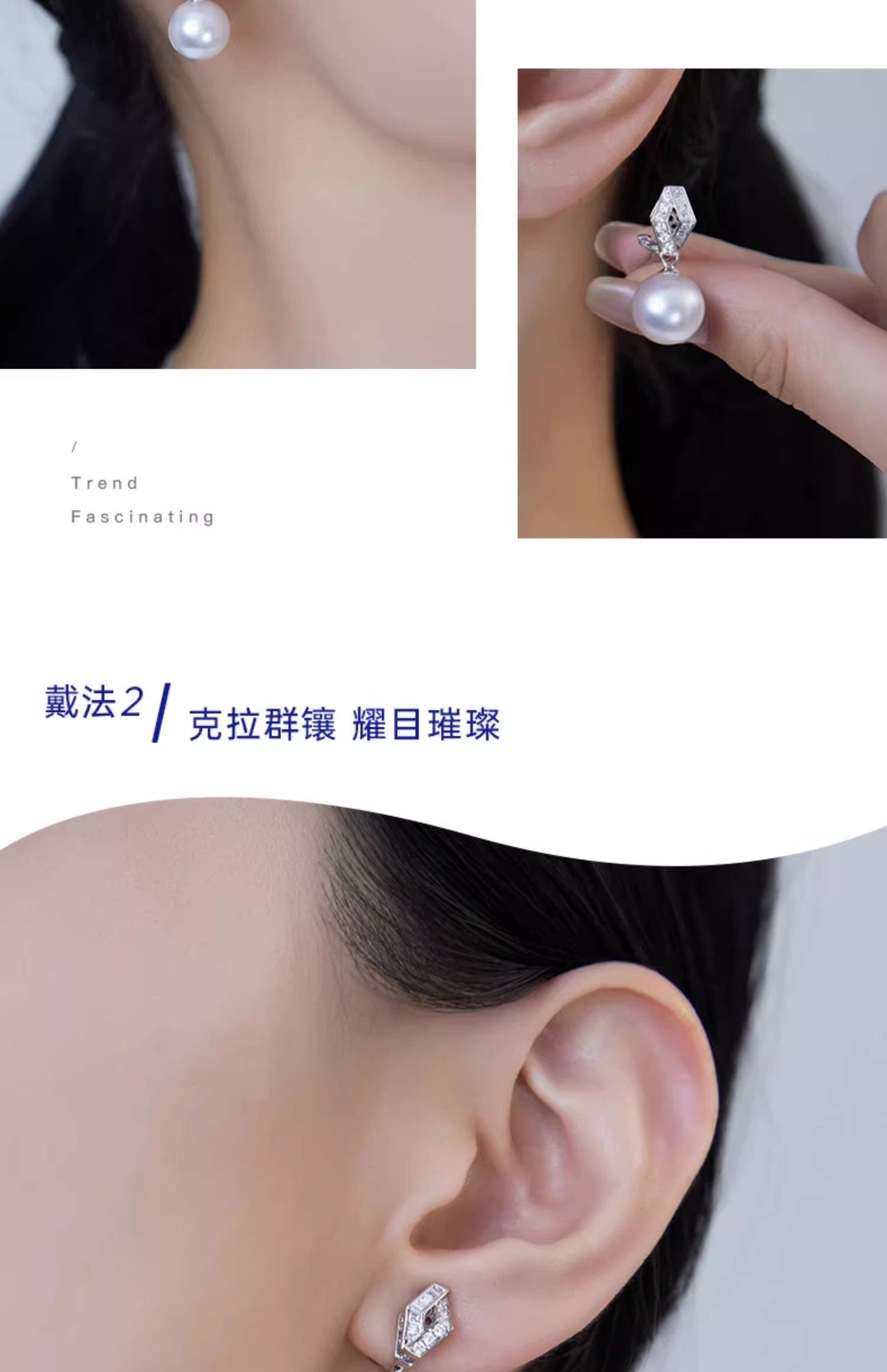 【天猫同款】18k金两戴款钻石珍珠耳夹 菱霄