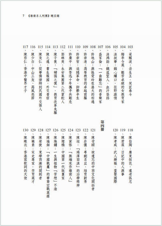 《嶺南名人列傳》共五冊,囊括各行各業文化名人206位,凡百萬餘言。其間凡有一德之足式,或有一藝之堪賞,或有一言之可傳,則盡可能地收錄,諸如洋務先鋒、留美幼童、報業先導、西醫人才、體壇健將、嶺南畫派、粵劇名伶、史學大家、外交長才、文學作家、女權先聲、影壇*星等等,是喜歡歷史的讀者案頭需備的工具書,亦是各大圖書館值得典藏的工具書。