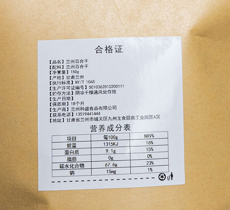 甘肃兰州百合干 150g
