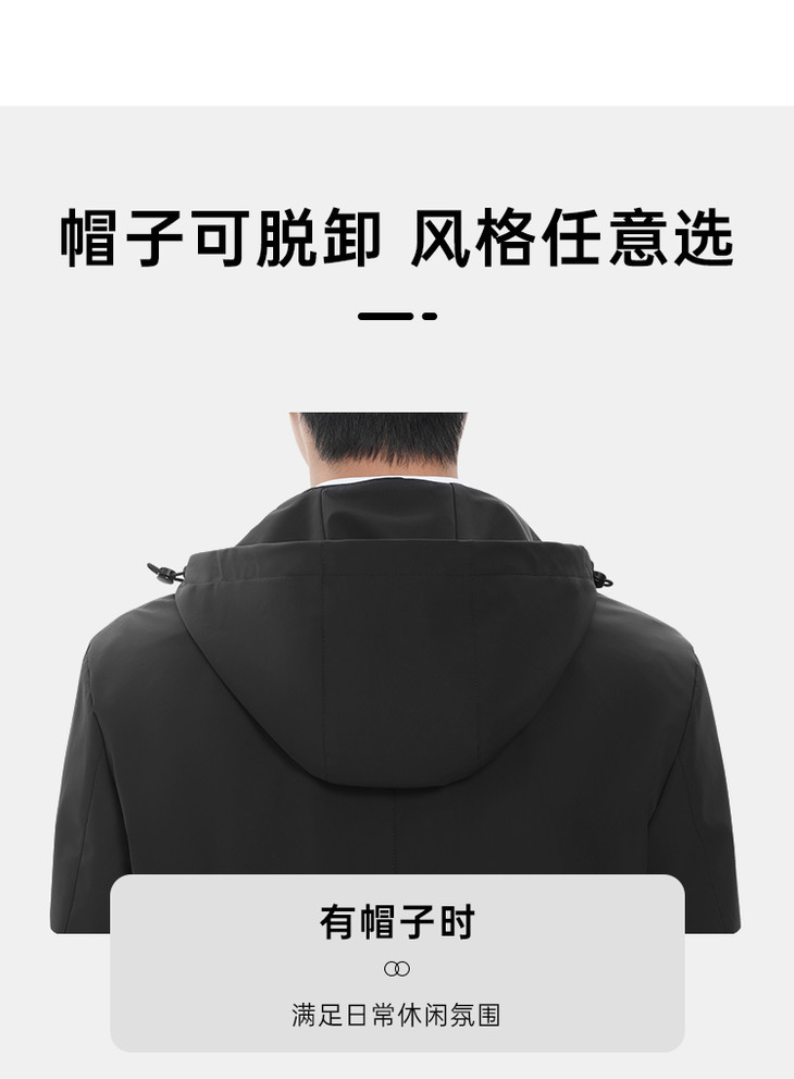 【实付满399送保温杯】【三防风衣外套】防水防污长袖外套可脱卸连帽通勤服