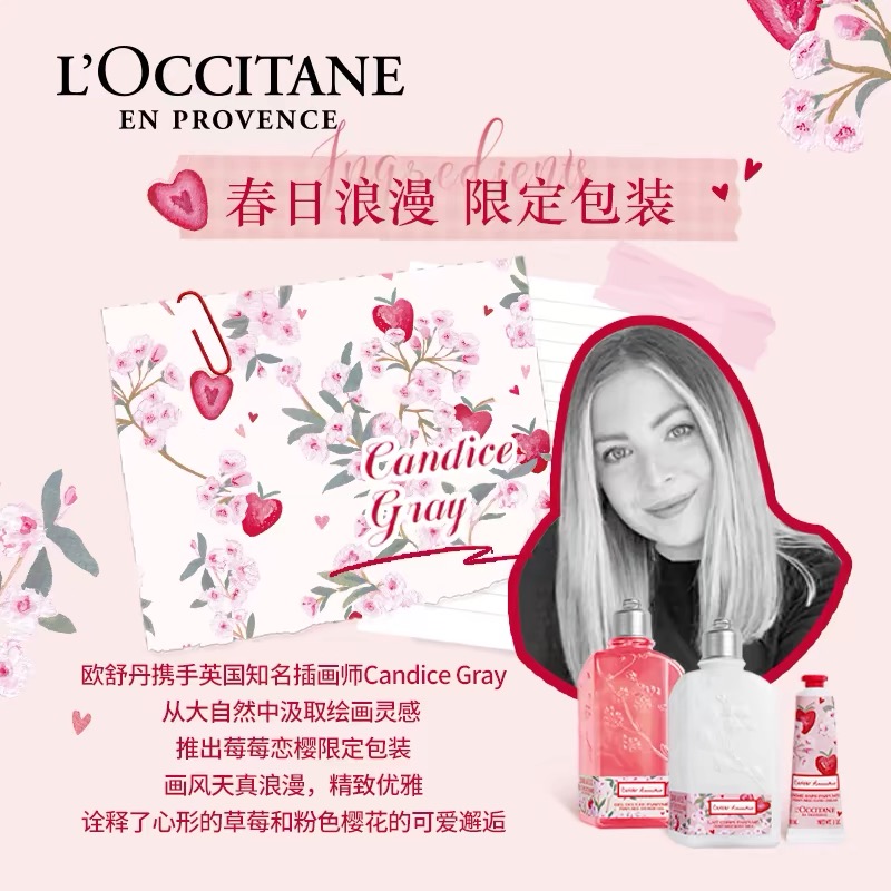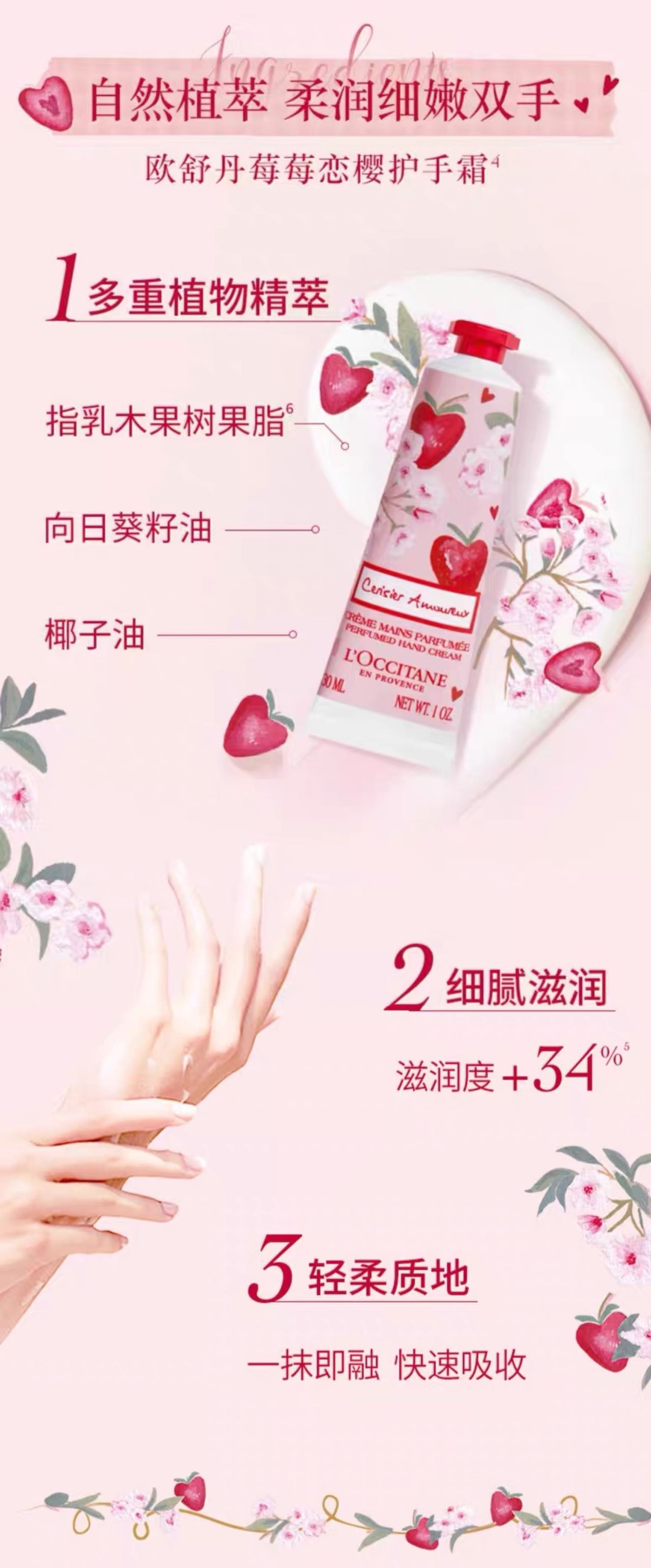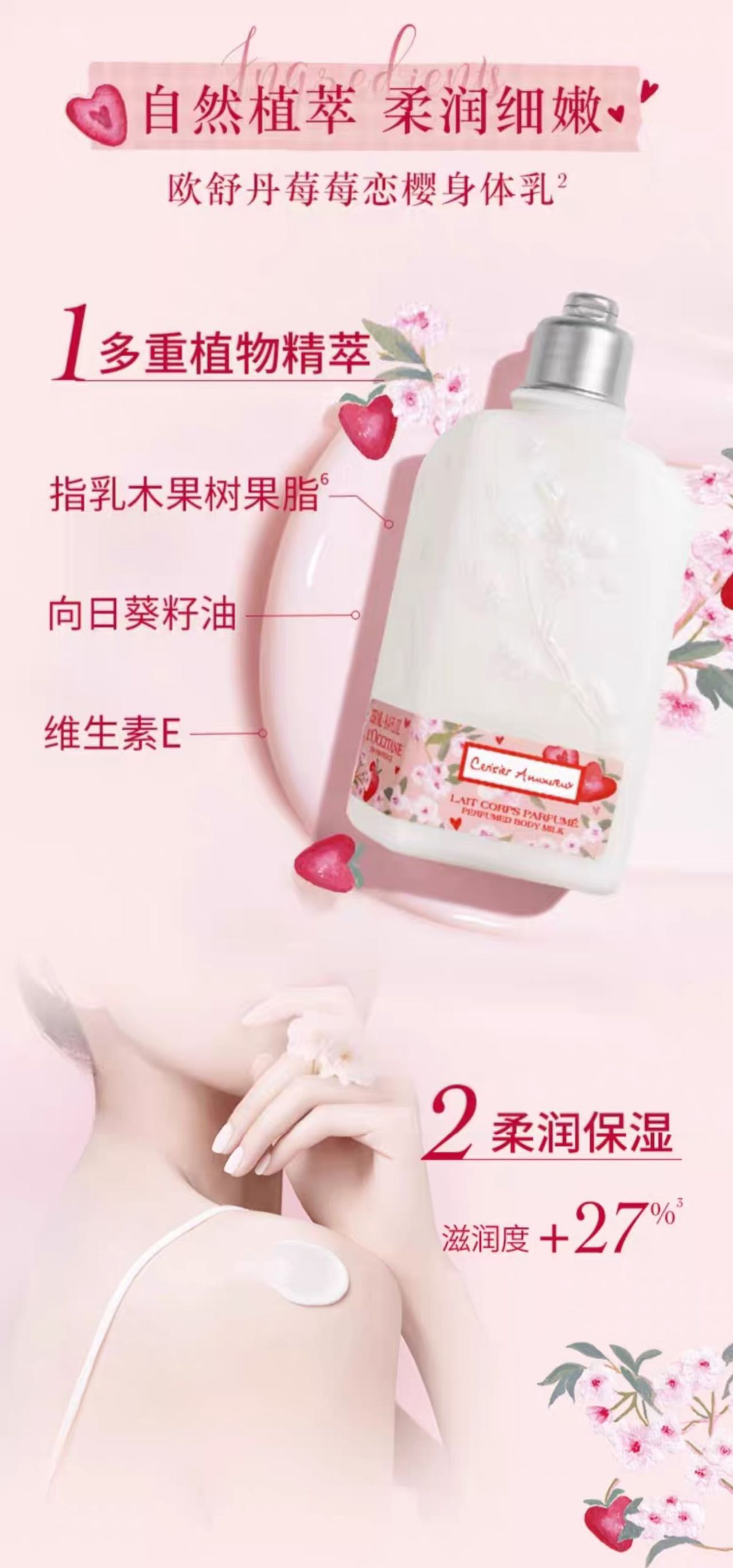 【品牌授权】欧舒丹莓莓恋樱香氛套装 赵露思同款 沐浴露250ml、润肤乳250ml、护手霜30ml 元气少女香