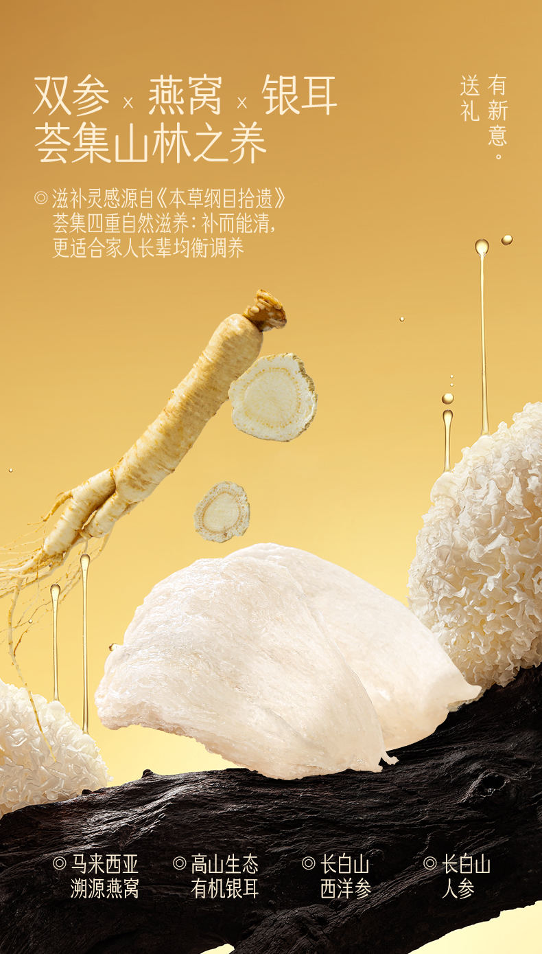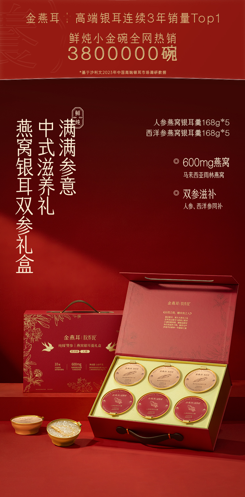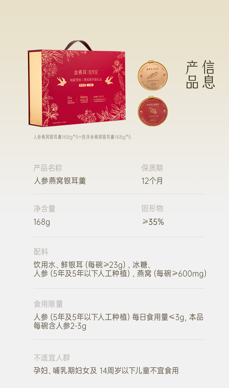 金燕耳双参礼盒 纯臻雙参燕窝银耳羹红色礼盒(人参燕窝羹*5碗+西洋参燕窝羹*5碗)3秒开盖即食 可直接热水温泡再开盖吃